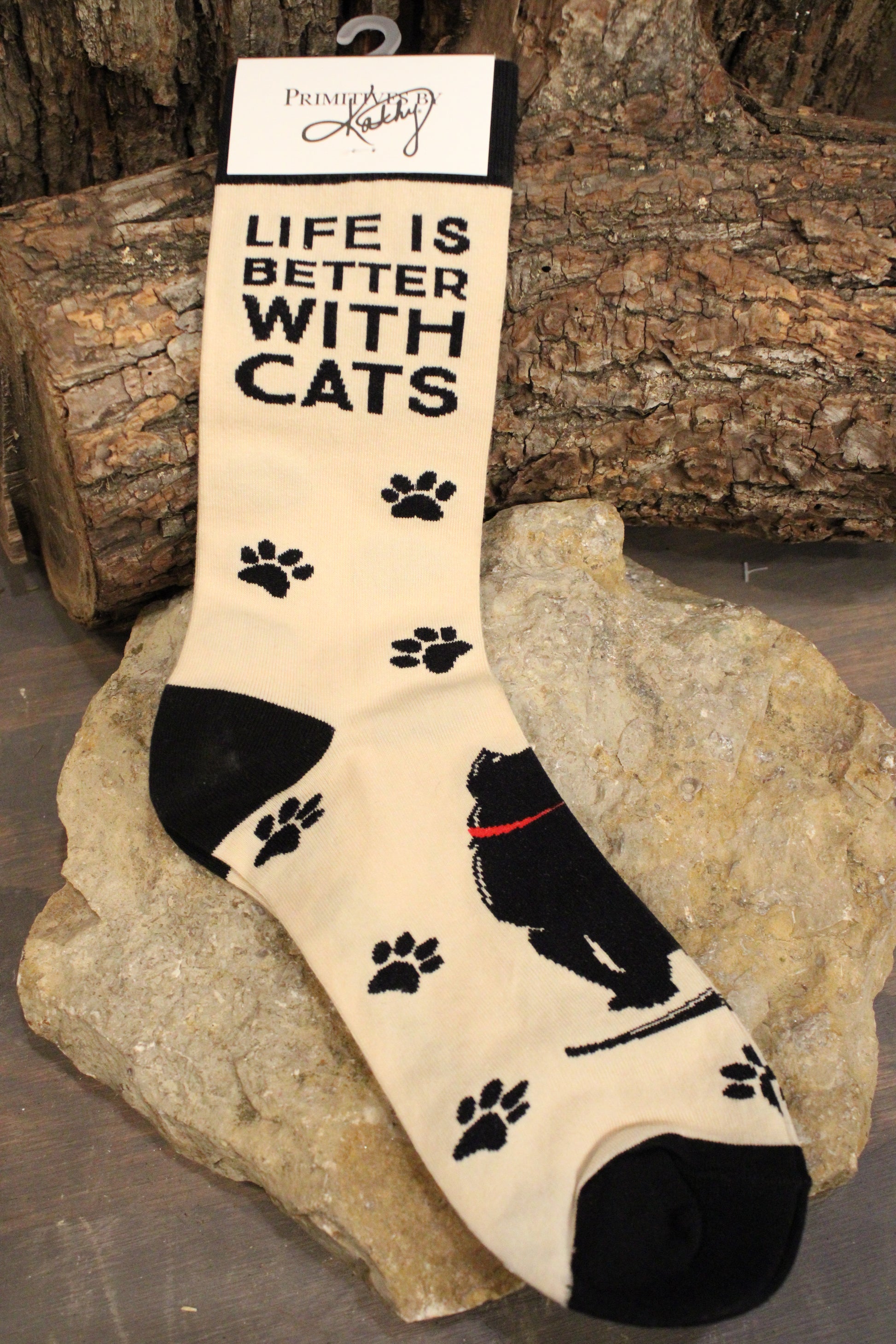 A fun pair of women’s cat socks that prove life really is better with cats.