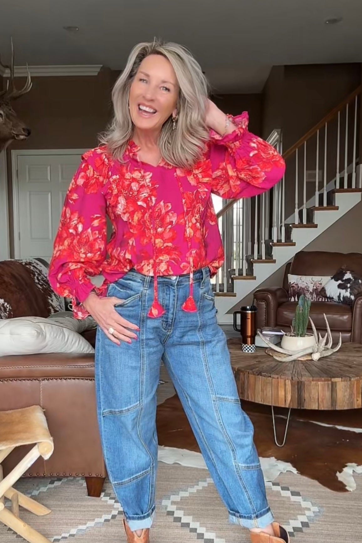 Meet the Magenta Lotus Blouse- This floral top brings color, movement, and personality together in one easy piece. Designed with a lightweight, flowy feel, it features a soft ruffled neckline, long sleeves with gentle volume, and a tassel-tie front that adds a playful touch. The vibrant floral print makes it a standout while still being easy to style.