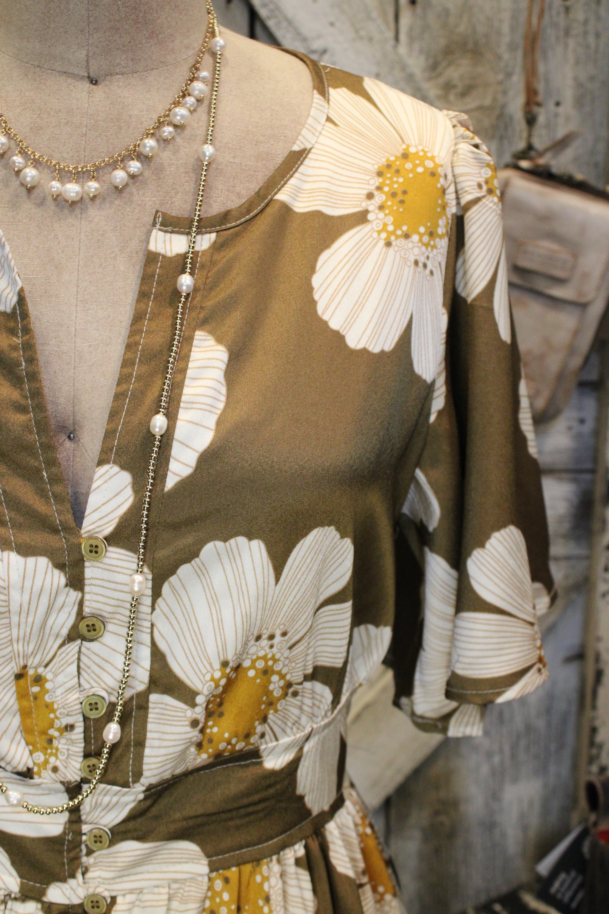 Introducing the Marigold Muse Maxi Dress- This dress is sunshine and simplicity all wrapped into one easy, twirl-worthy piece. With its oversized daisy print and warm earthy brown base, this dress feels like a stroll through a blooming summer meadow—even on the chilliest fall day.