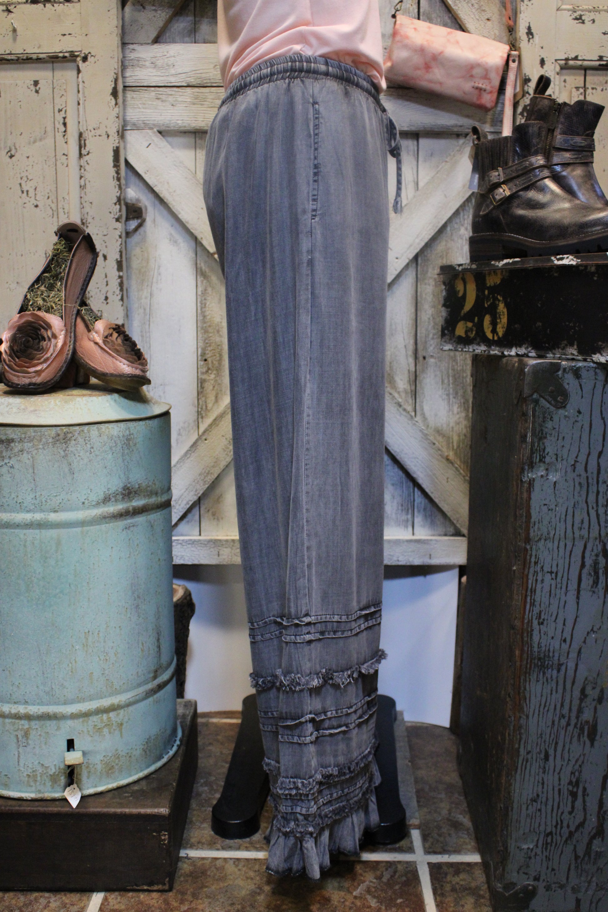 Introducing Midnight Breeze Pants- These flowy wide-leg pants are soft, lightweight, and full of personality. Featuring an elastic drawstring waistband, tiered ruffle details, and a relaxed fit, they bring that perfect mix of comfort and style.