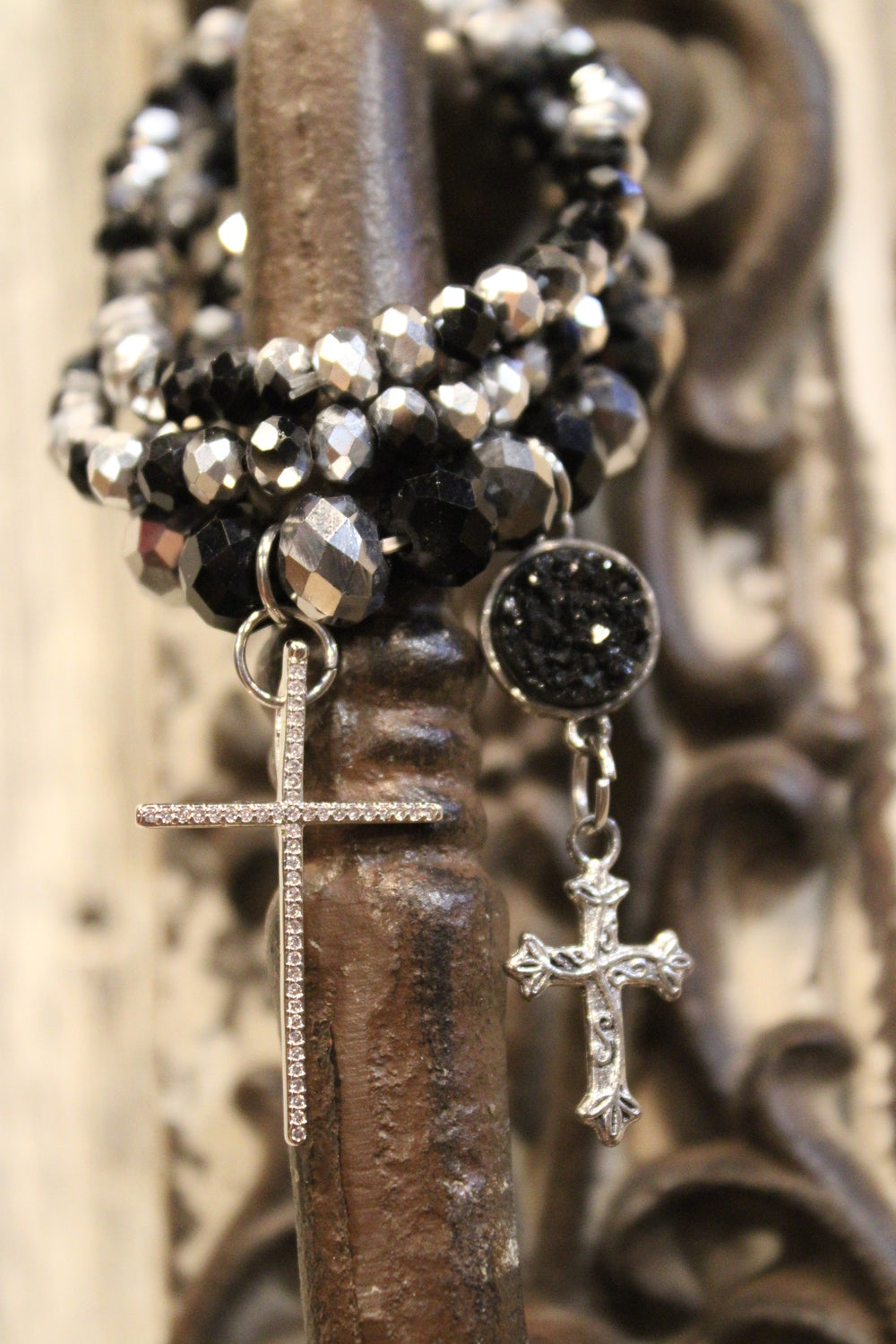Introducing our Midnight Cross Earrings, a striking and stylish accessory handcrafted right here in the USA. These earrings perfectly blend elegance with edge, making them the ideal addition to your jewelry collection. Whether you're getting ready for a night out or looking for a subtle statement piece for the holidays, these earrings are sure to turn heads. Elevate your look with our Midnight Cross Earrings today!