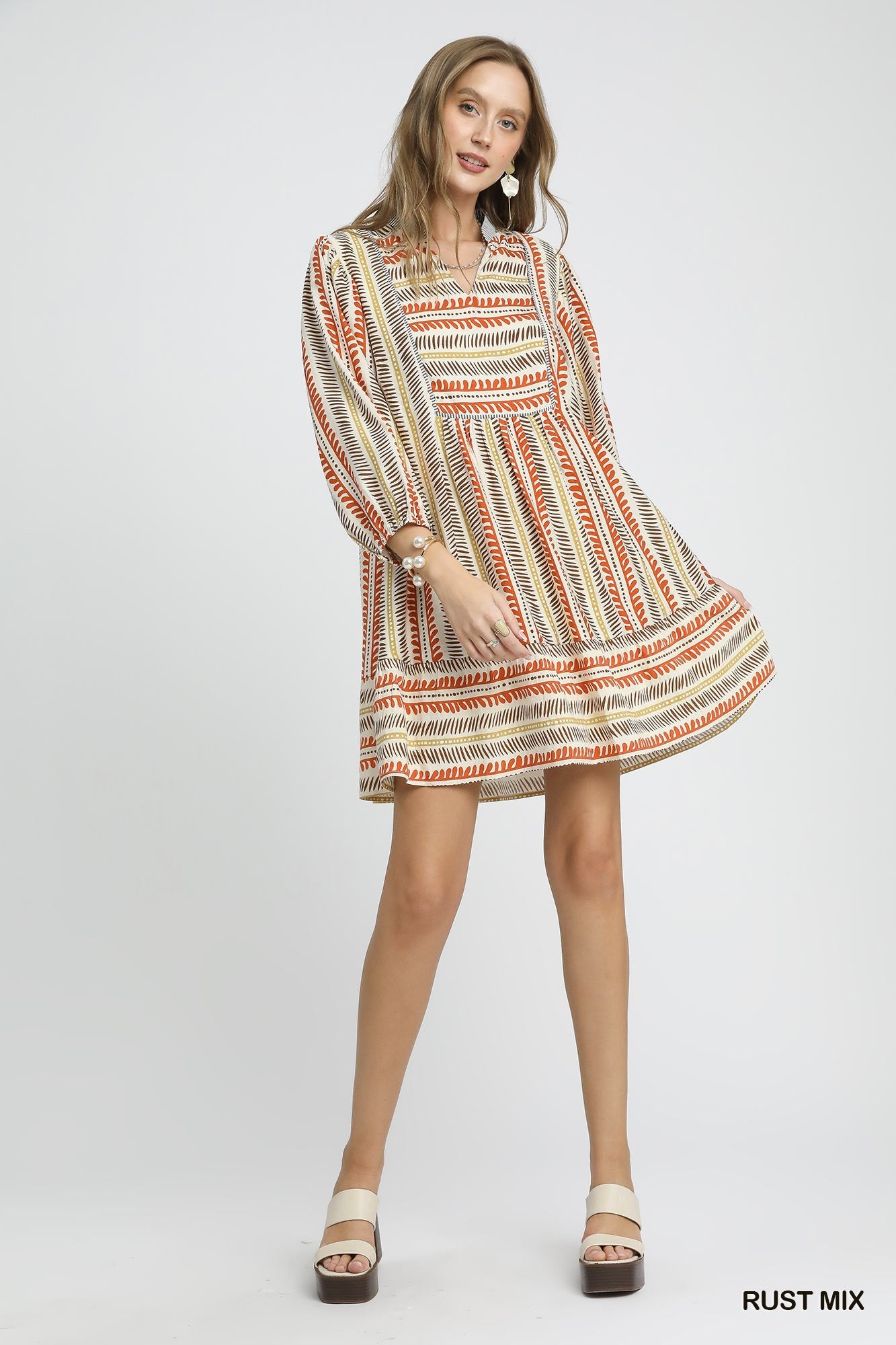 Introducing our Modern Aztec Dress - A little bold, a little boho, and full of charm — this aztec dress brings color and character to your everyday style. With an eye-catching print pattern in earthy tones, this easygoing dress features a relaxed fit and gentle gathers that add movement and comfort.