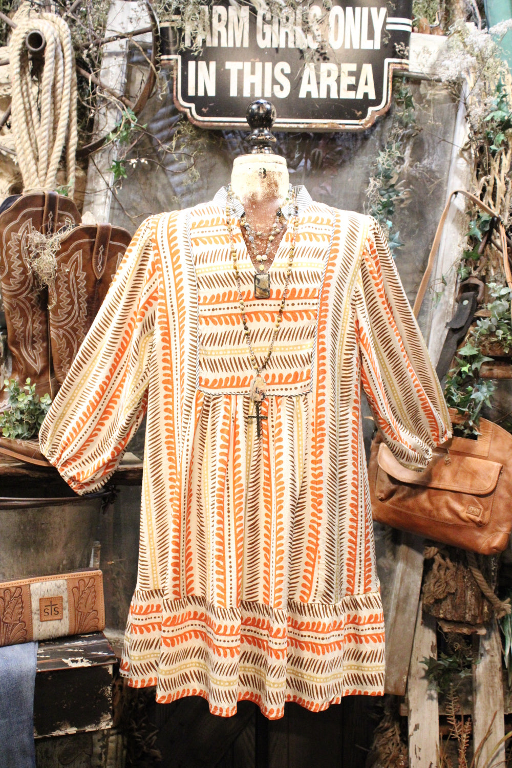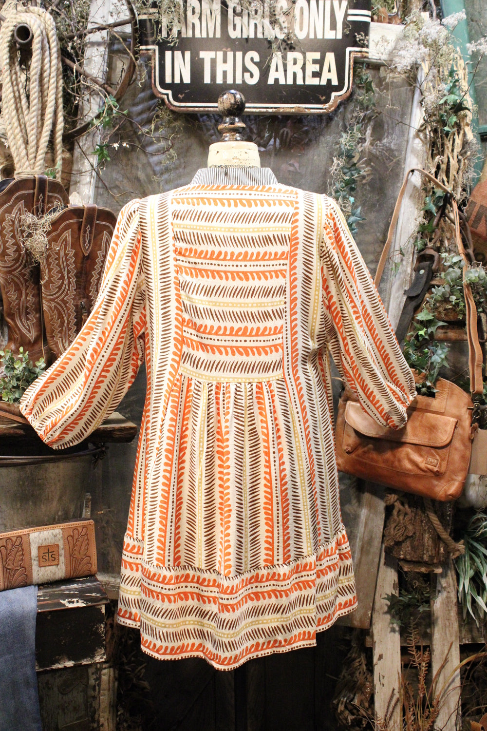 Its breezy shape and soft fabric make it a favorite for everything from market days to weekend road trips. Just add boots or sandals and some chunky jewelry to complete the look.