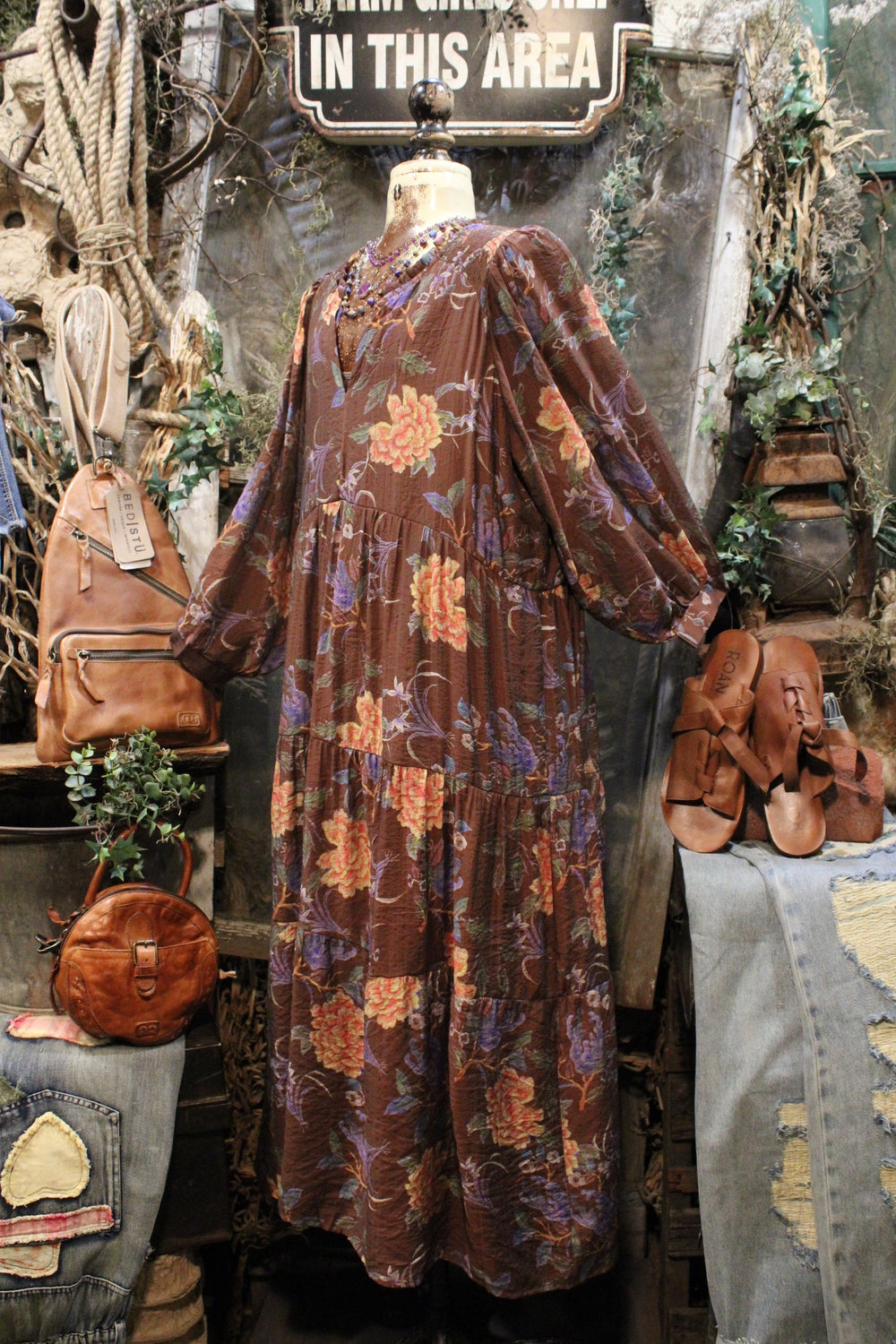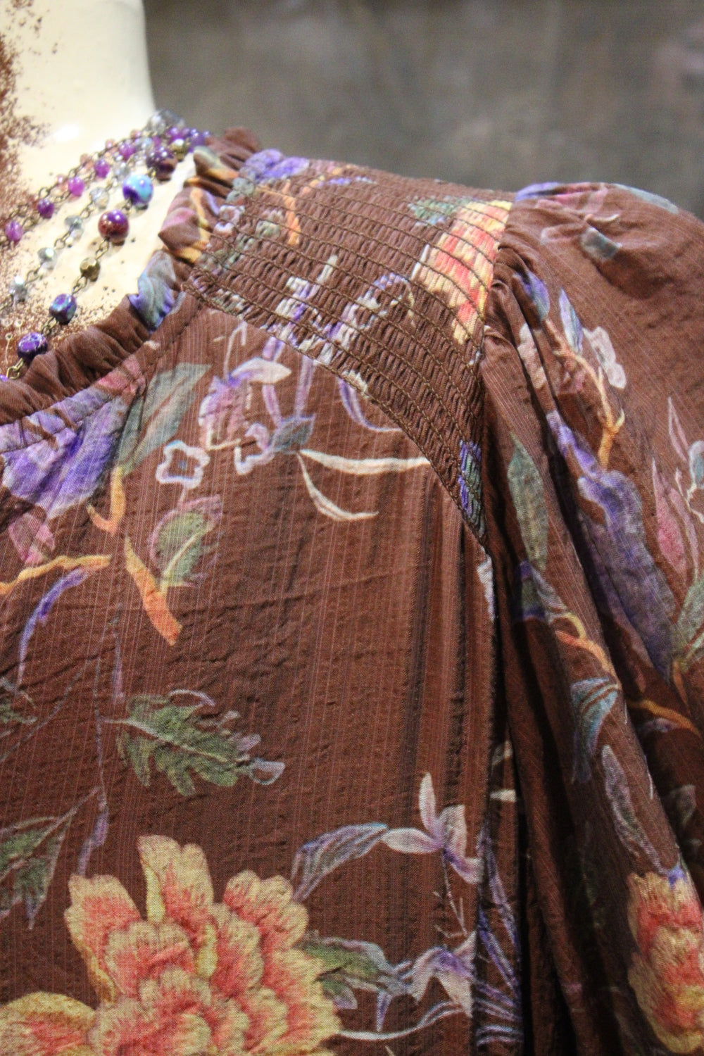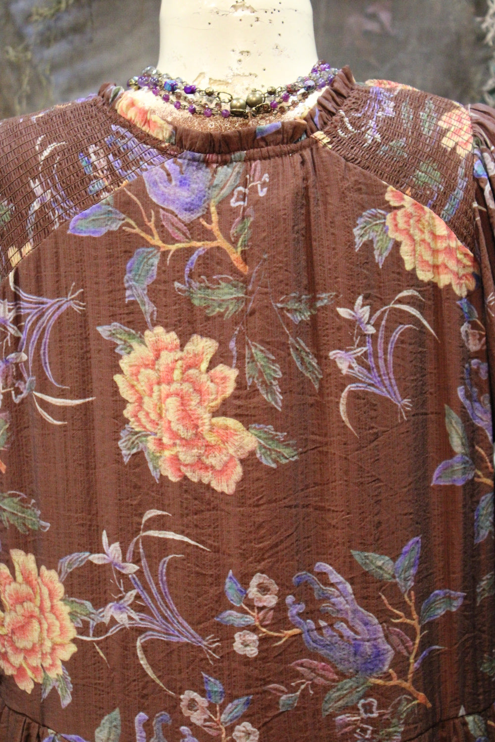 Moonlit Mum Dress- Full of charm and rich color, this dress is a must-have for days when you want comfort without sacrificing style. Set against a deep brown backdrop, the floral print bursts to life with shades of lavender, dusty rose, and golden marigold — perfect for seasonal transitions.