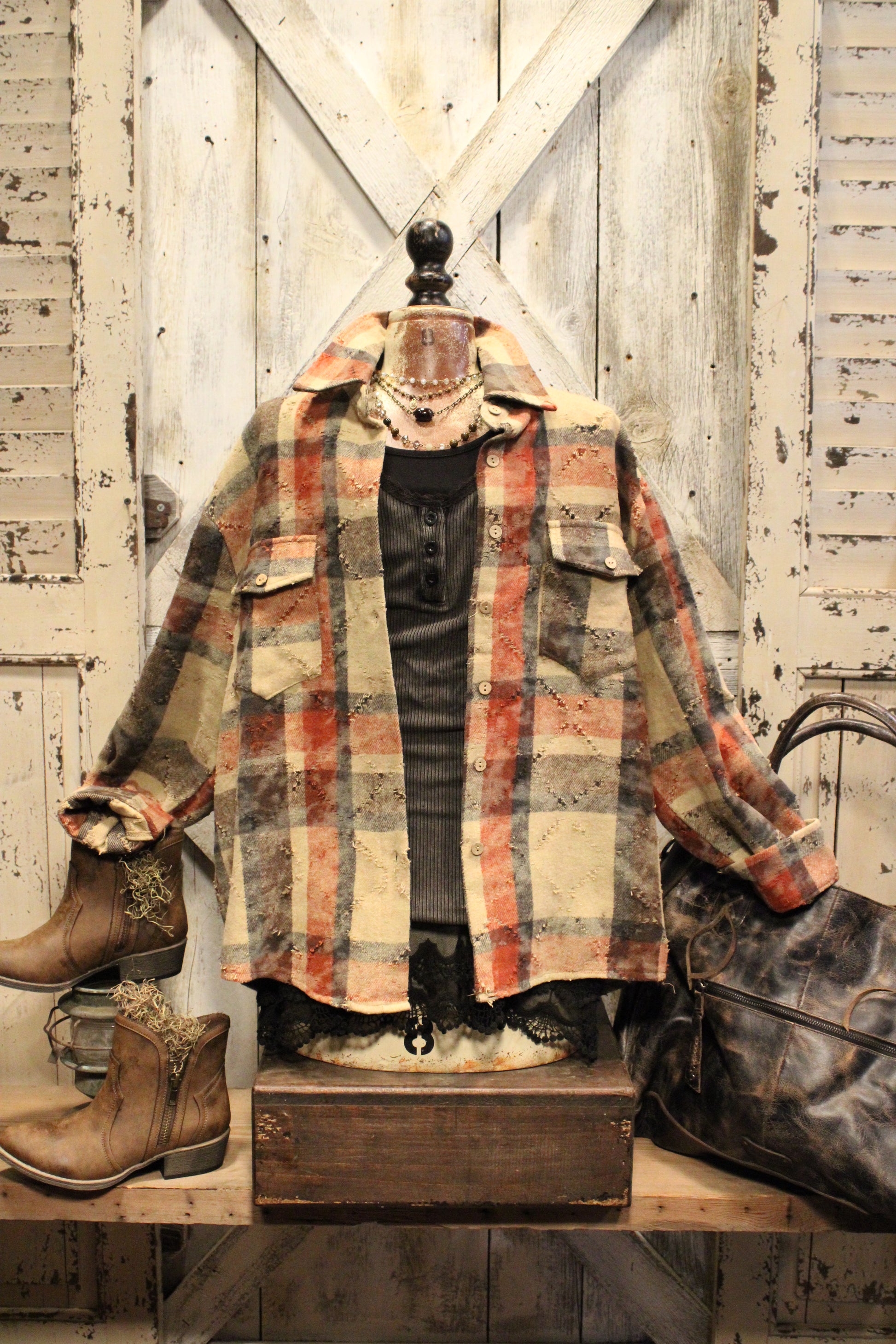 Introducing the Mountain Ridge Shacket – Give your wardrobe some rugged charm! This piece blends a warm palette of earthy tones, into a bold plaid pattern that feels straight off the homestead. Pair it with denim, corduroy, or cutoffs—it's the kind of top that transitions effortlessly from a day in town to a night by the fire.