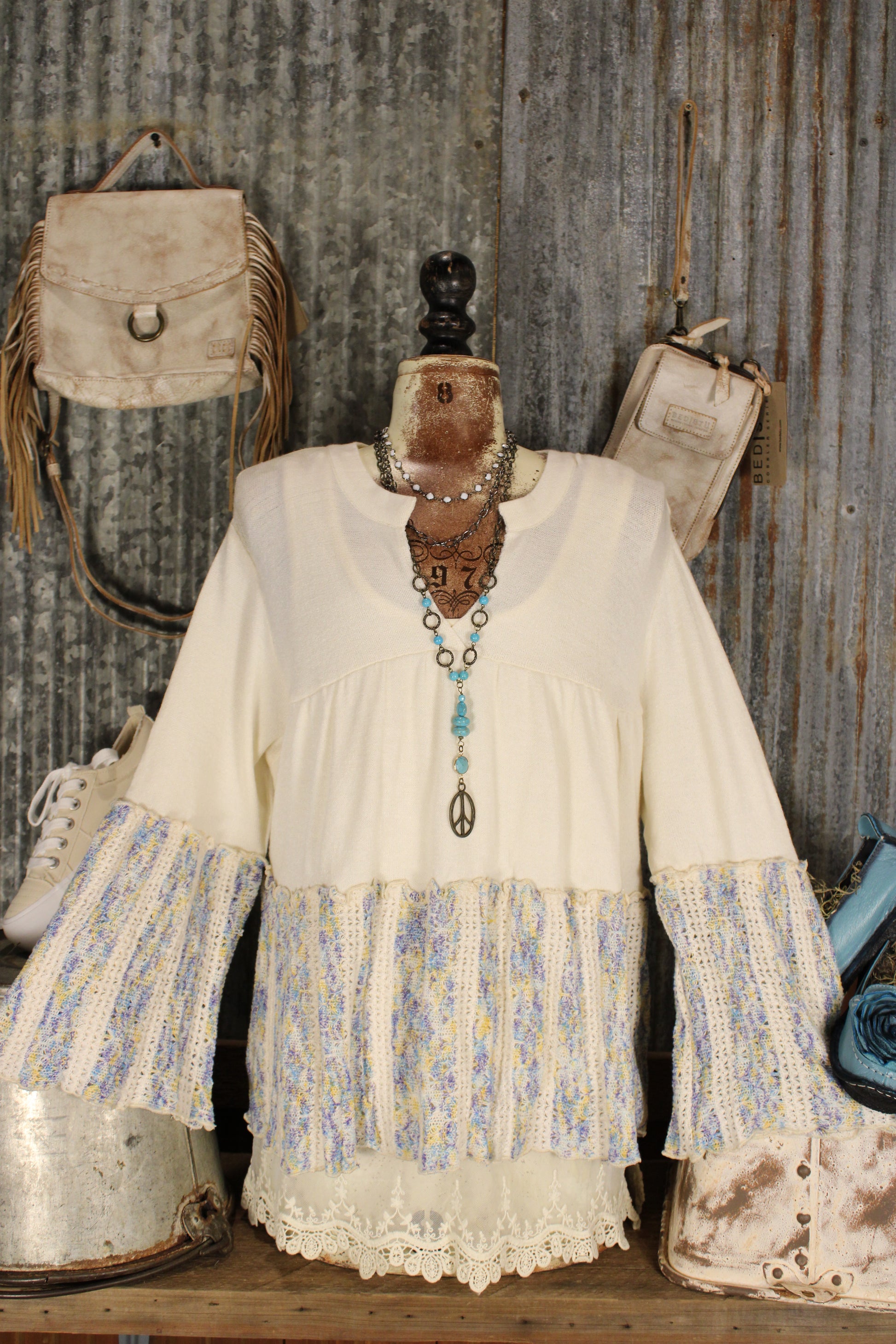Lightweight and flowy with beautiful movement, this boho bell sleeve top pairs effortlessly with denim, cutoffs, or your favorite wide-leg pants for an easy Farm Girl outfit with a touch of vintage soul.