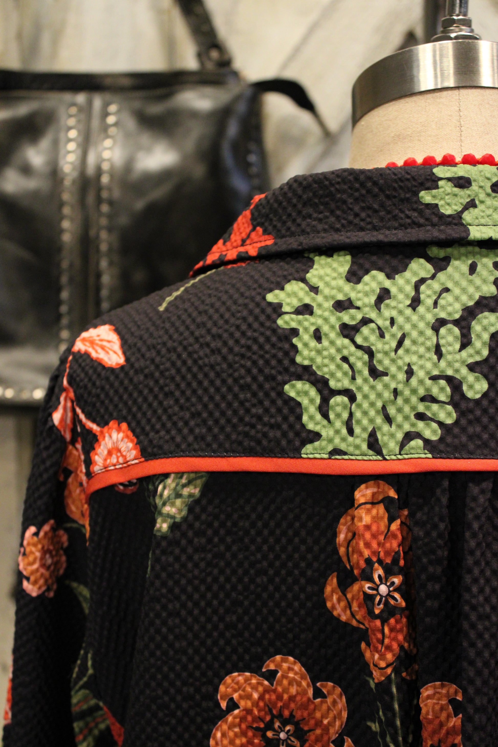 Introducing the Bloom Boldly Dress- Turn heads in this stunning floral embroidered dress that’s equal parts chic and effortless. Set against a deep black background, the vibrant embroidery in shades of red, green, and orange brings a pop of color that feels both festive and timeless. The relaxed, flowy silhouette drapes beautifully, while the long sleeves with gathered cuffs add just the right touch of feminine detail.