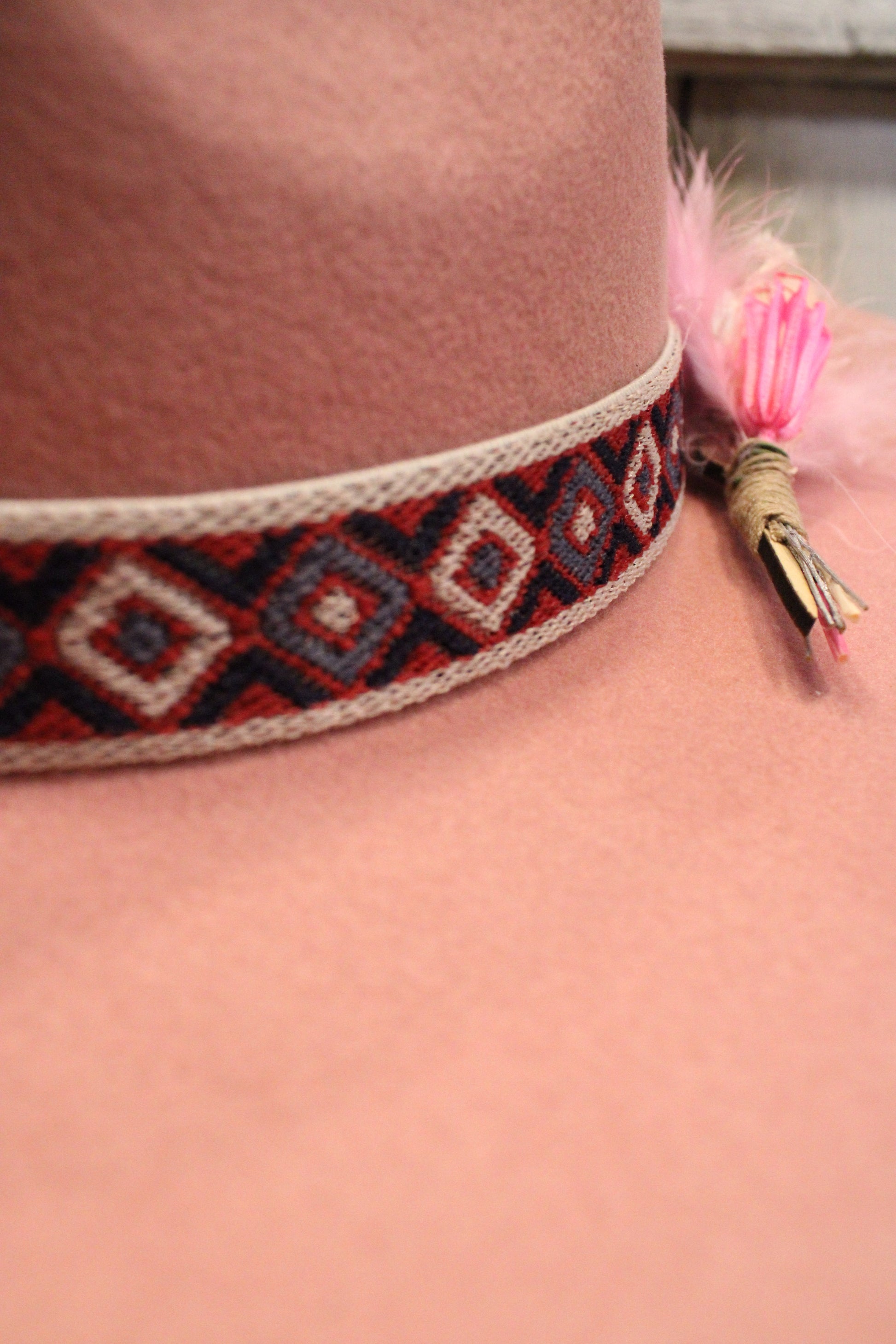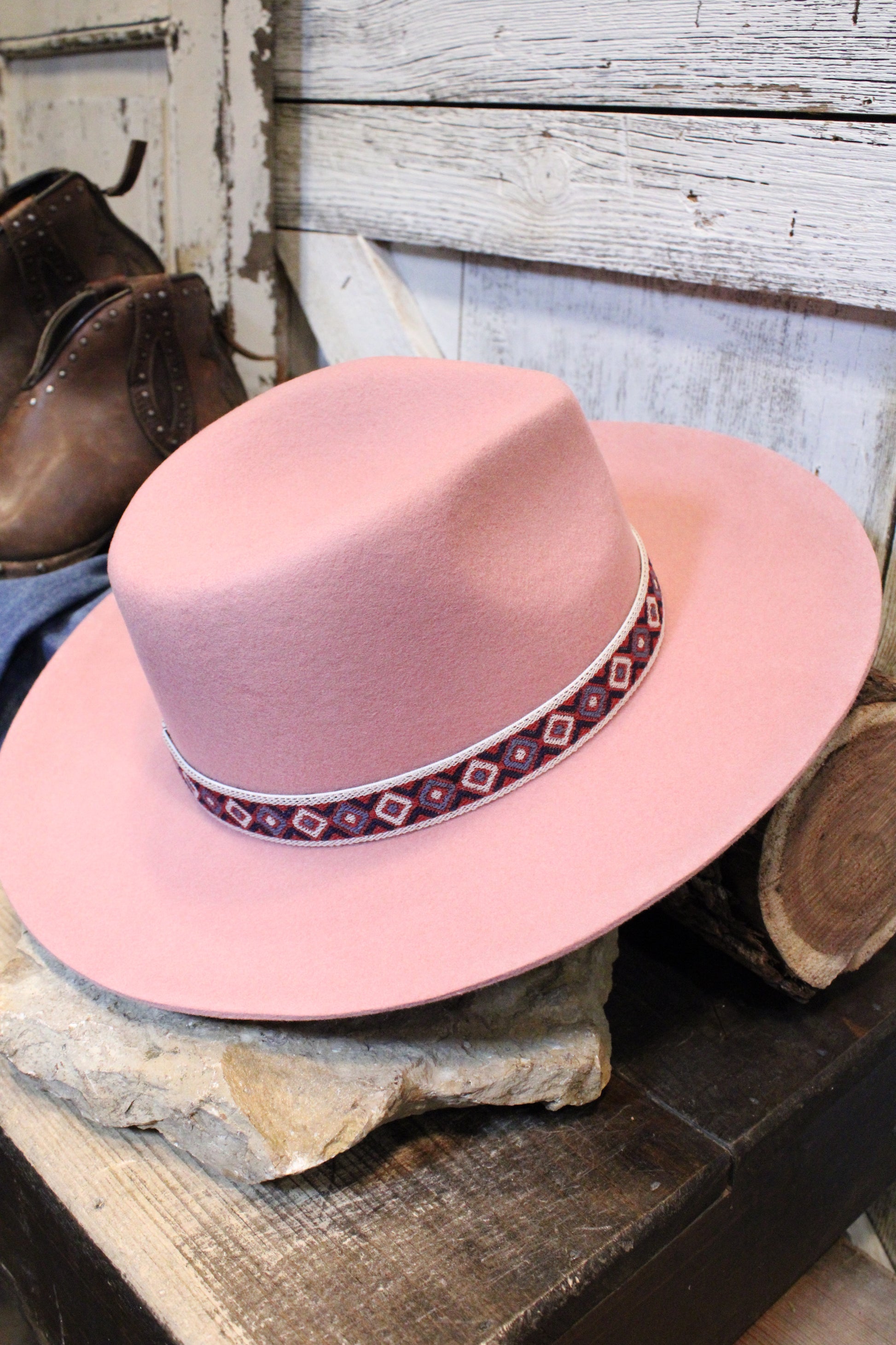 In the dreamiest dusty rose hue, it’s finished with a Southwestern-inspired woven band and a dainty feather and dried floral accent that make it truly one of a kind. From barn days to brunch dates, this hat adds instant farm-girly flair to any outfit!