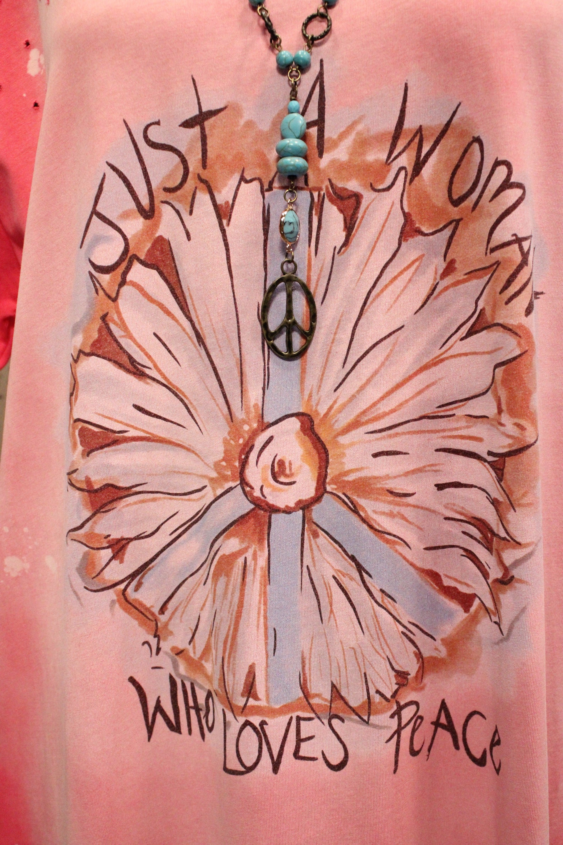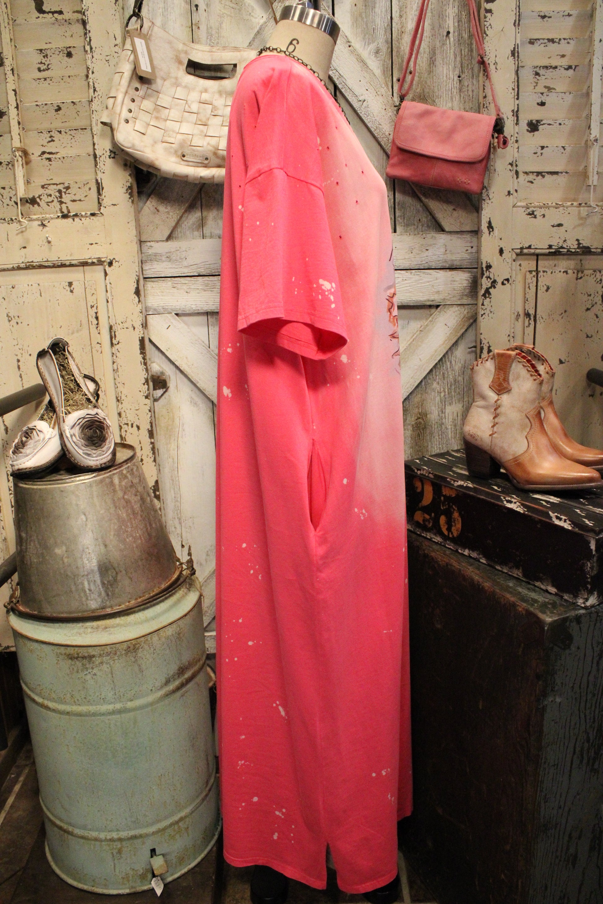 Introducing the Peace In Pink Dress- This eye-catching maxi dress blends comfort with meaningful style. Designed in a bold pink ombré wash, it features a relaxed, easy silhouette with a notched neckline and short sleeves. The front graphic adds a heartfelt touch, making it a statement piece you’ll reach for again and again. Side slits allow for easy movement, while the soft, lightweight fabric keeps it comfortable for all-day wear. Perfect for casual days, layering with a denim jacket, or styling with sneakers or sandals for an effortless look.