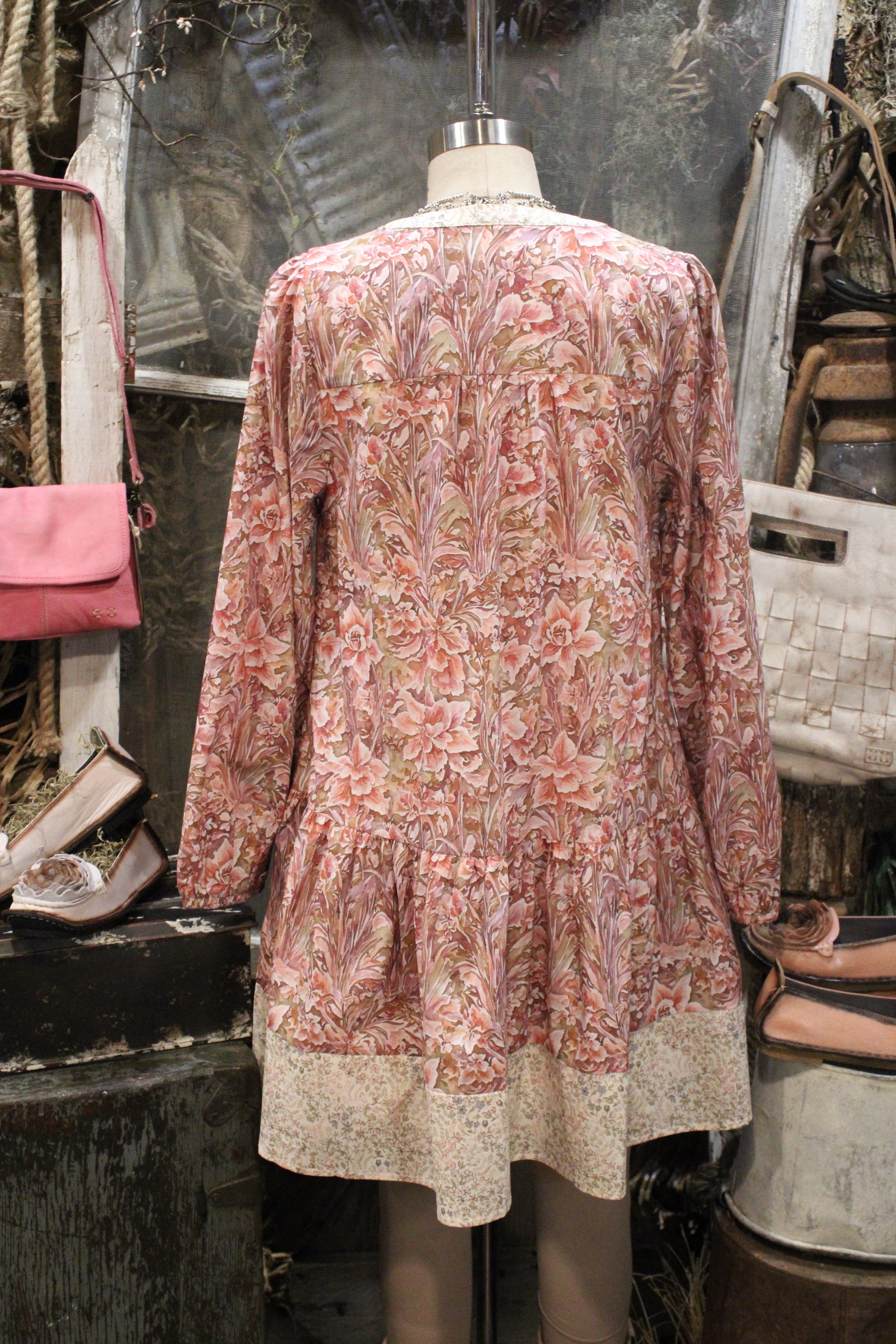 Introducing the Perfect Peonies Dress- Romantic and timeless, this vintage-inspired floral dress is made to turn heads. Featuring long puff sleeves, a flattering V-neckline, and a full skirt, it’s detailed with contrasting floral trim for that perfect boho touch. The waist ties into a statement bow, giving you a feminine silhouette that’s both playful and elegant.