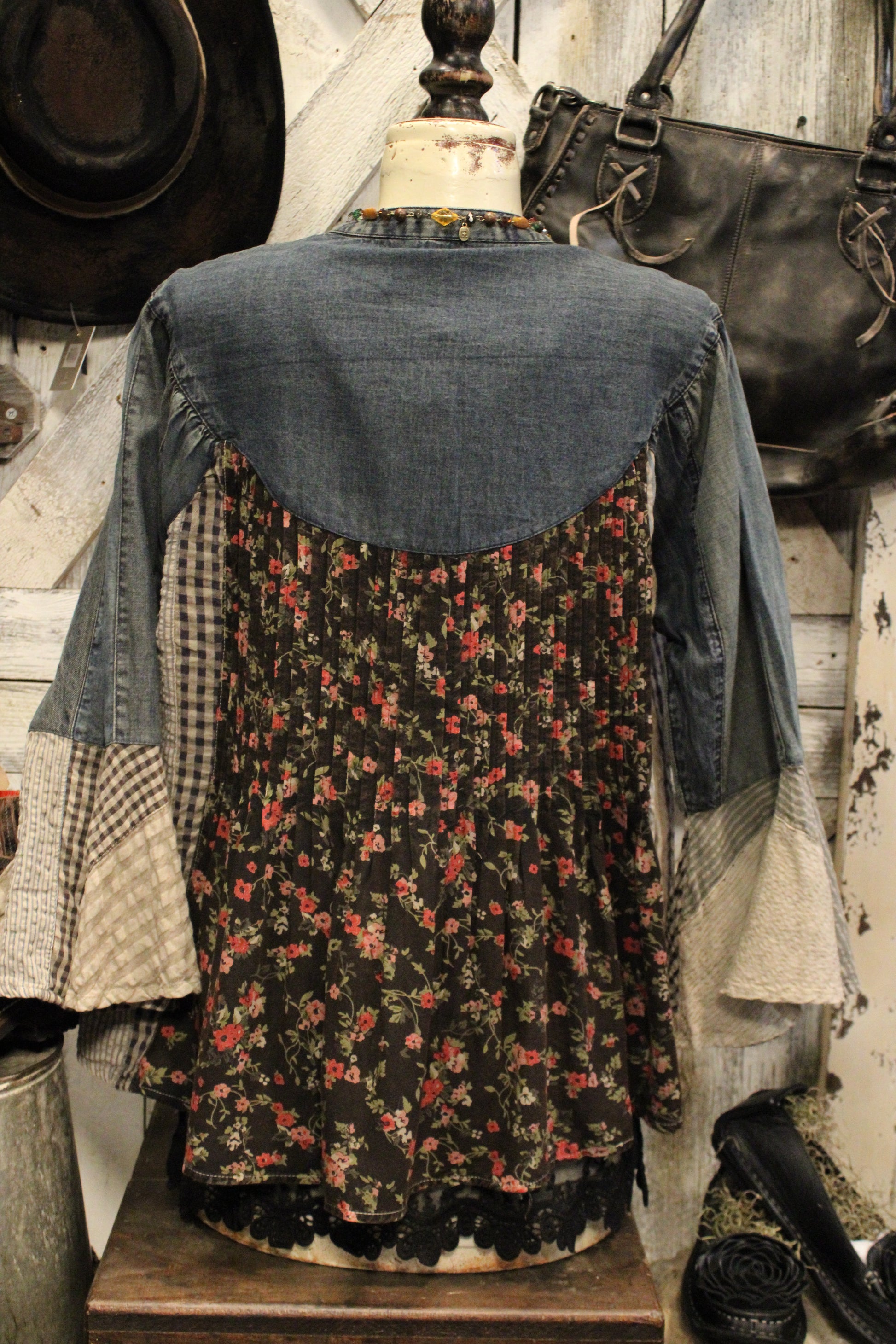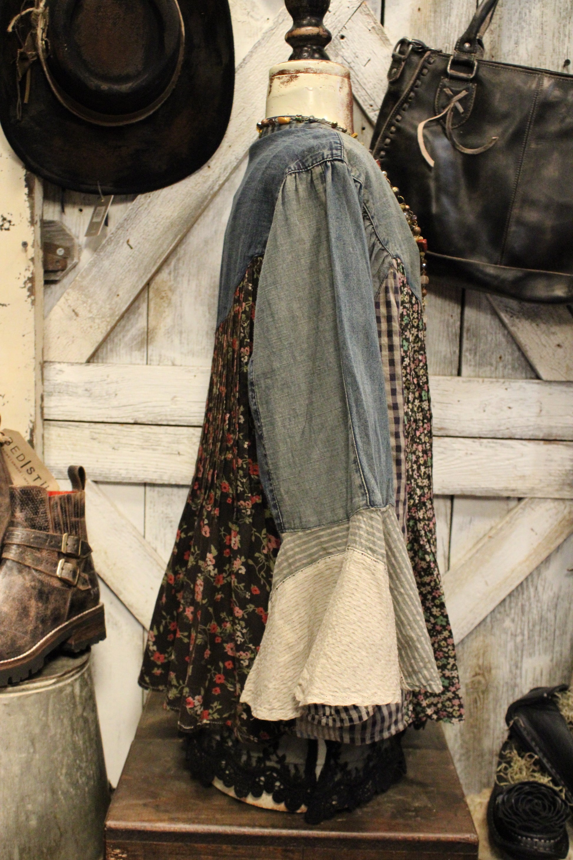 Introducing the Pieced Together Button Down Top- This boho-inspired patchwork top is full of texture, movement, and effortless charm. Featuring a soft denim yoke with a button-front detail, it flows into mixed floral and patterned panels that give the piece a truly artful look. The pleated body creates a relaxed, flattering drape, while the wide bell sleeves add a touch of romance and vintage flair.