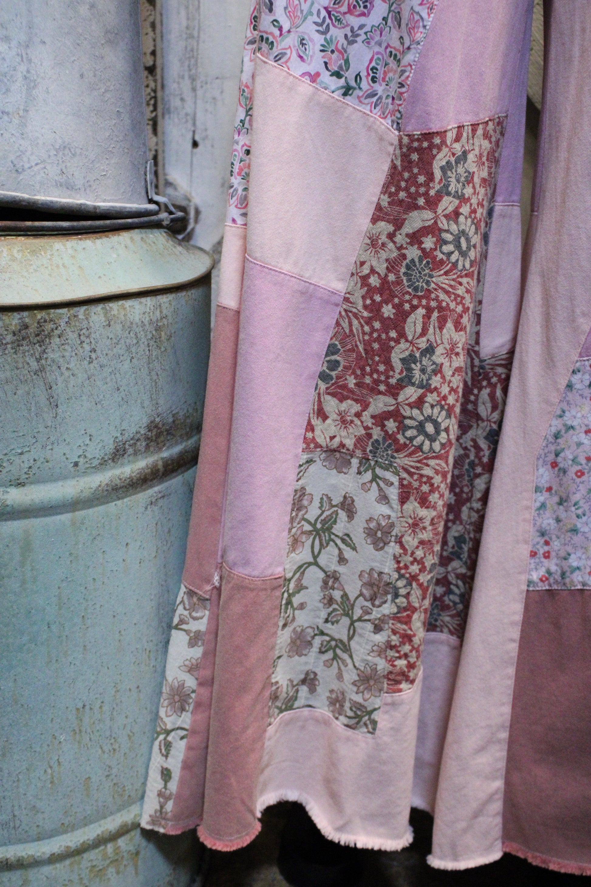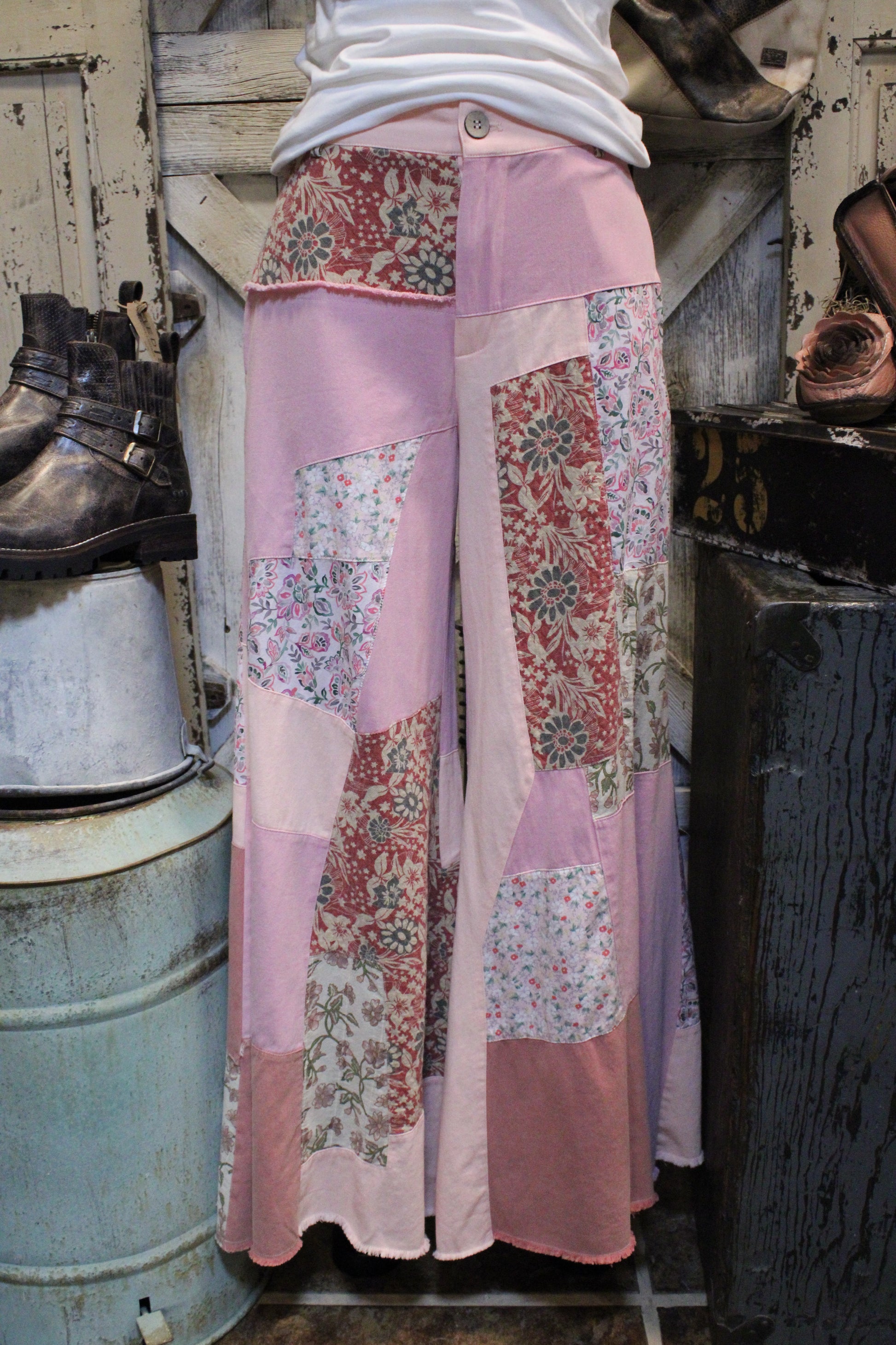 Pink Sunset Canyon Pants- Elevate your everyday with these patchwork palazzo pants, a timeless blend of comfort, craftsmanship, and feminine charm. Designed with a high-rise waist and relaxed wide-leg cut, this piece brings effortless movement and style to your wardrobe. The subtle patchwork detailing adds just the right touch of vintage-inspired texture, making each pair truly one of a kind.