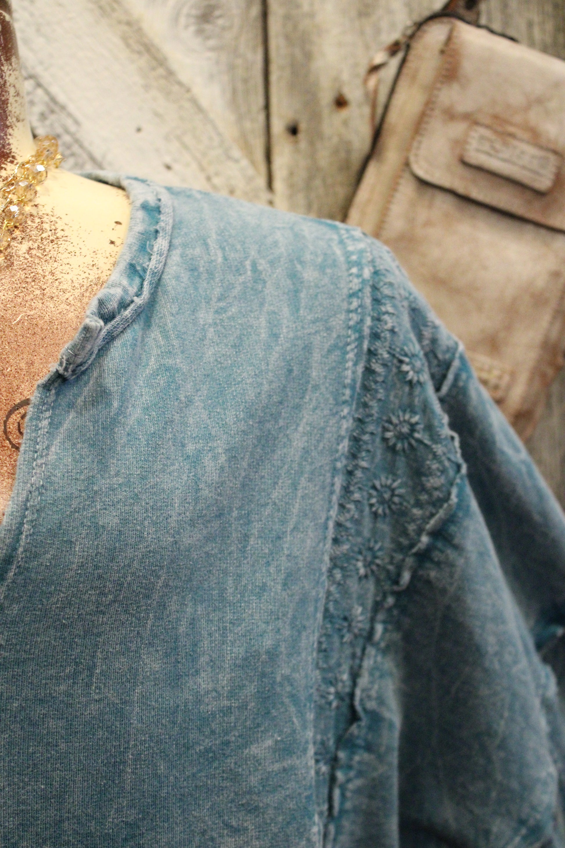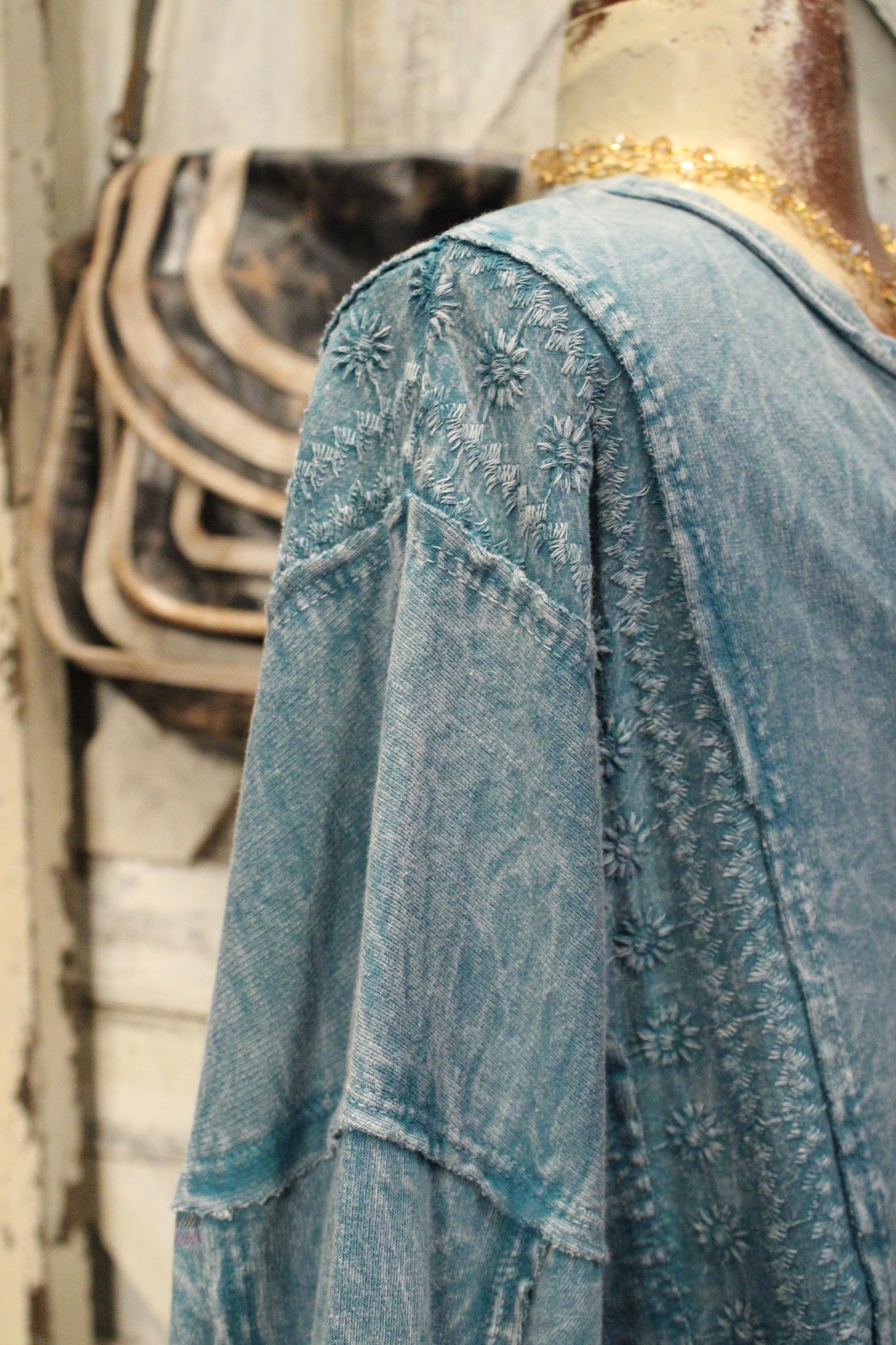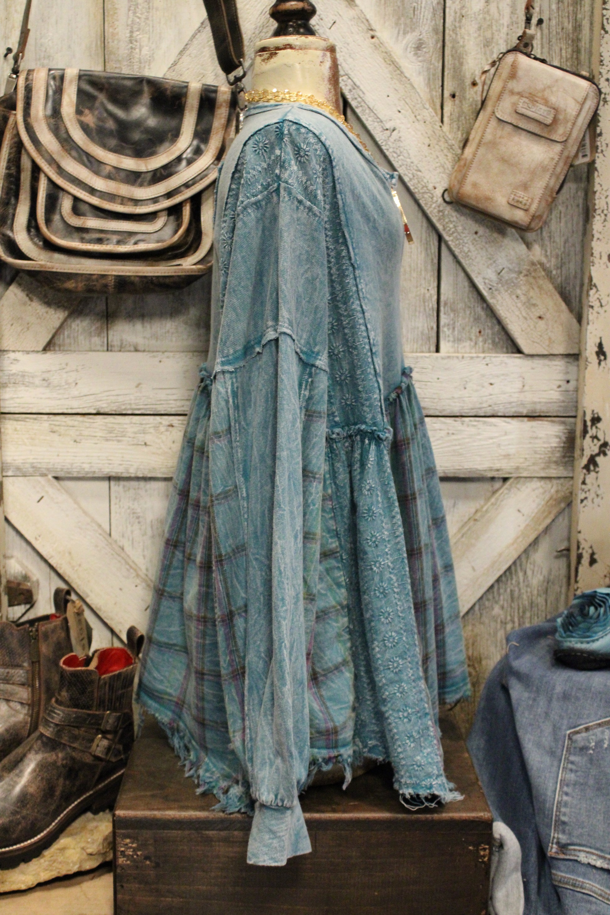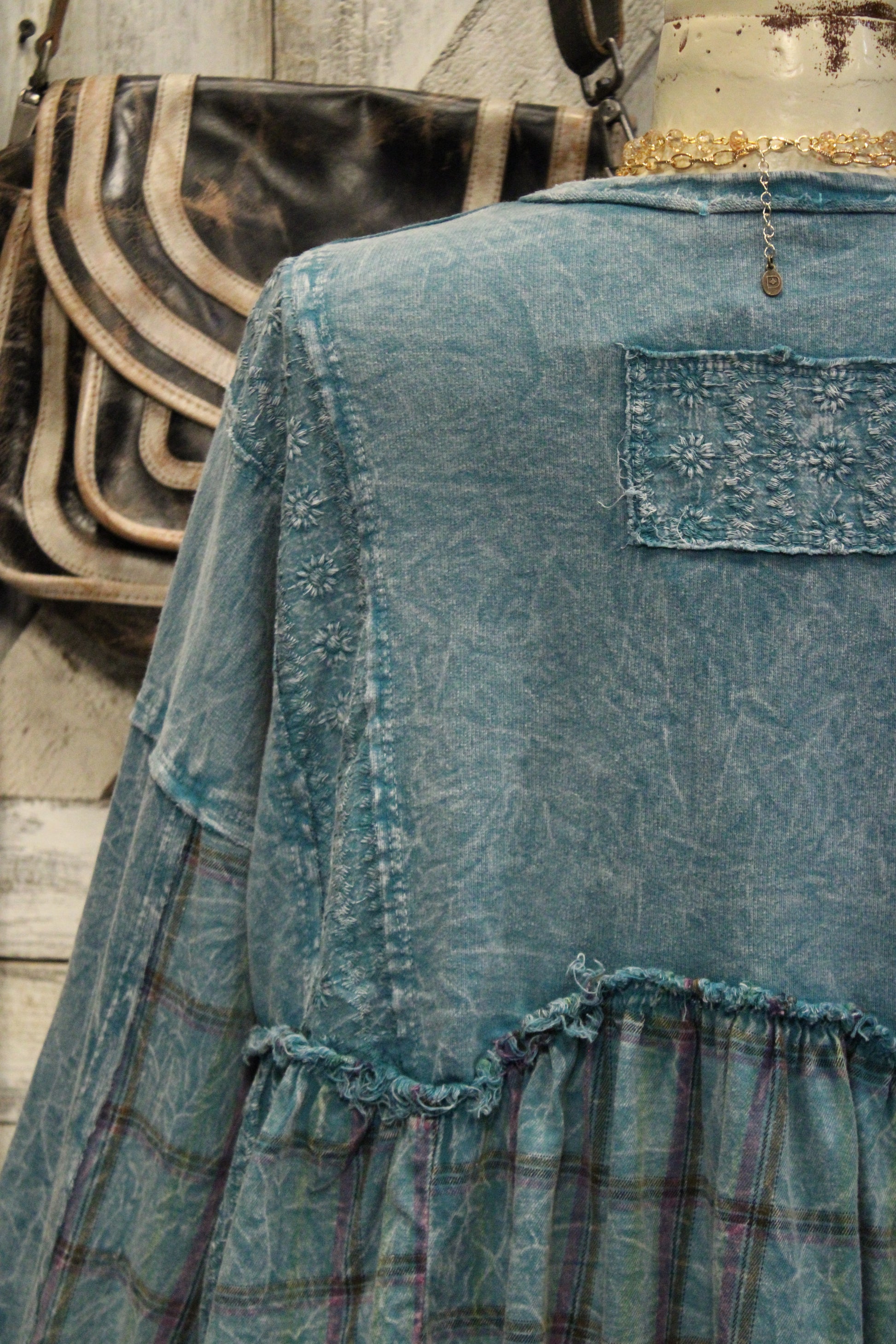 Introducing the Plaid Petal Babydoll Top- Flowy, artsy, and full of charm — this teal babydoll top is the perfect blend of denim-inspired texture and soft plaid sweetness. The mineral-washed fabric gives it a lived-in, vintage vibe, while the plaid inset adds a pop of pattern that feels cozy and playful all at once.