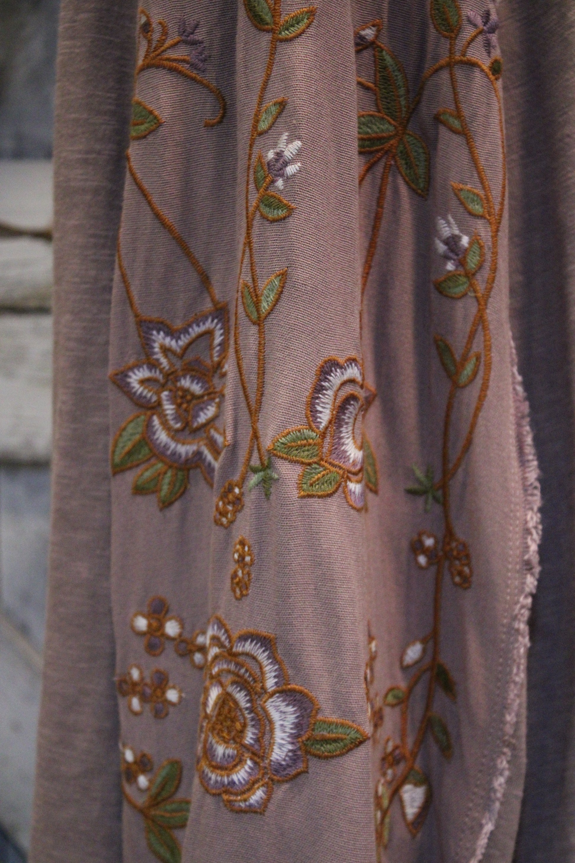 Featuring delicate floral embroidery across the chest and sleeves, this flowy mauve beauty blends boho grace with a touch of farmhouse charm. The tiered design and relaxed silhouette make it perfect for layering over lace camis or pairing with your favorite jeans and boots.
