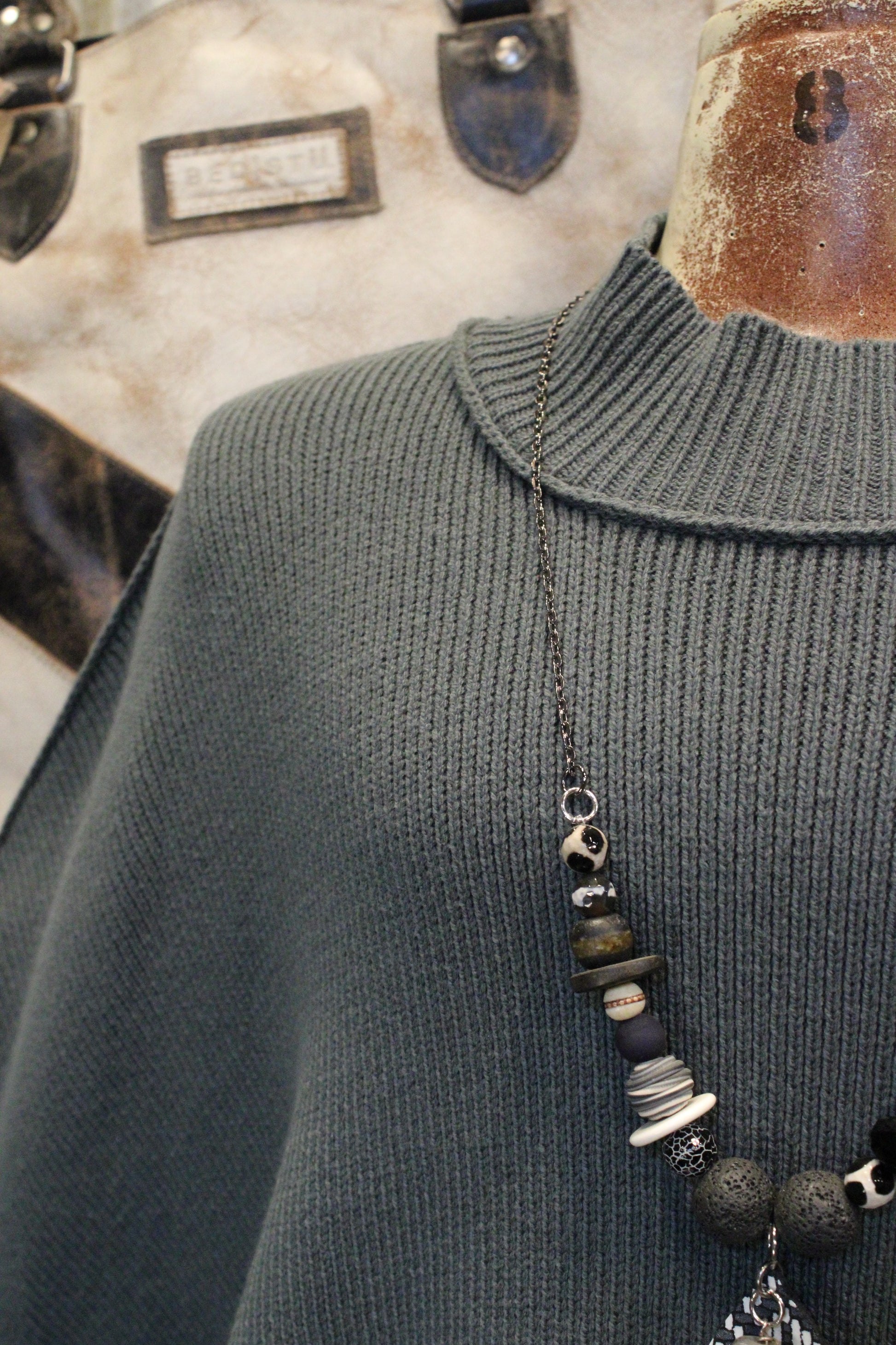 With its soft ribbed texture and flowy poncho-style fit, it drapes beautifully for a relaxed, flattering look. The high neckline and roomy sleeves make it perfect for layering over lace trims, collared tops, or your favorite long sleeve. Whether you’re headed to the barn, the market, or brunch in town, this piece blends comfort with timeless style.