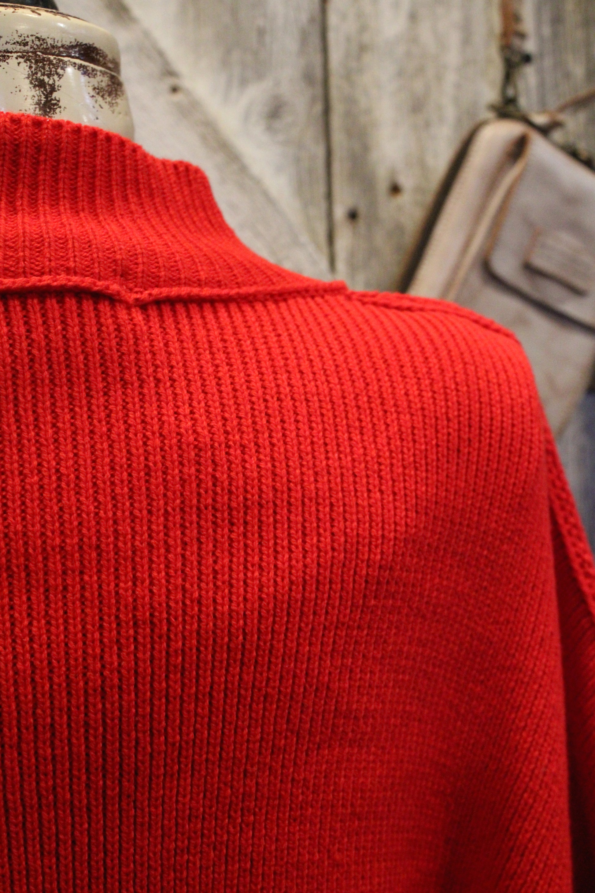 Introducing our Pop Of Red Sweater- the perfect pop of color for cool-weather days! This vibrant red knit brings warmth and confidence to your wardrobe while keeping things comfy and relaxed. The flowy, oversized silhouette drapes beautifully, giving you that effortless, throw-on-and-go charm every Farm Girl loves.