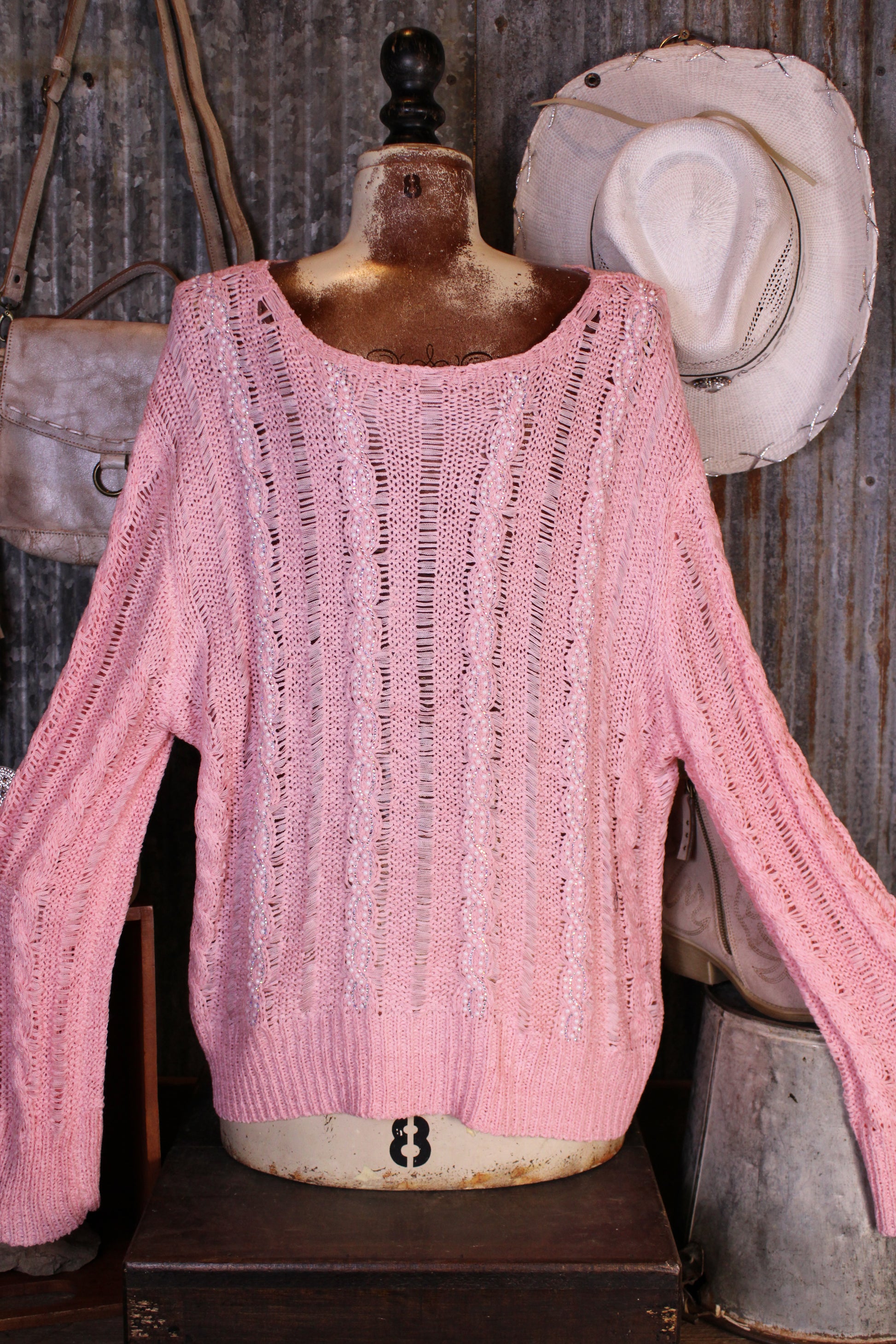 Introducing the Pretty in Pearls Pink Sweater from POL Clothing, This blush knit sweater is the perfect mix of sweet and standout. Designed with an airy, crochet-style knit, it features delicate pearl and subtle shimmer details that catch the light just right. The soft pink hue adds that feminine touch while still feeling easy and wearable.