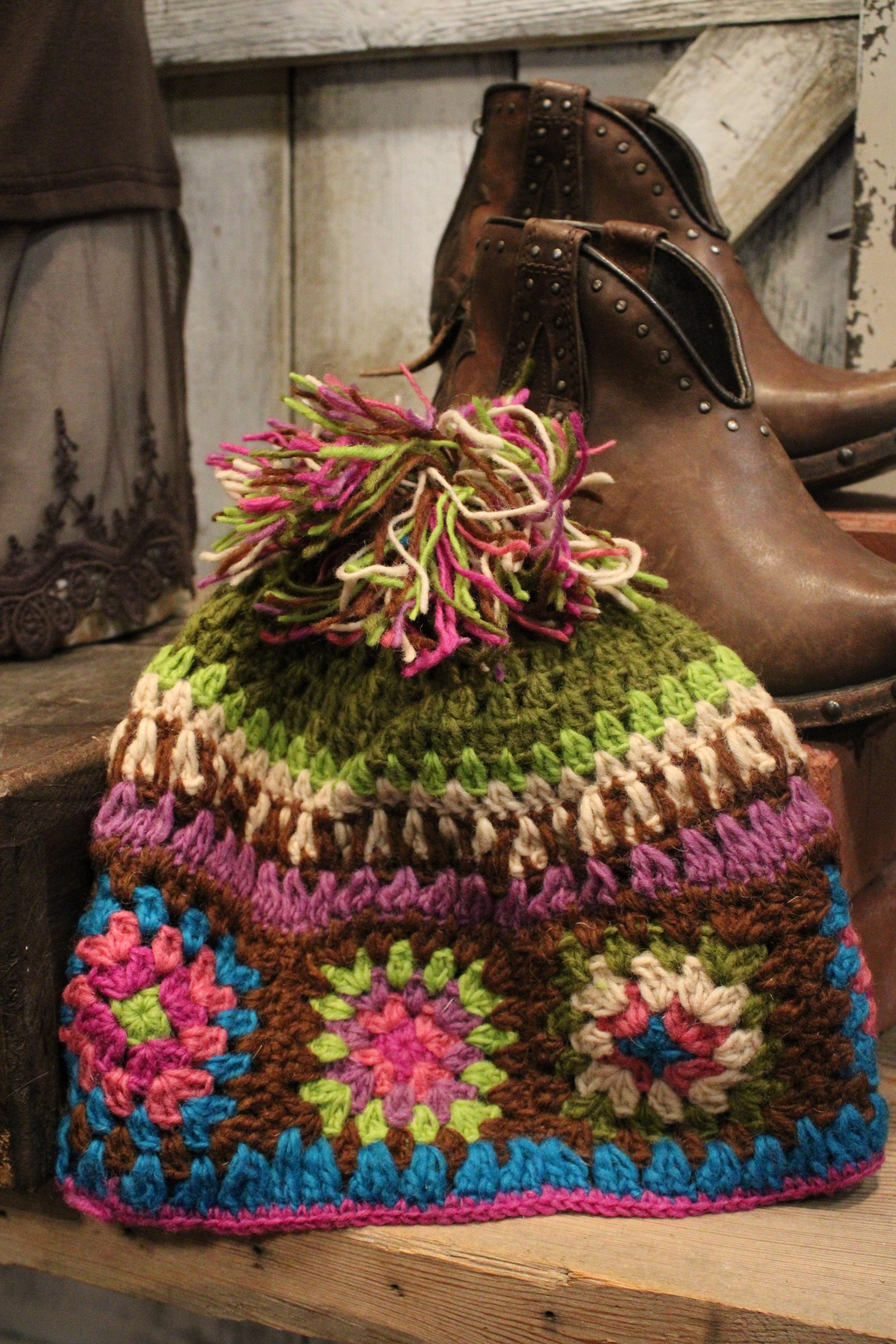 Introducing the trendy Purple Pizazz Beanie, This hat is pure cozy fun with a touch of boho flair! Crocheted in a patchwork granny-square style, it mixes vibrant pops of pink, teal, and purple with earthy greens and browns for that perfect farmhouse-meets-festival vibe. Topped off with a playful pom-pom, it’s a statement piece that keeps you warm while showing off your colorful personality. Whether you’re headed to the pumpkin patch, strolling the farmer’s market, or just need a cheerful layer for chilly days, this hat is the cutest way to stay cozy.