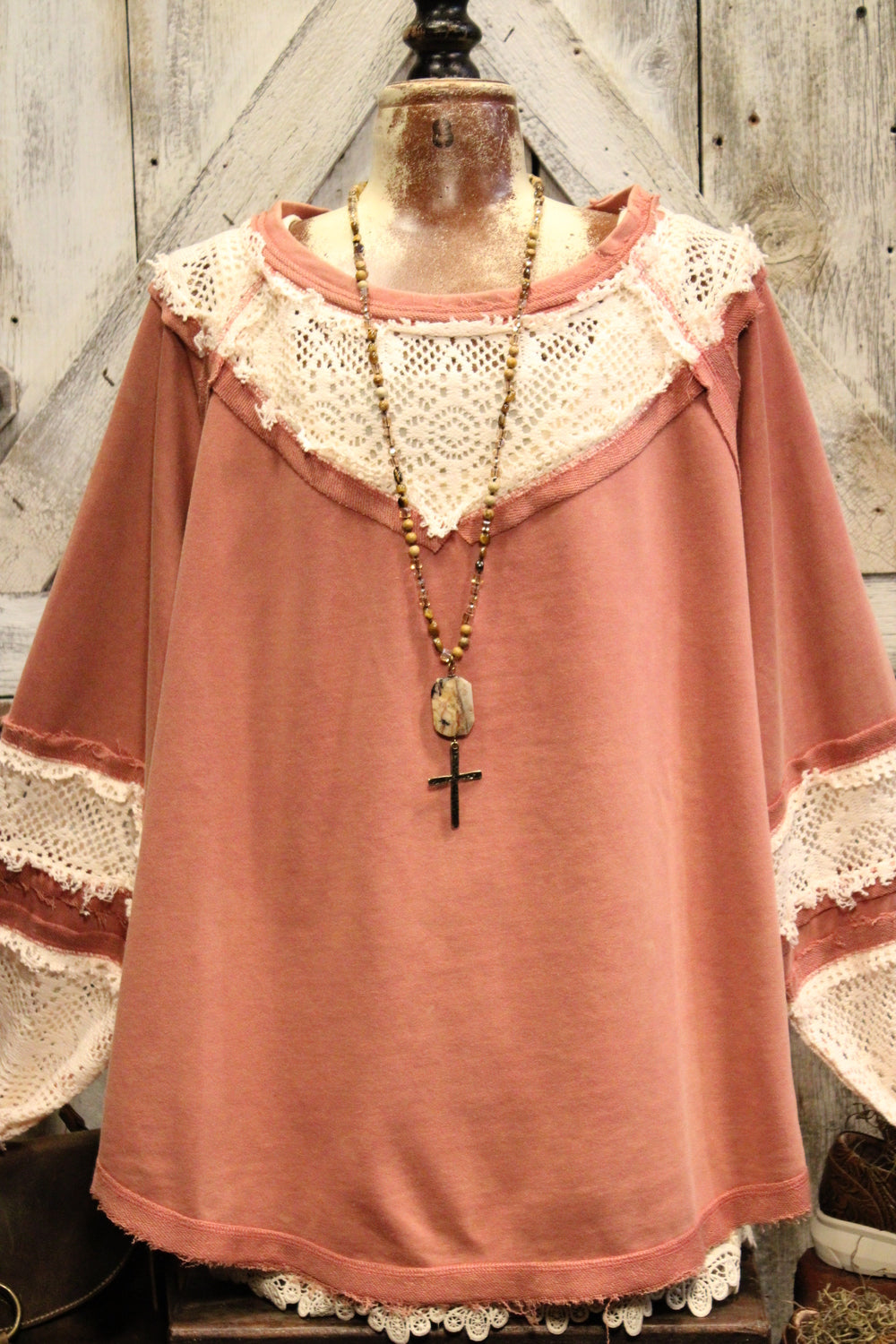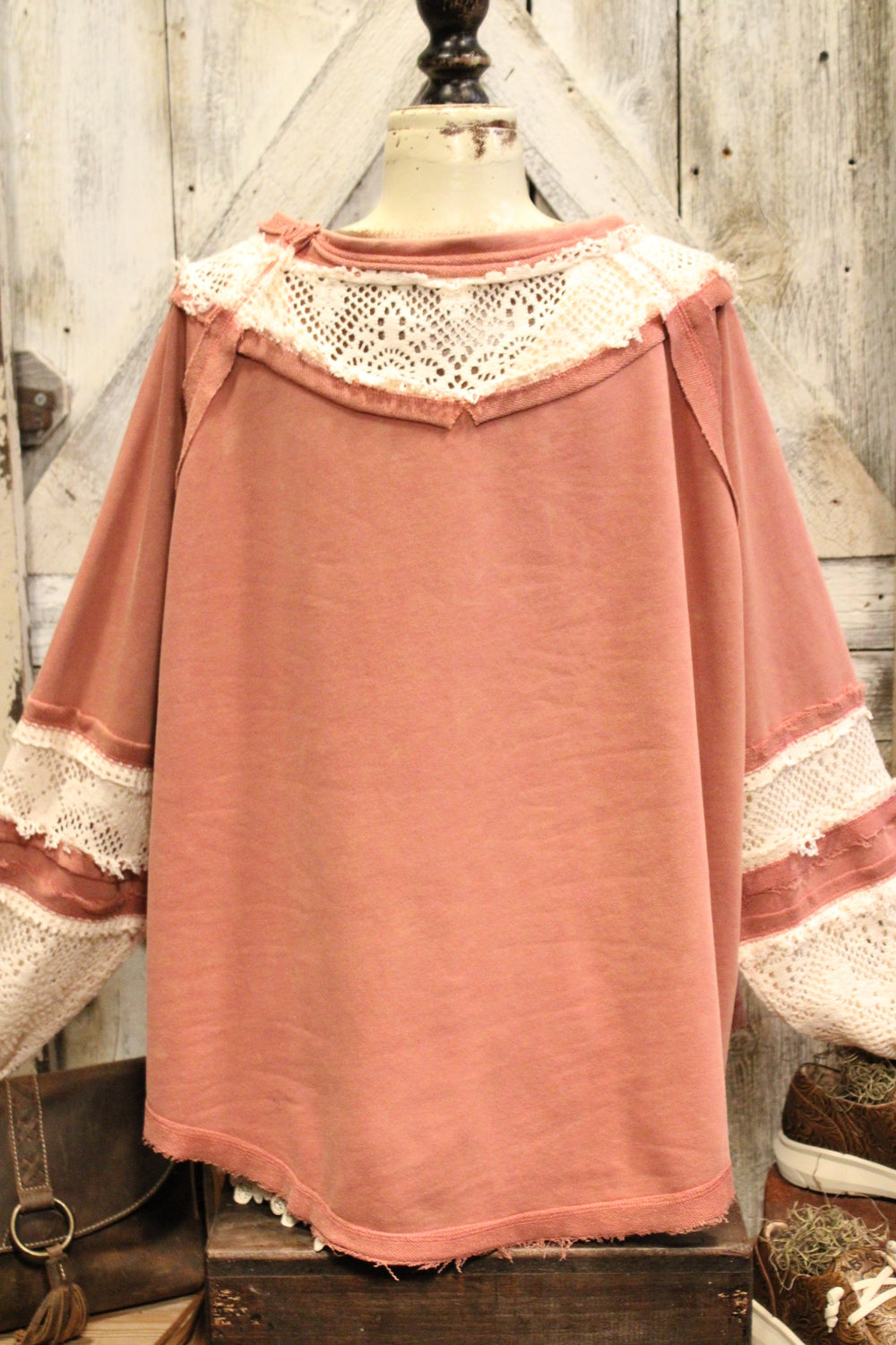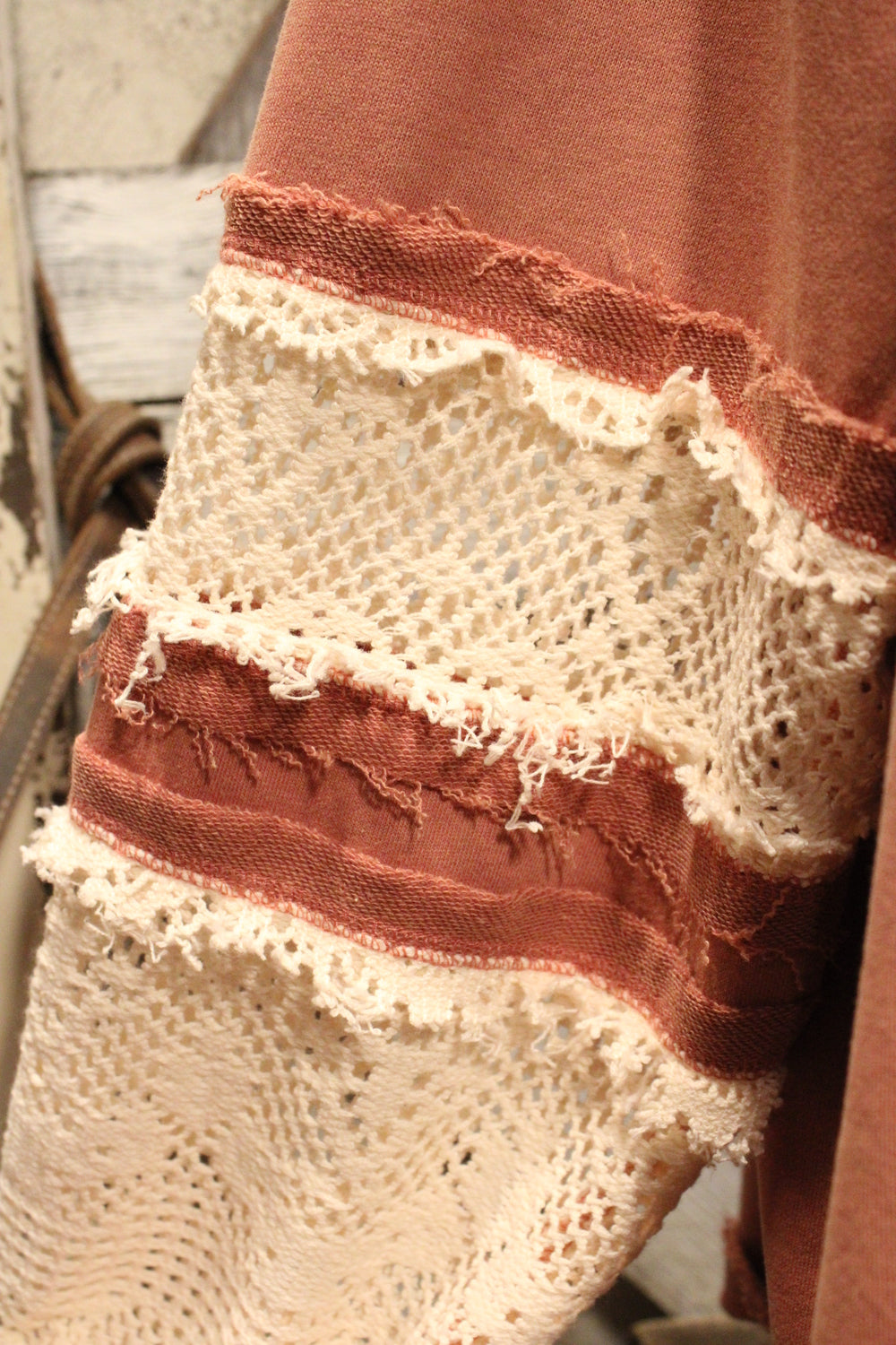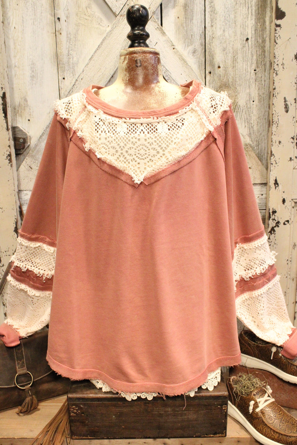 Refined Redneck Sweatshirt- Cozy meets feminine! This charming pullover features a soft hued fabric paired with delicate crochet lace at the neckline and sleeves for a sweet, romantic touch. The relaxed cut makes it an easy favorite for layering, while the vintage-inspired details add a unique flair that sets it apart from your everyday sweatshirt.