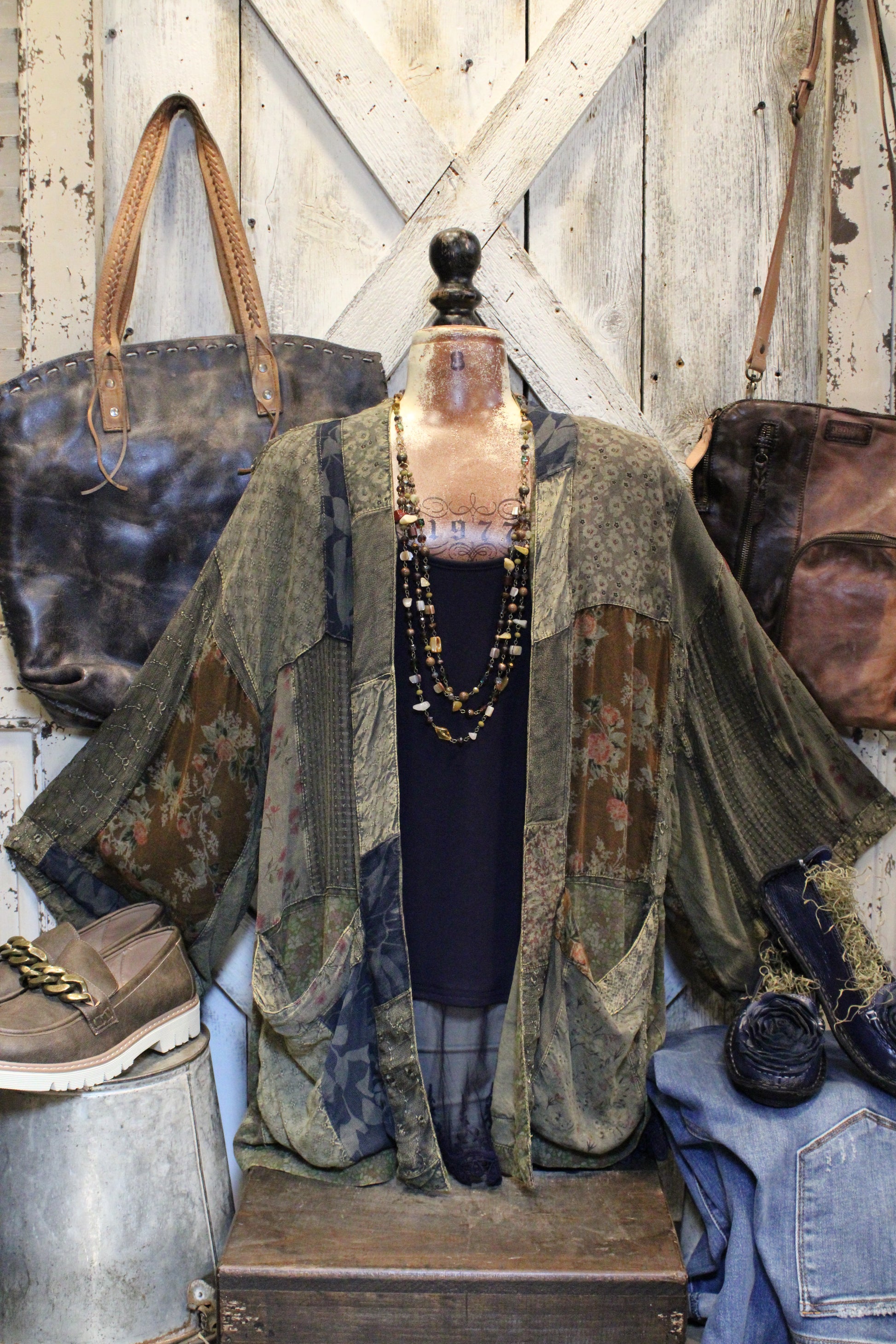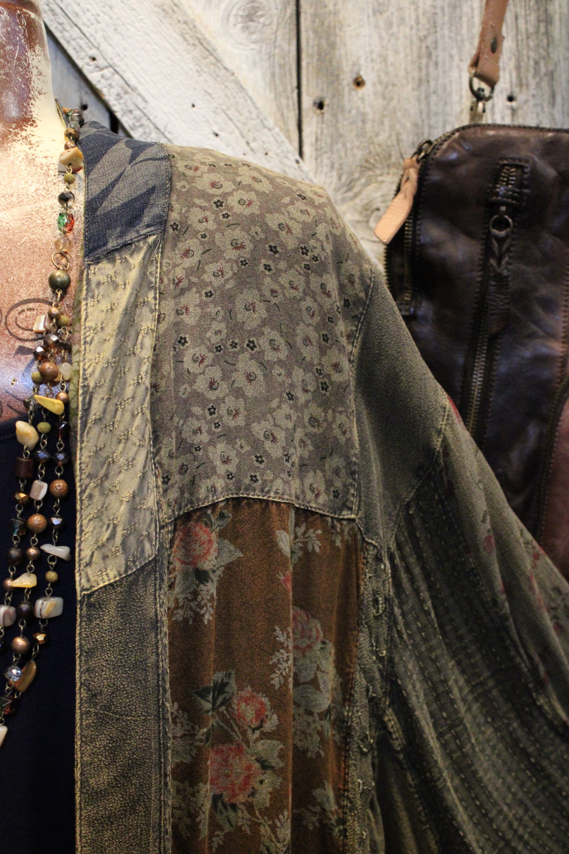 Introducing the Rustic Dreamer Kimono- Bring on the boho vibes with this stunning patchwork kimono! A mix of rich, earthy tones and patchwork pieces make this layering piece a true work of art. Each panel tells its own story — from subtle florals to vintage-inspired prints — creating that one-of-a-kind feel we love.