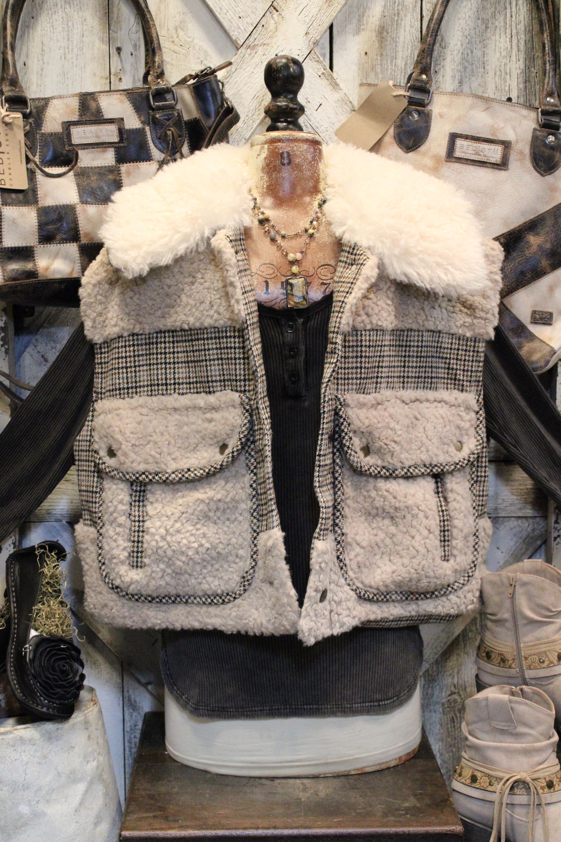 Meet the ultimate cozy companion for chilly days - the Sherpa Chic Vest- Cozy, country, and so chic — this vest wraps you up in all the farmhouse feels! Featuring a mix of soft sherpa, classic plaid tweed, and sweater-knit patchwork, it’s the perfect layering piece for when the air turns crisp and your coffee turns pumpkin-spiced.
