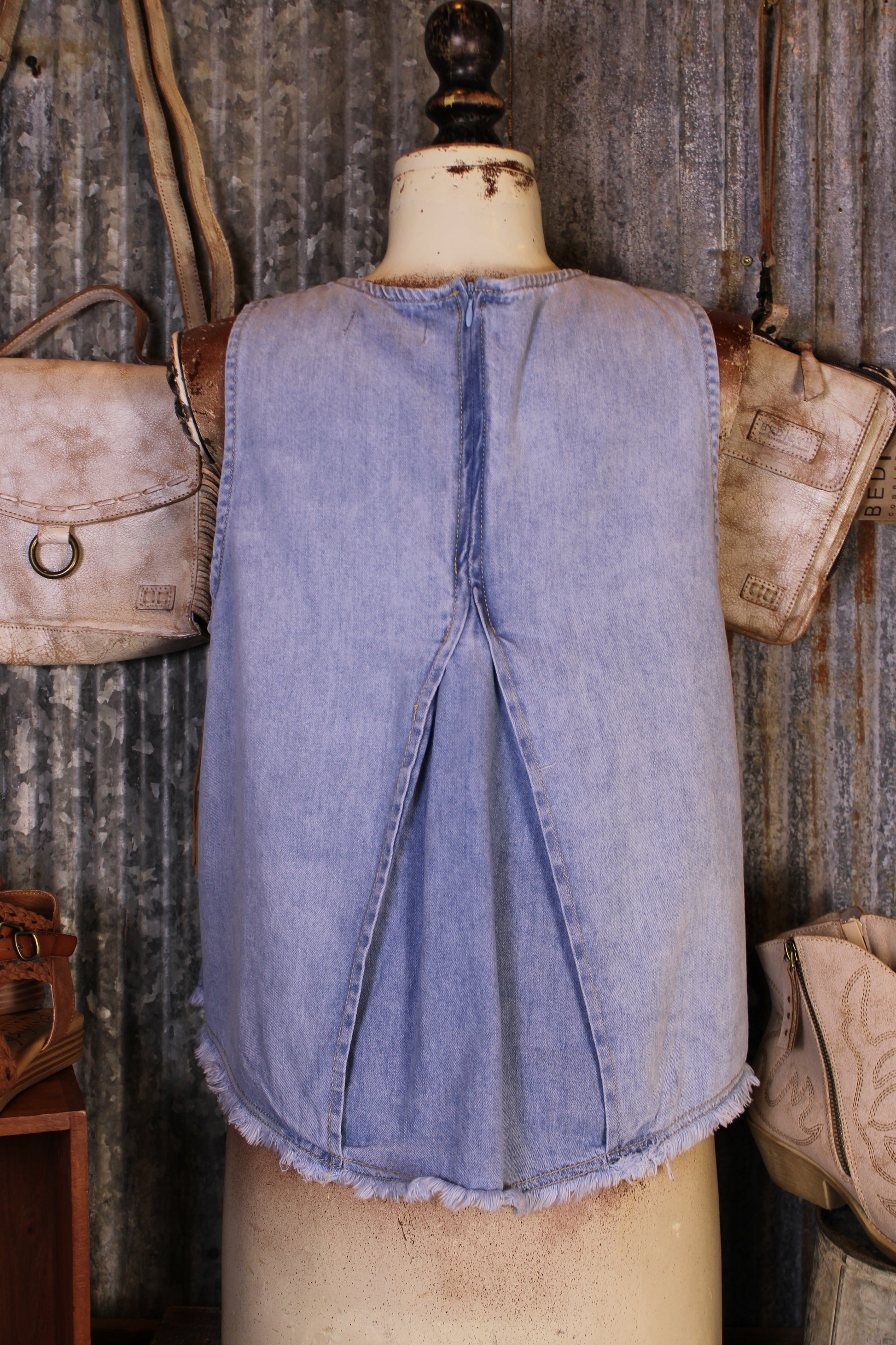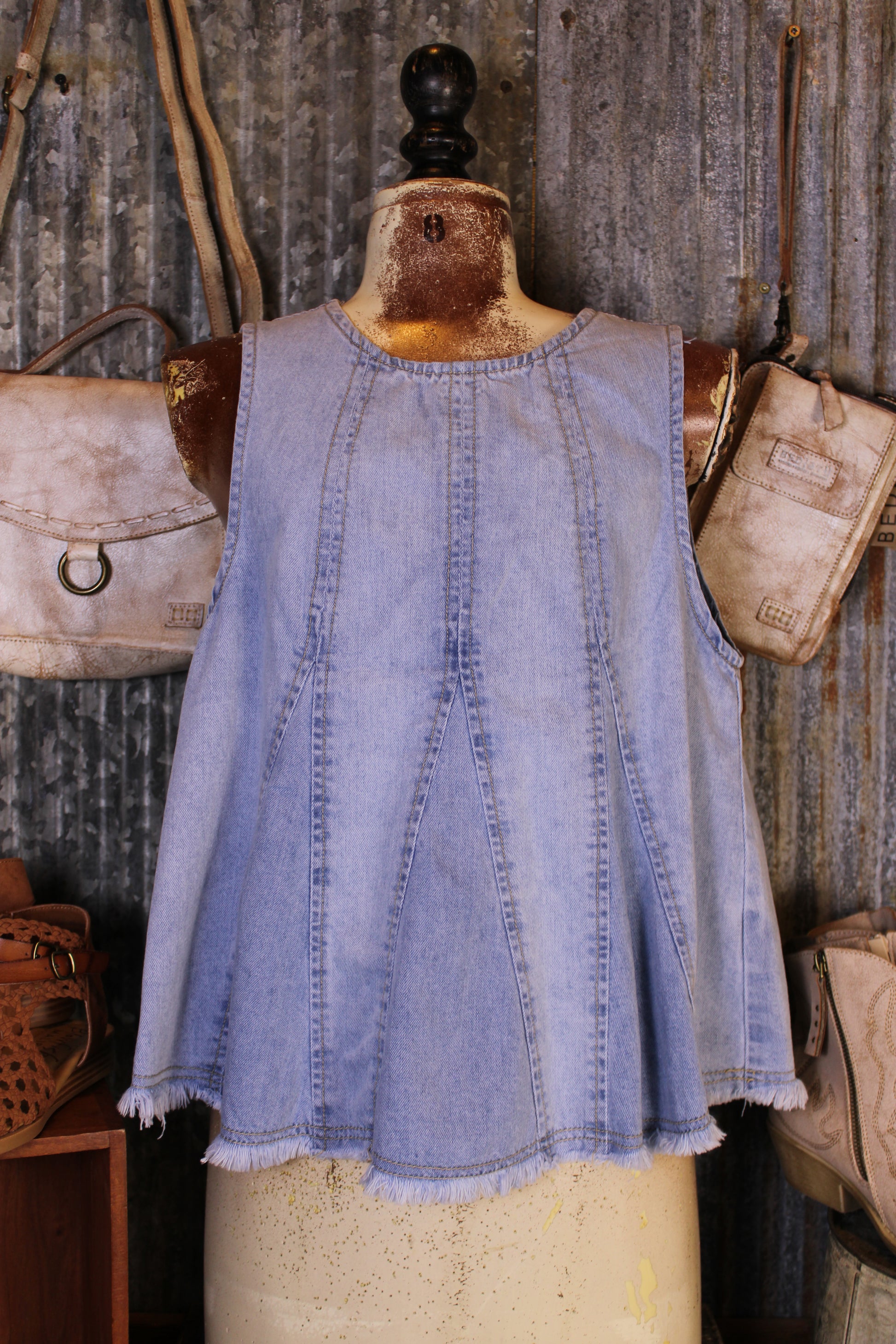 Introducing our stylish and versatile Skyline Denim Top! Light, airy, and made for sunny days, this denim blue tank is your new go-to for easy, everyday style. The relaxed, flowy fit keeps it comfortable while the subtle textured detailing adds just the right amount of interest. With its breezy silhouette and effortless feel, it pairs perfectly with your favorite denim, shorts, or layered under a cute jacket. Simple, flattering, and easy to wear—this is one you’ll reach for again and again.