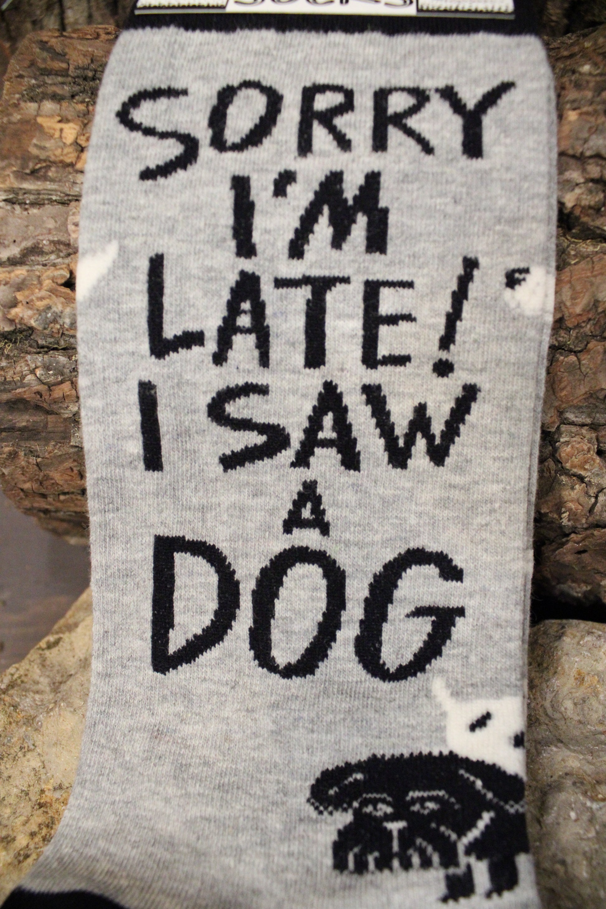 Introducing our "Sorry I'm Late! I Saw A Dog Socks" - For the dog-lover who gets delightfully distracted—these socks totally get you. 😉