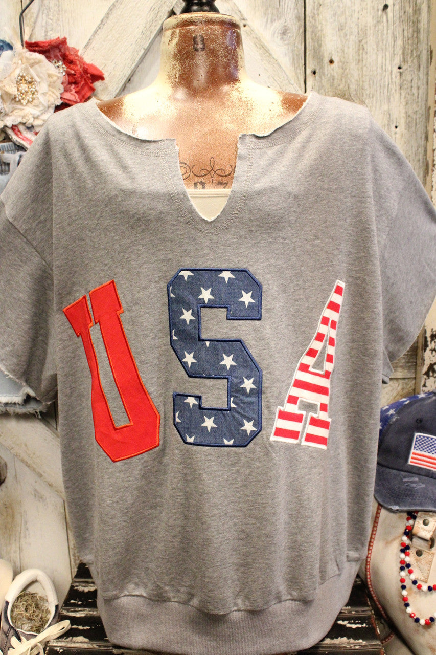 Stay comfy and stylish all day with our Stars and Stripes Casual Top. Available in plus sizes. Perfect for the 4th of July celebrations! Whether you're chilling by the lake, enjoying a boat ride, or gathering around a summer bonfire, this tee adds an effortless touch to your look. Embrace relaxation without compromising on style.