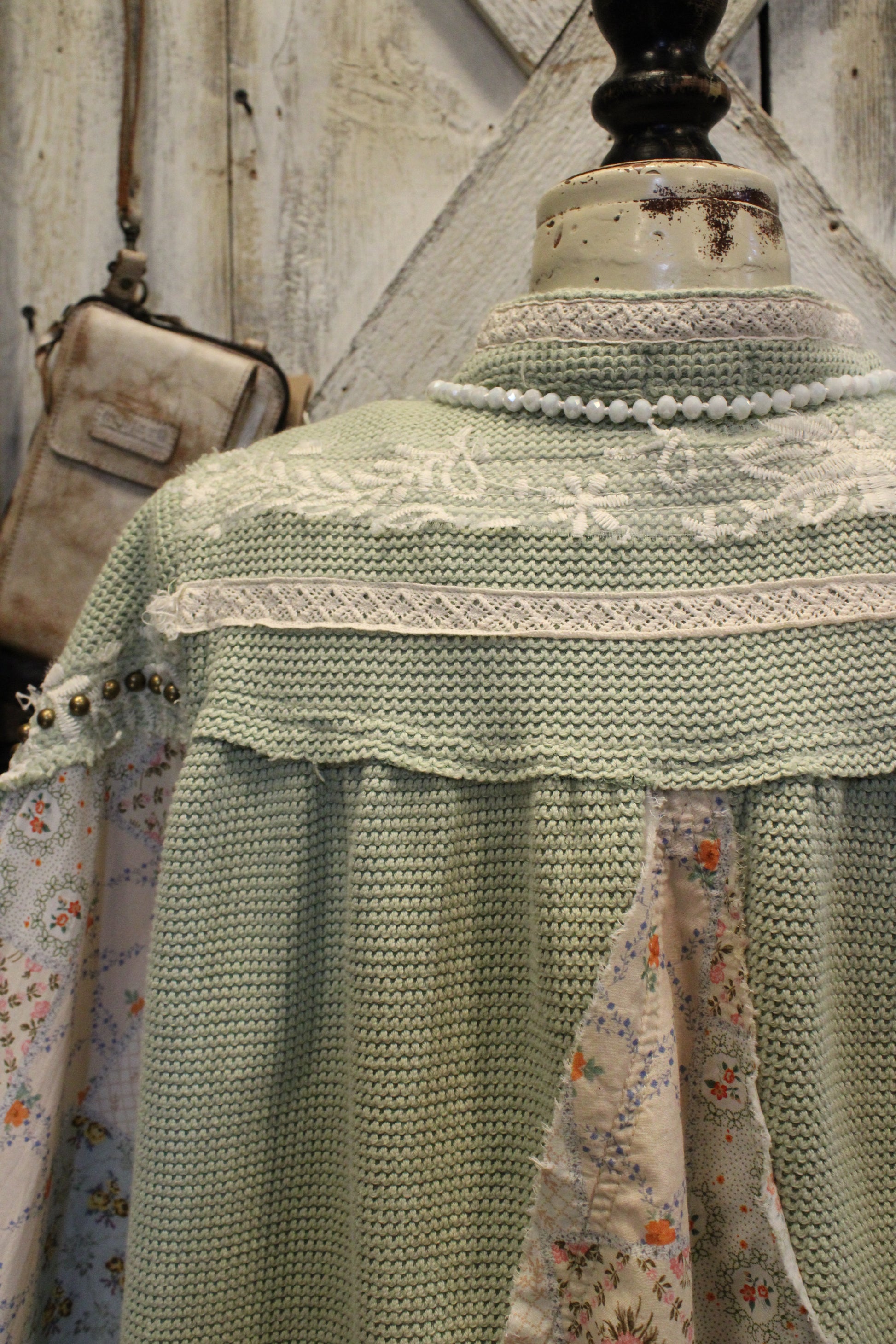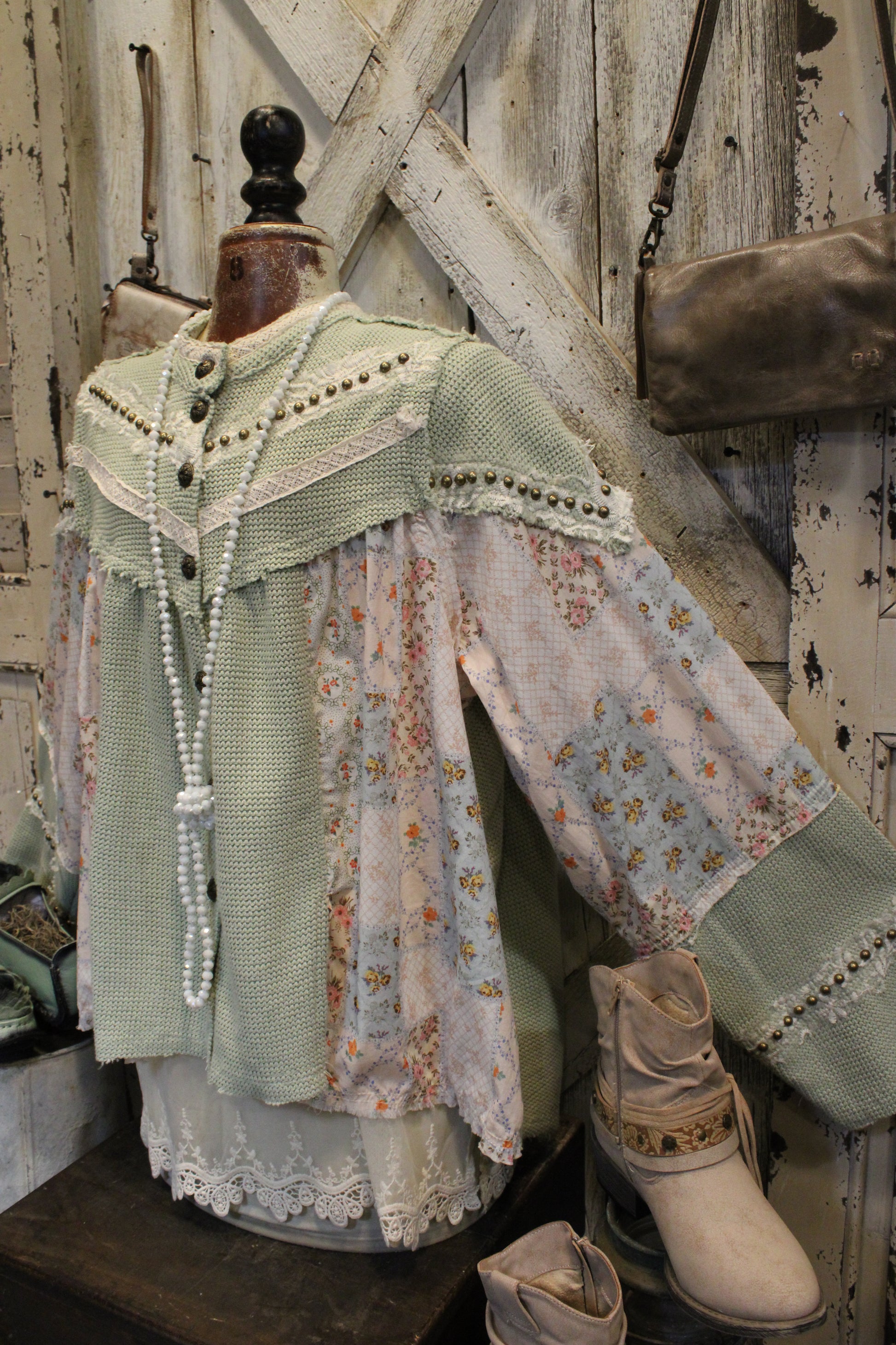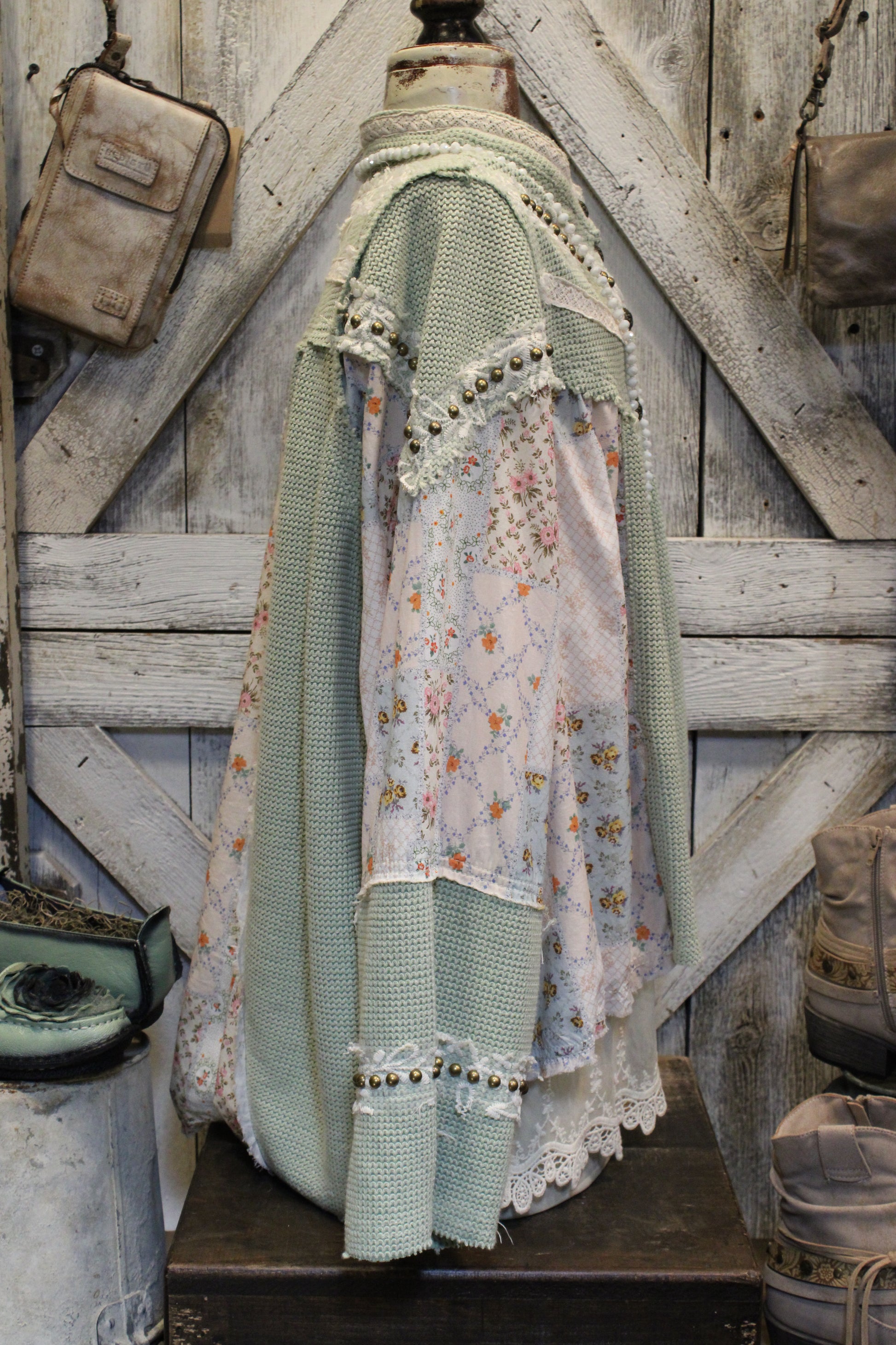 Introducing Studded Floral Fun Blouse - Soft, sweet, and full of vintage charm — this blouse is a true farm-girl favorite. Featuring a mix of sage green knit, delicate floral panels, and dainty lace trim, this beauty feels like it was made for twirling through wildflowers.