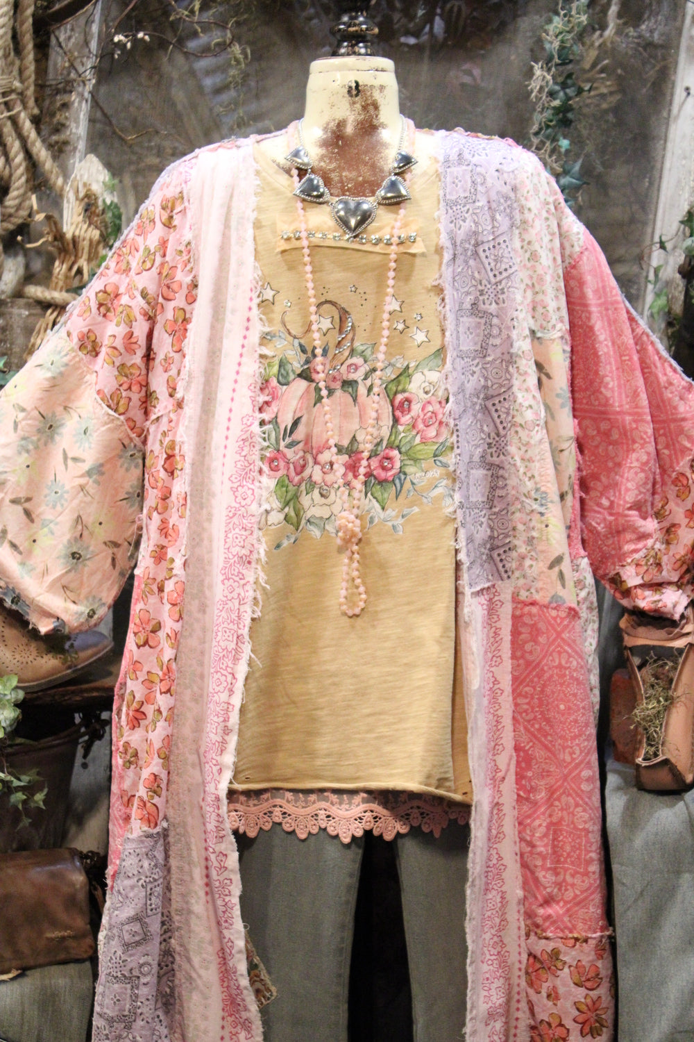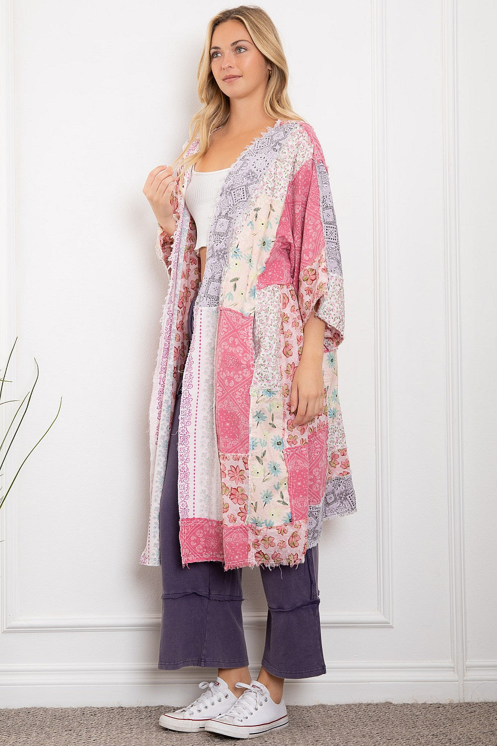 Introducing the Sugar Spun Long Duster- Delicate, flowing, and full of charm, this duster is a celebration of soft color and feminine detail. Featuring a collage of floral prints and breezy lightweight fabric, this open-front layering piece brings a fresh and uplifting spirit to your wardrobe. Its relaxed fit and wide sleeves offer effortless comfort, while the pastel palette adds a touch of romantic elegance. Perfect for dressing up denim or adding personality to a simple dress, this kimono is your go-to for easy, eye-catching style.