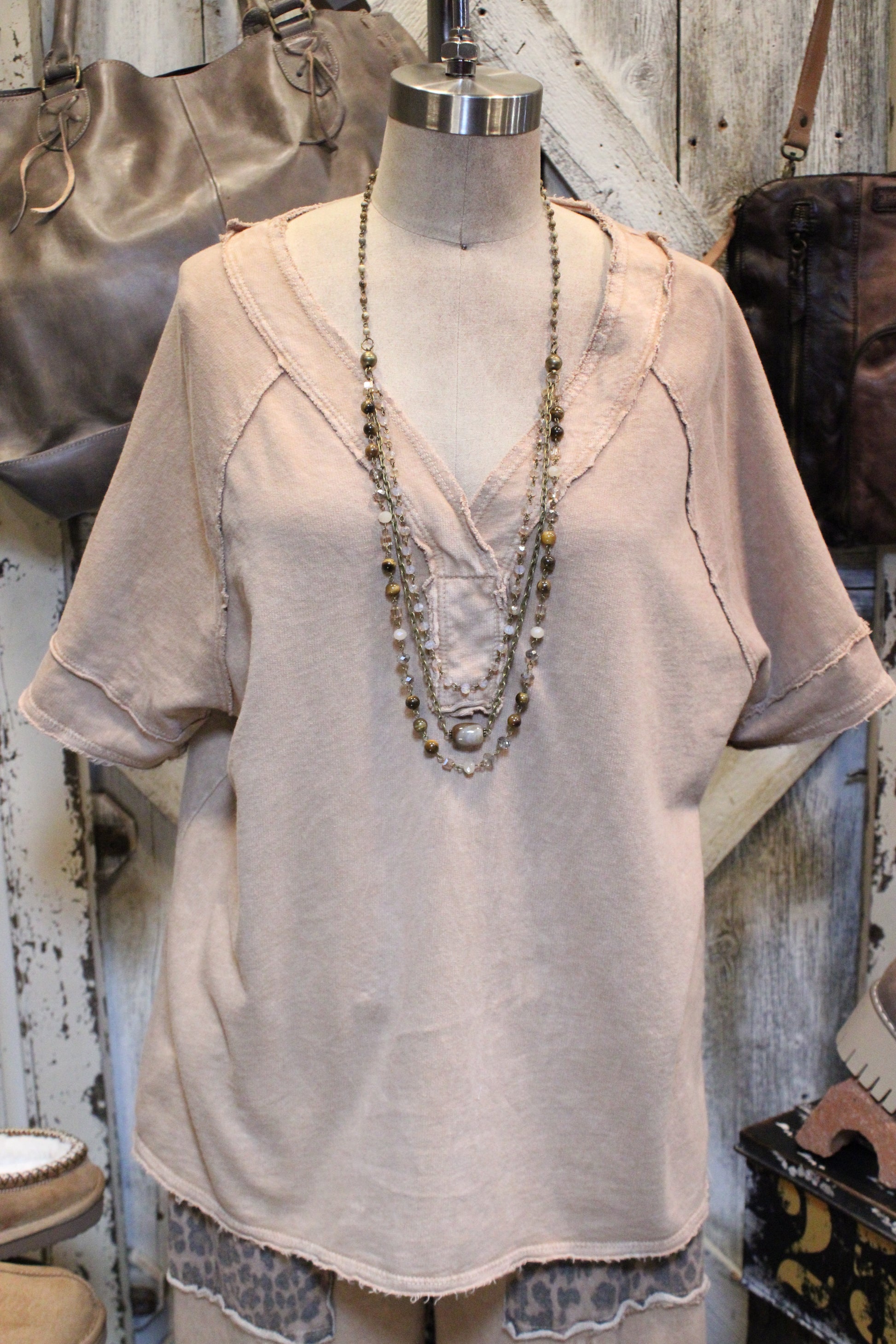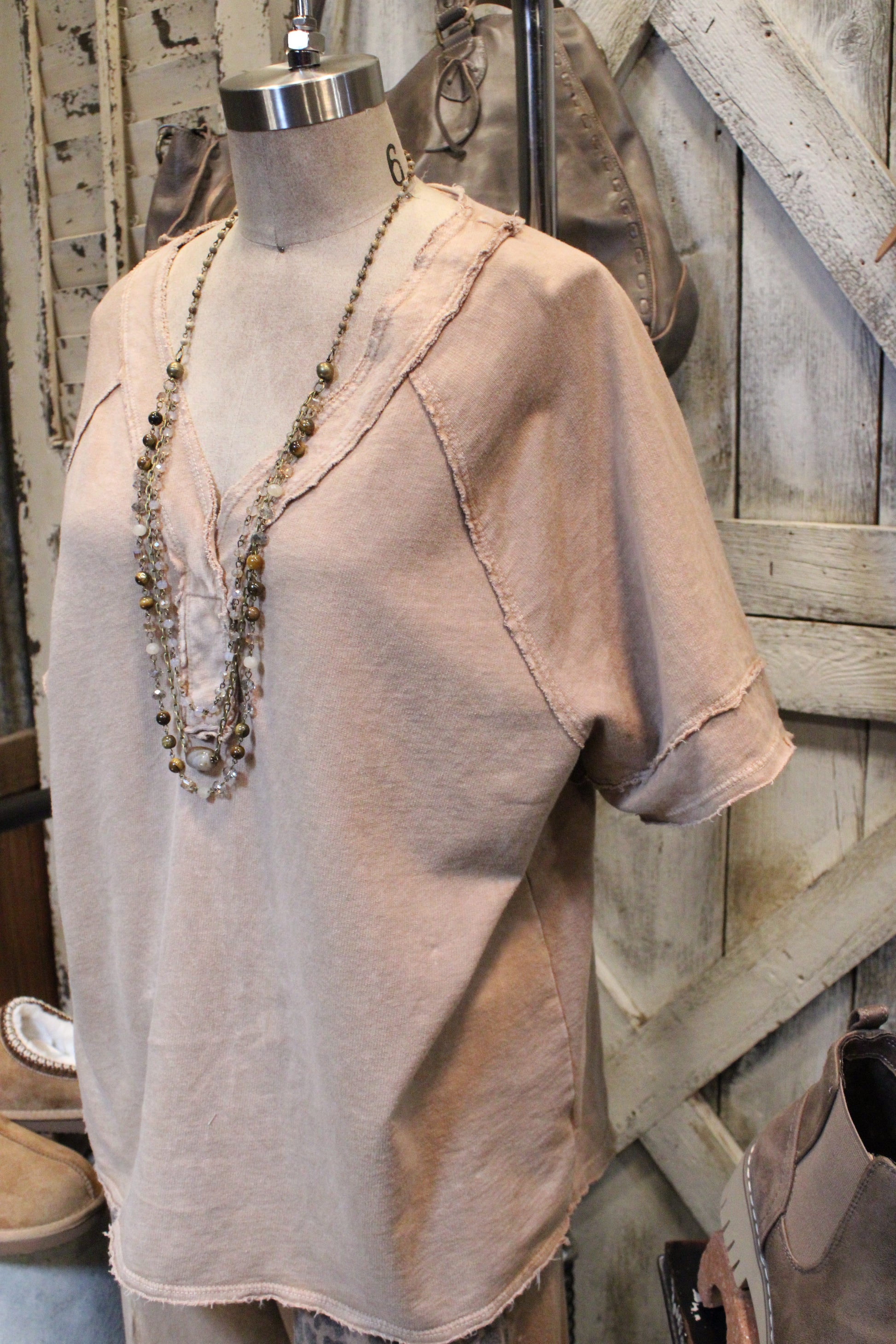 Introducing the In Sunday Stroll Casual- Soft, simple, and full of charm this top is that easygoing piece you’ll reach for time and time again. Made from the softest washed fabric, this relaxed-fit top features raw edge detailing and a flattering V-neckline for that perfectly undone look we all love.