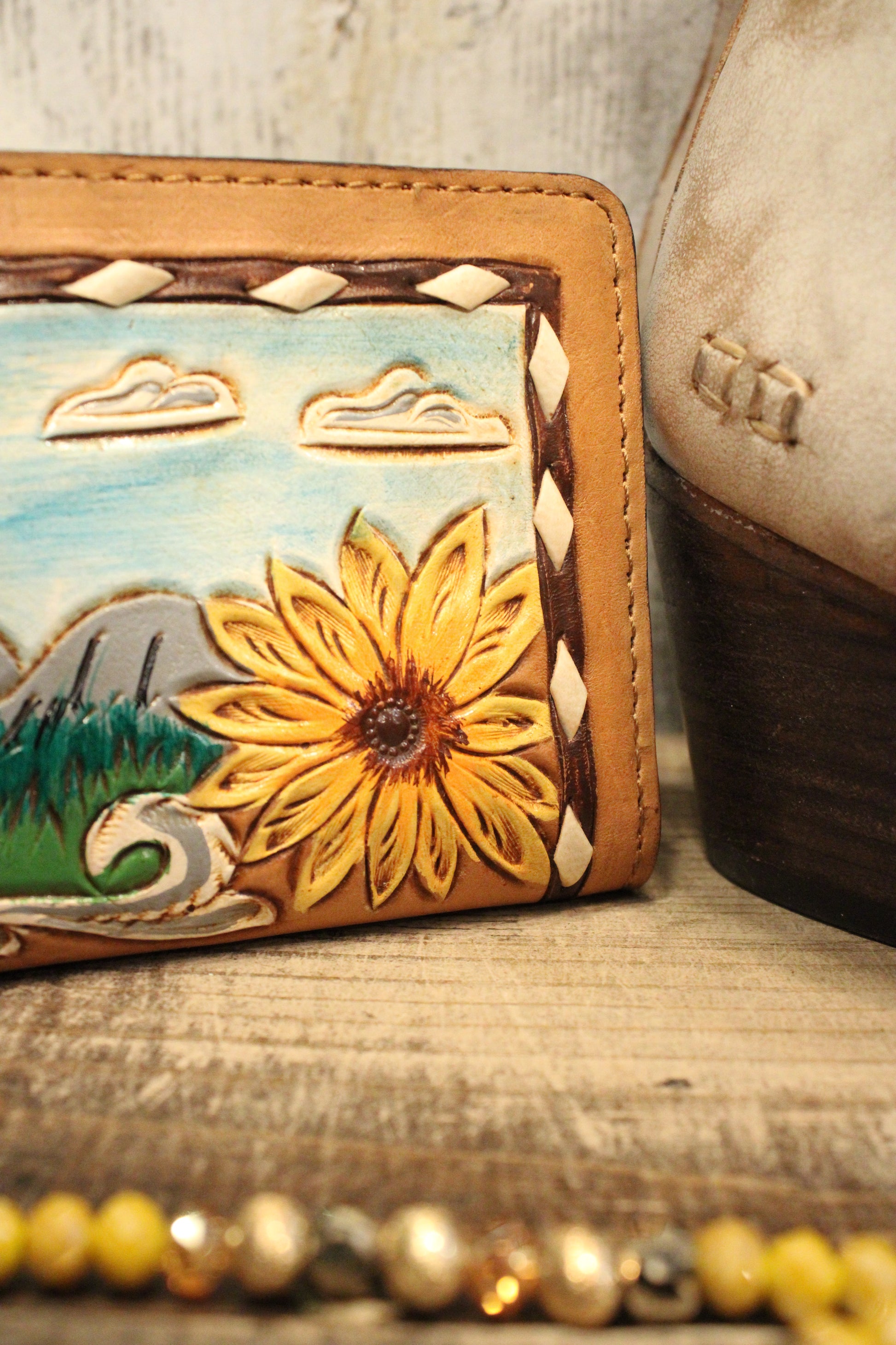 Introducing our stylish Sunflowers and Landscape Leather Wallet- perfect for adding a touch of Western flair to your accessory collection. Crafted with high-quality materials, this wallet features a beautiful sunflower and landscape design that is sure to stand out. Not only does this wallet boast a Western style, but it also offers a practical fit for all your essentials. With multiple compartments for cards, cash, and more, you can stay organized on the go. Whether you're treating yourself or looking for a thoughtful gift for loved ones, the Sunflowers and Landscape Leather Wallet is an ideal choice for holidays or everyday use. Add a touch of charm to your ensemble with this unique and versatile accessory.
