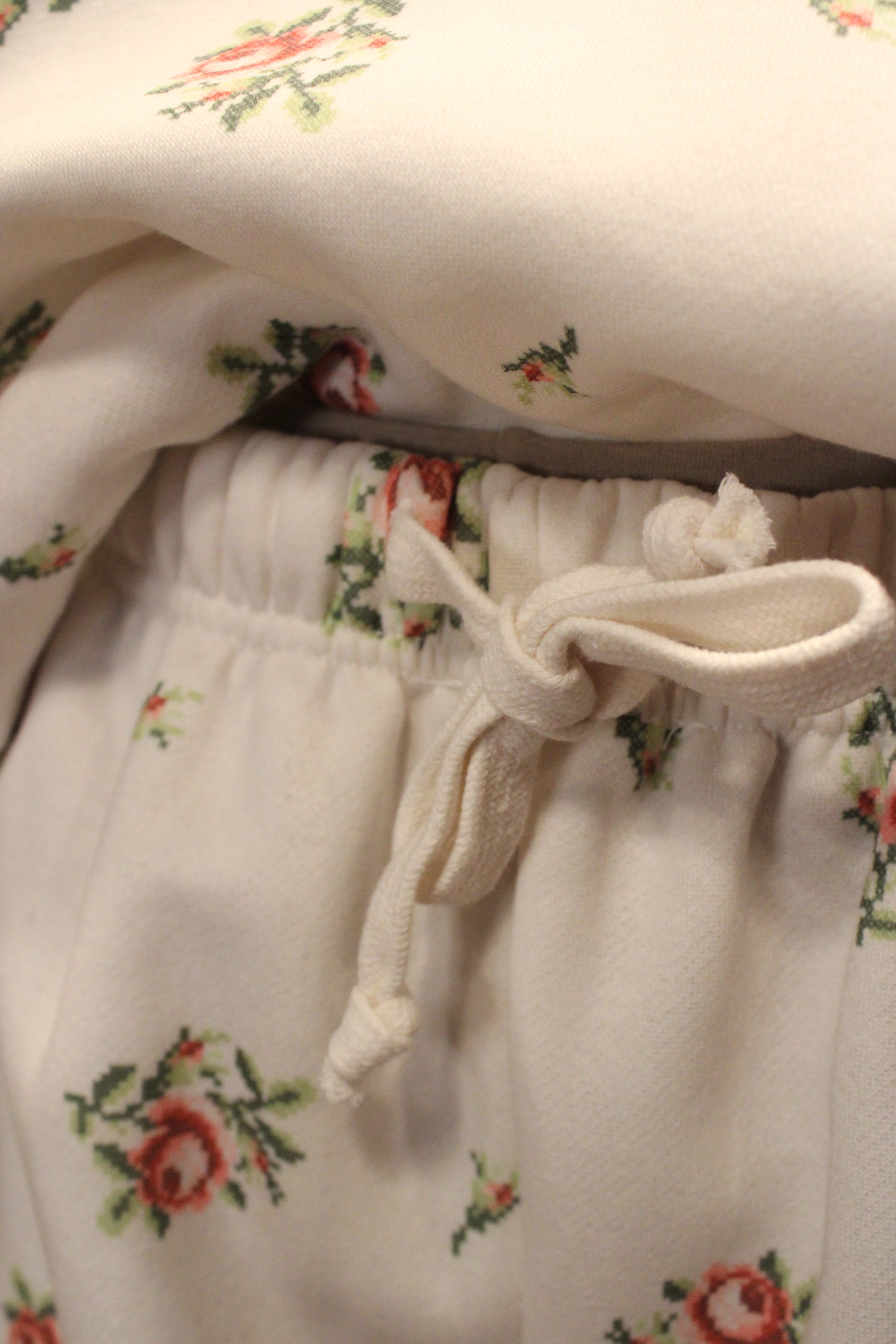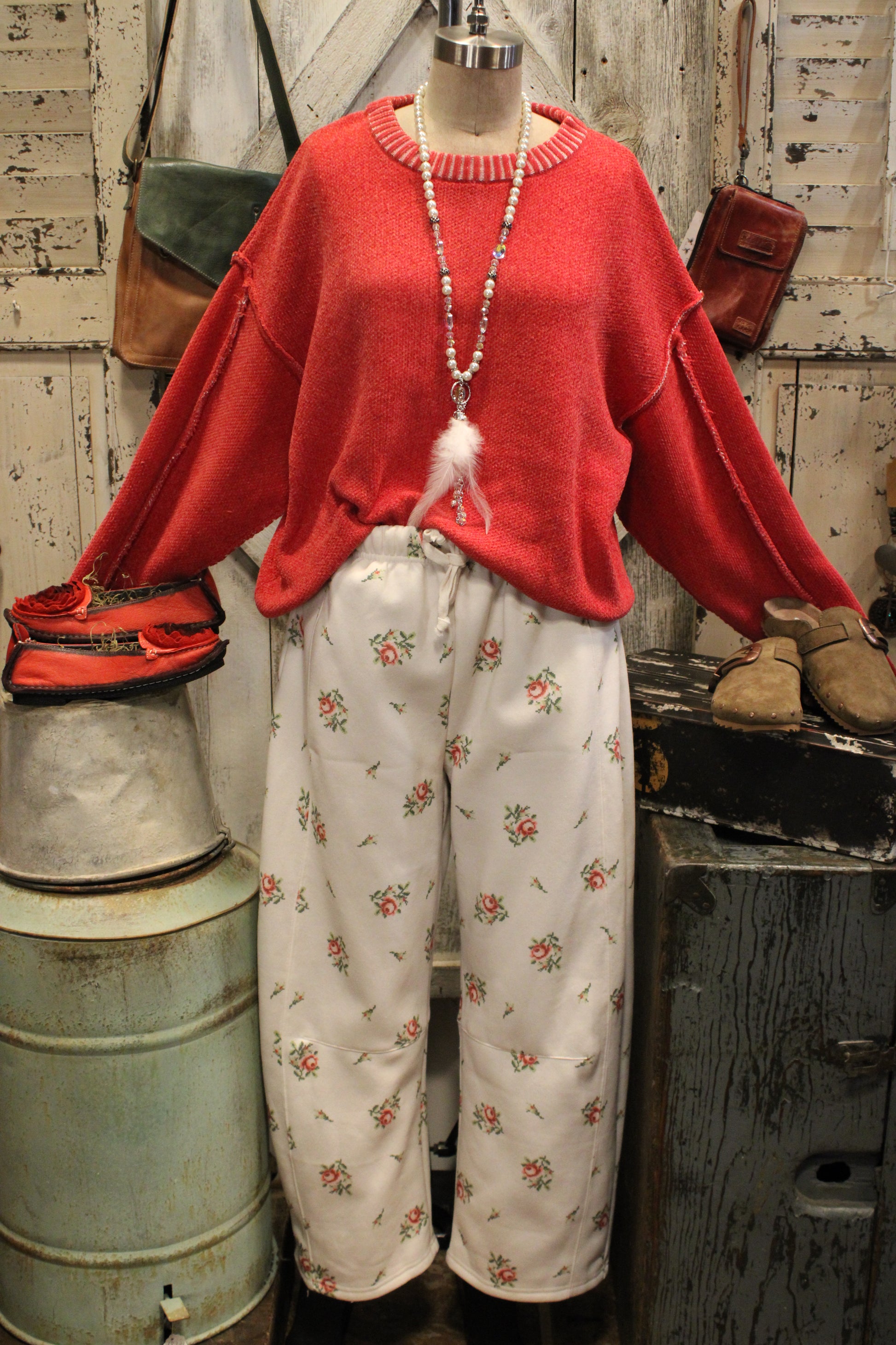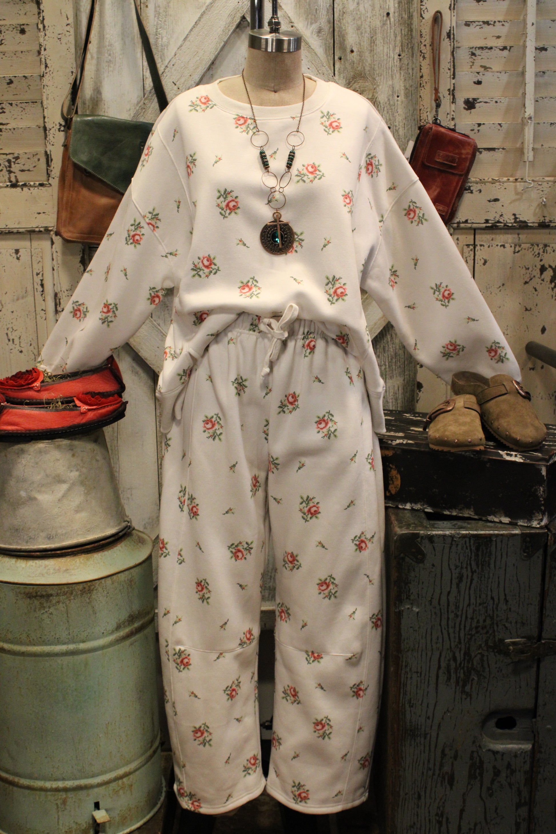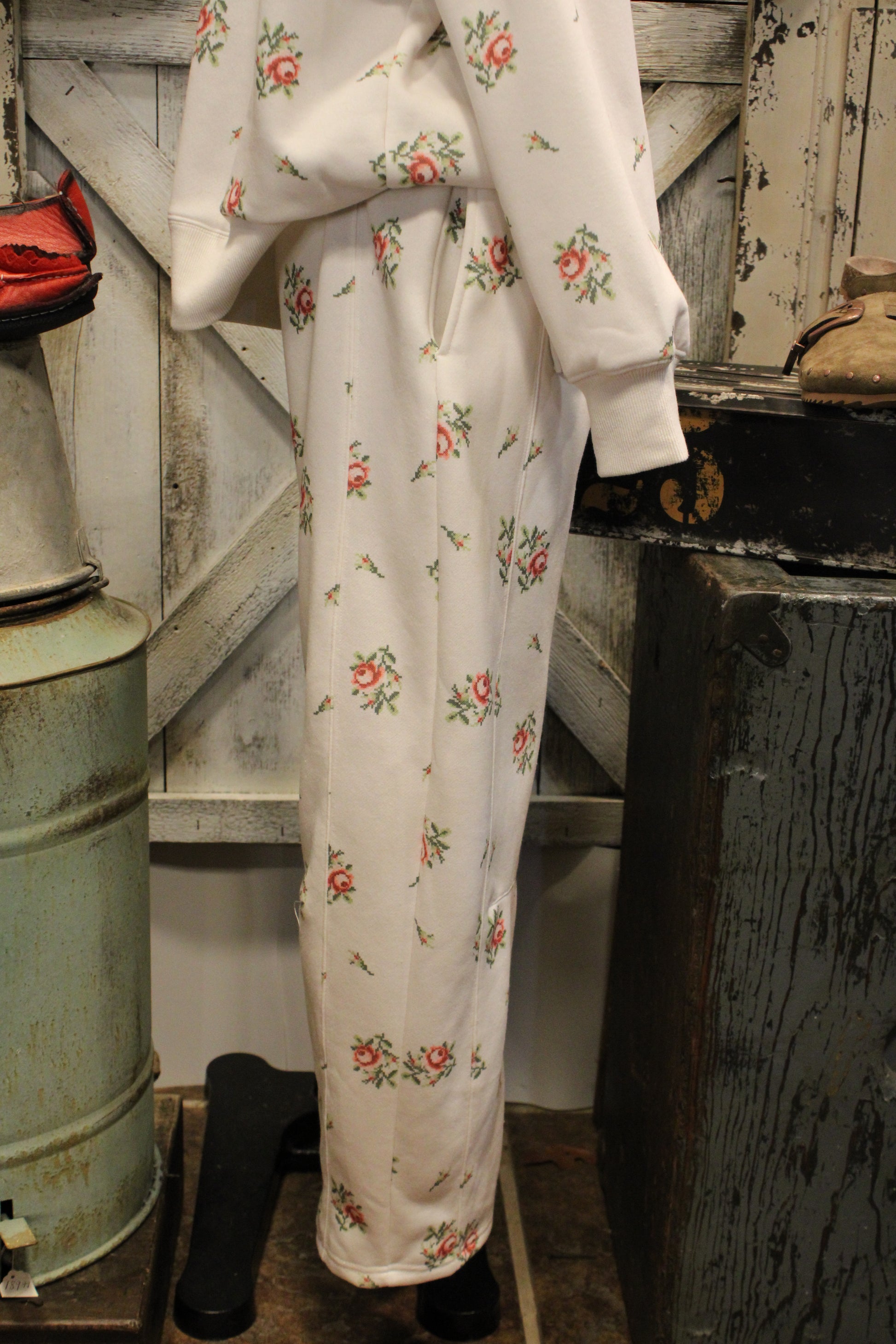 Introducing our Sweet Dreams Sweatpants- Made from the softest knit fabric with a relaxed wide-leg fit, these pants bring all the comfort of your favorite sweats with a sweet vintage touch. The soft ivory base and dainty rose print add a feminine farmhouse charm, while the elastic waist and drawstring tie make them perfect for all-day lounging or casual errands.