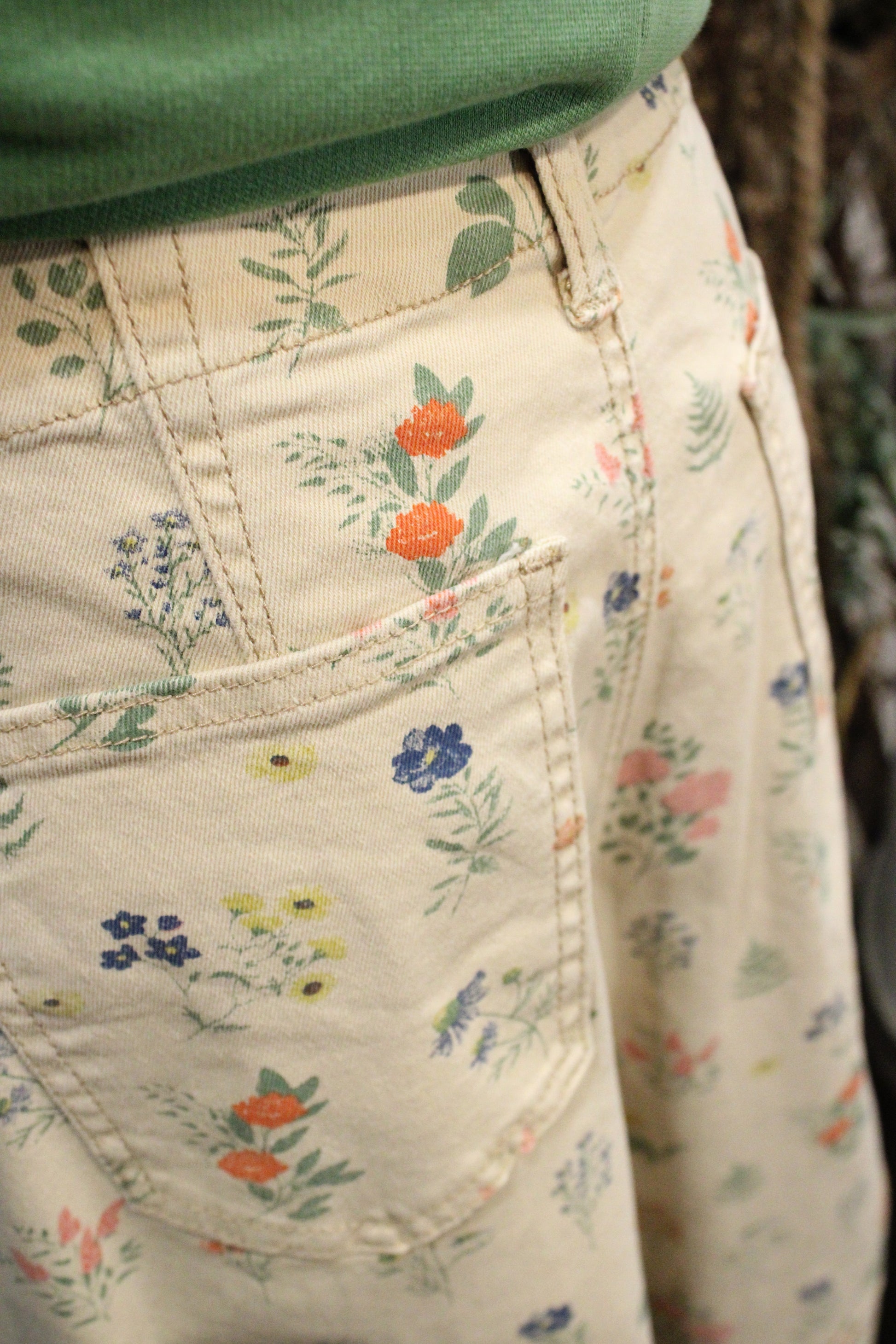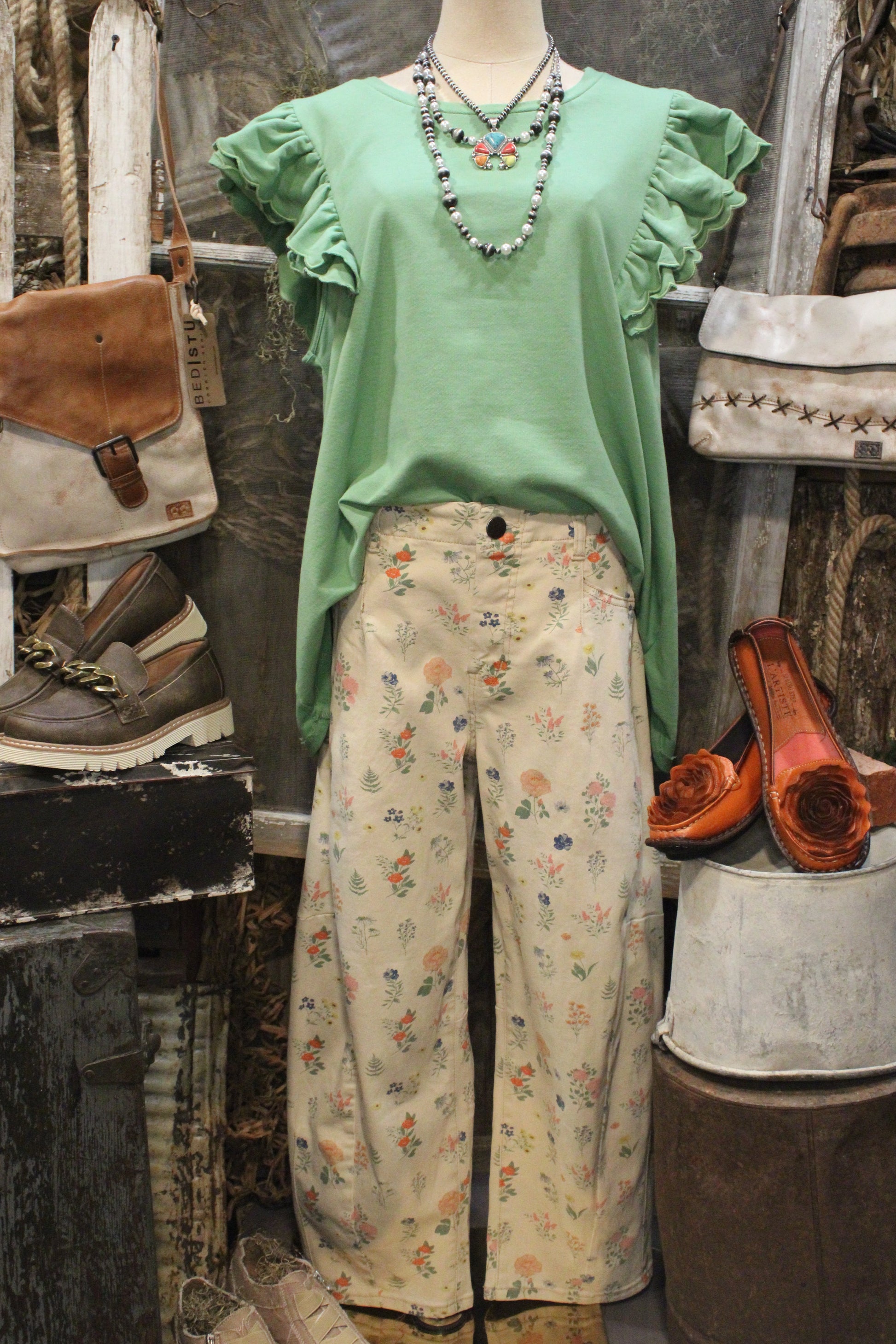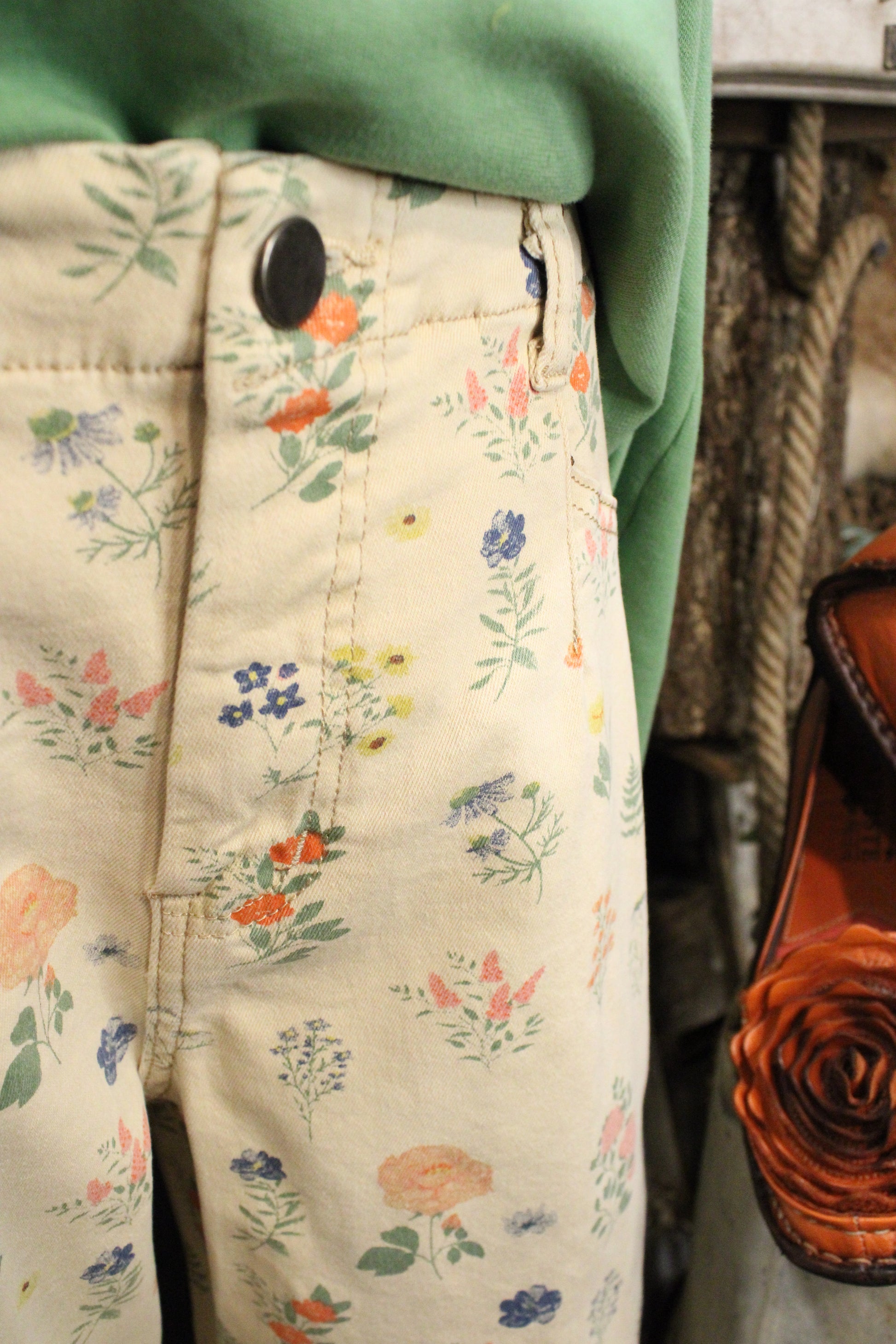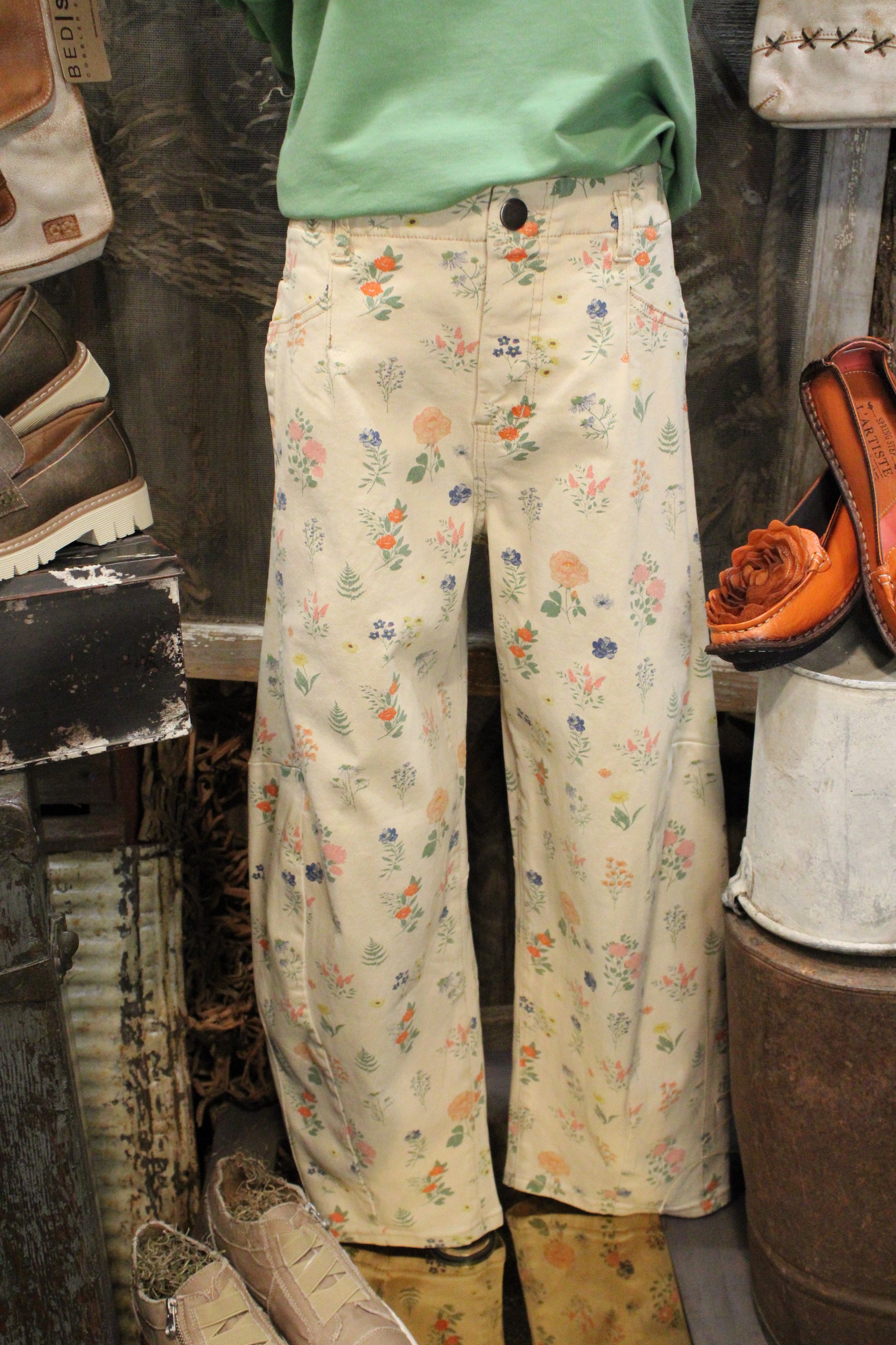 Introducing the Sweet Pea Floral Pants- Add a playful touch to your everyday look with these fabulous floral pants! Featuring an allover ditsy floral print on a soft khaki background, these cropped wide-leg pants are equal parts comfy and cute. The relaxed fit and mid-rise waist offer easy movement, while the classic five-pocket design keeps things functional.