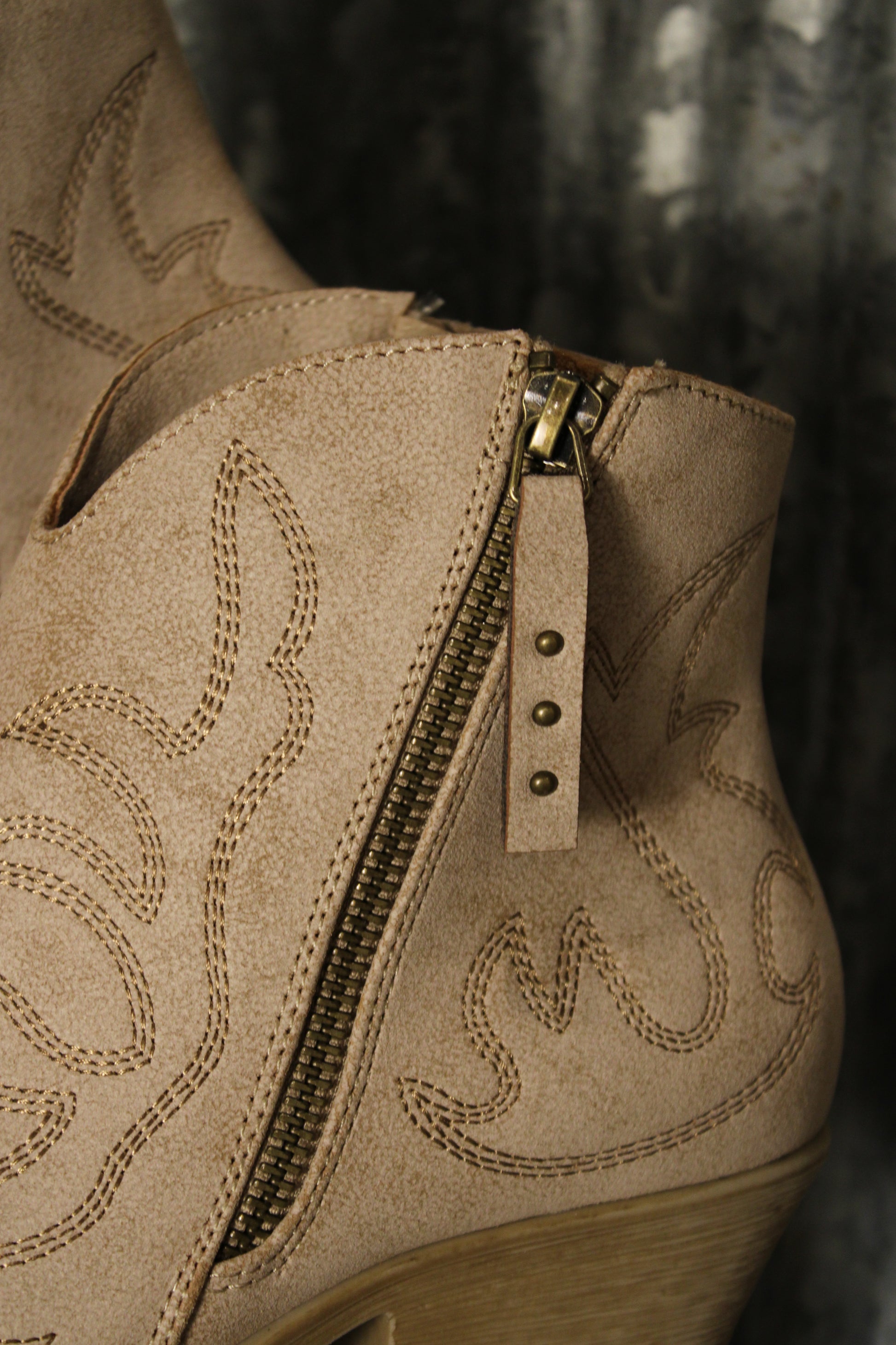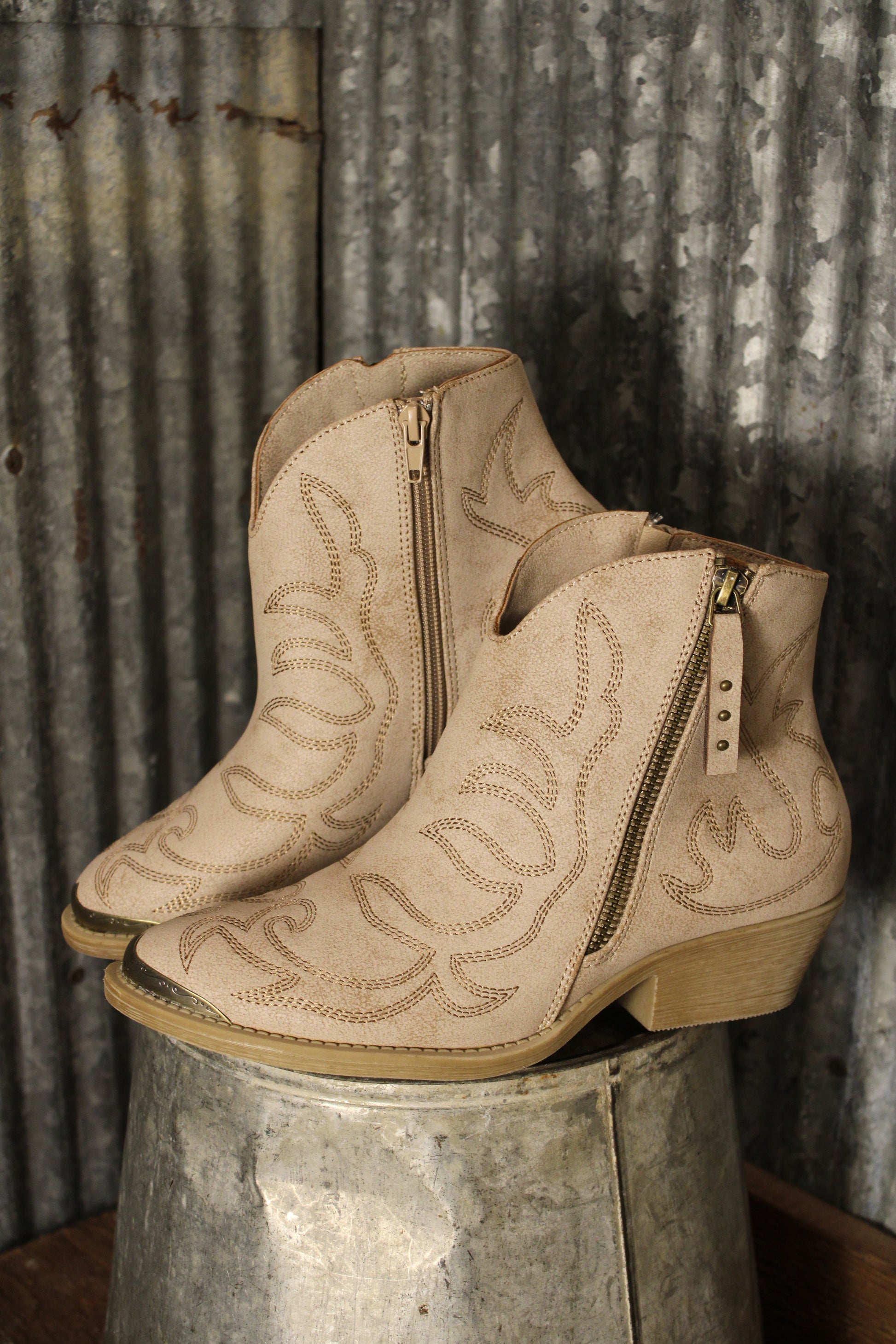 Introducing the Tazz Bootie, your perfect blend of style and comfort! This Western-inspired bootie features a convenient zipper for easy wear. Ideal for Spring/Summer and Fall/Winter seasons, it comes in versatile shades of Brown/Tan, Gold, and Beige. Step up your shoe game with the Tazz Bootie and elevate your holiday looks effortlessly!