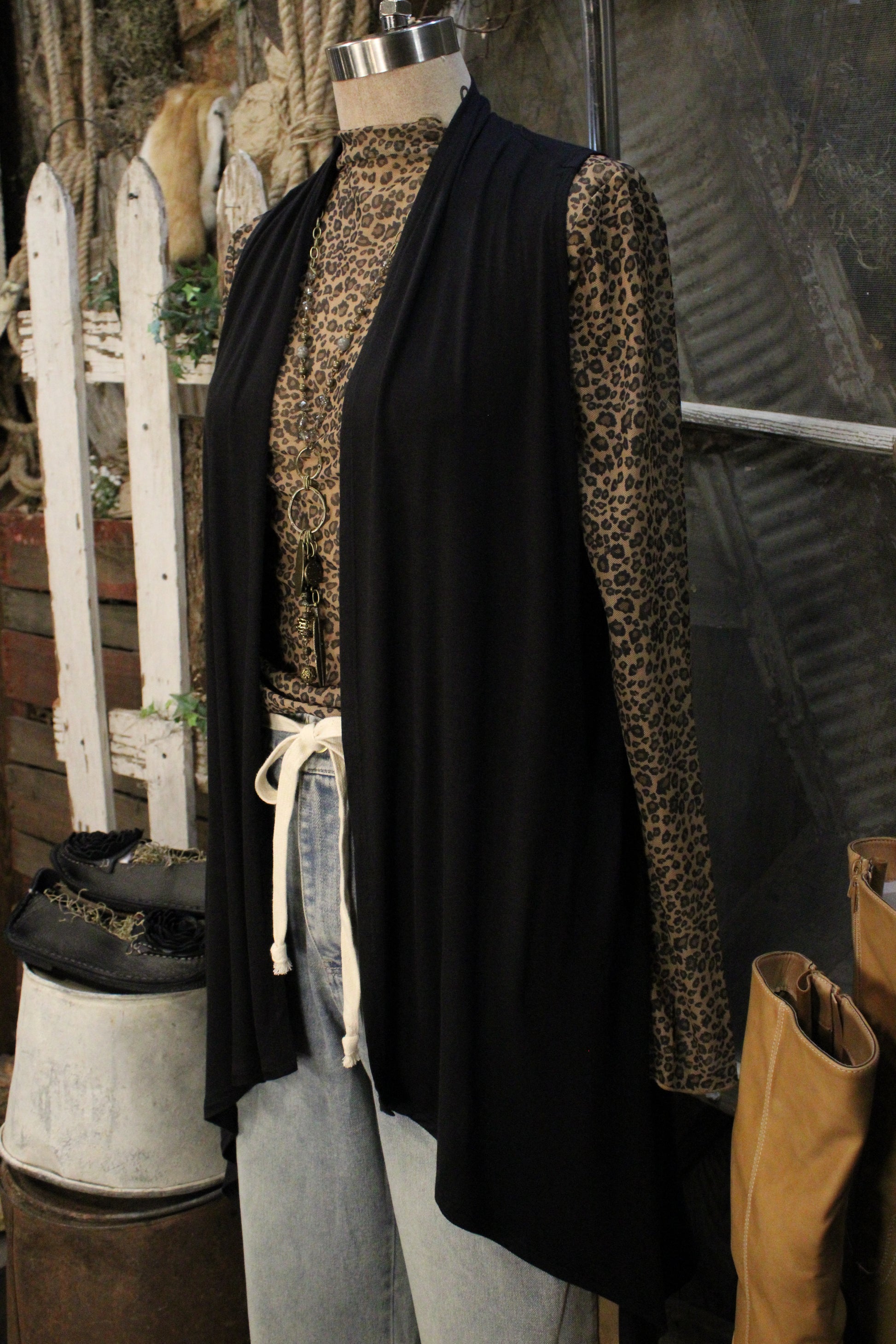 Introducing the Terra Drift Black Vest, This black flowy layering vest is the kind of piece that instantly pulls an outfit together with effortless, farm-girl charm. Designed with an open-front silhouette and a softly draped shape, this vest adds movement and dimension without feeling heavy or structured. The longer length creates a flattering, elongating look that layers beautifully over fitted tops, lightweight knits, and patterned pieces.
