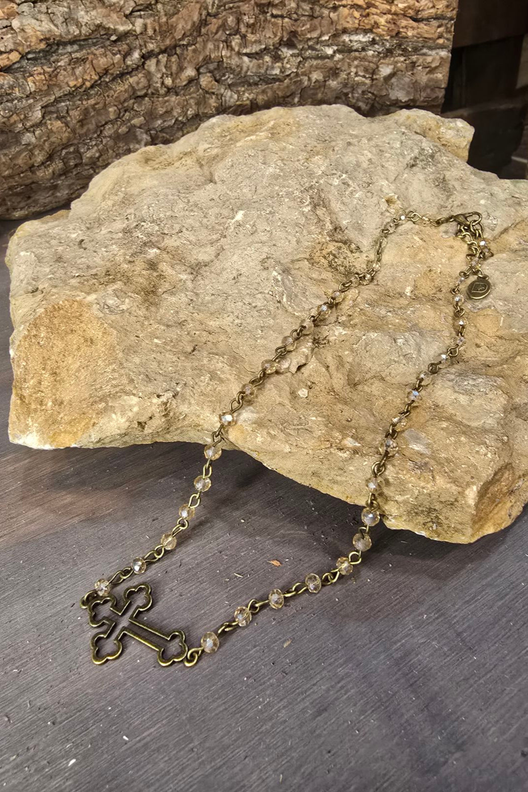 Introducing the stylish Tia Cross Necklace, the perfect accessory to elevate your look in every season, from breezy spring days to cozy winter nights. This charming necklace features a versatile blend of brown and tan hues, adding a touch of warmth to any outfit. Whether you're heading to a summer brunch or a festive fall gathering, the Tia Cross Necklace is sure to be your go-to piece. Upgrade your jewelry collection with this must-have accessory!