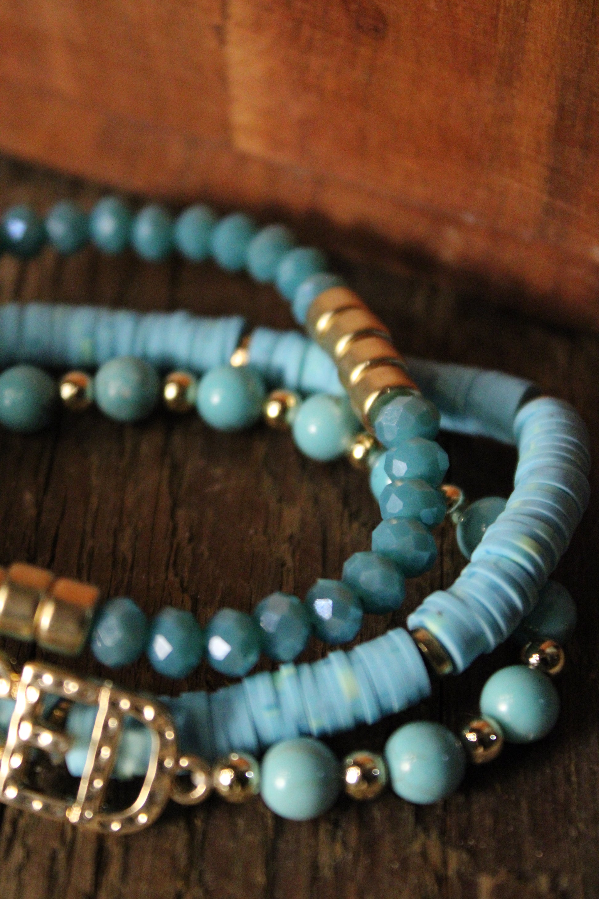 Introducing the Turquoise BLESSED Bracelet, This turquoise-toned stacked bracelet set brings a little western soul and a whole lot of heart to your everyday look. Featuring layered strands of smooth beads, faceted accents, and gold details, the set is finished with a bold “BLESSED” charm that makes a sweet statement. Stretchy and comfortable for easy wear, these bracelets are perfect stacked together or mixed into your favorite arm party. A meaningful piece with farm-girl charm, it’s an effortless reminder to carry gratitude with you wherever you go.