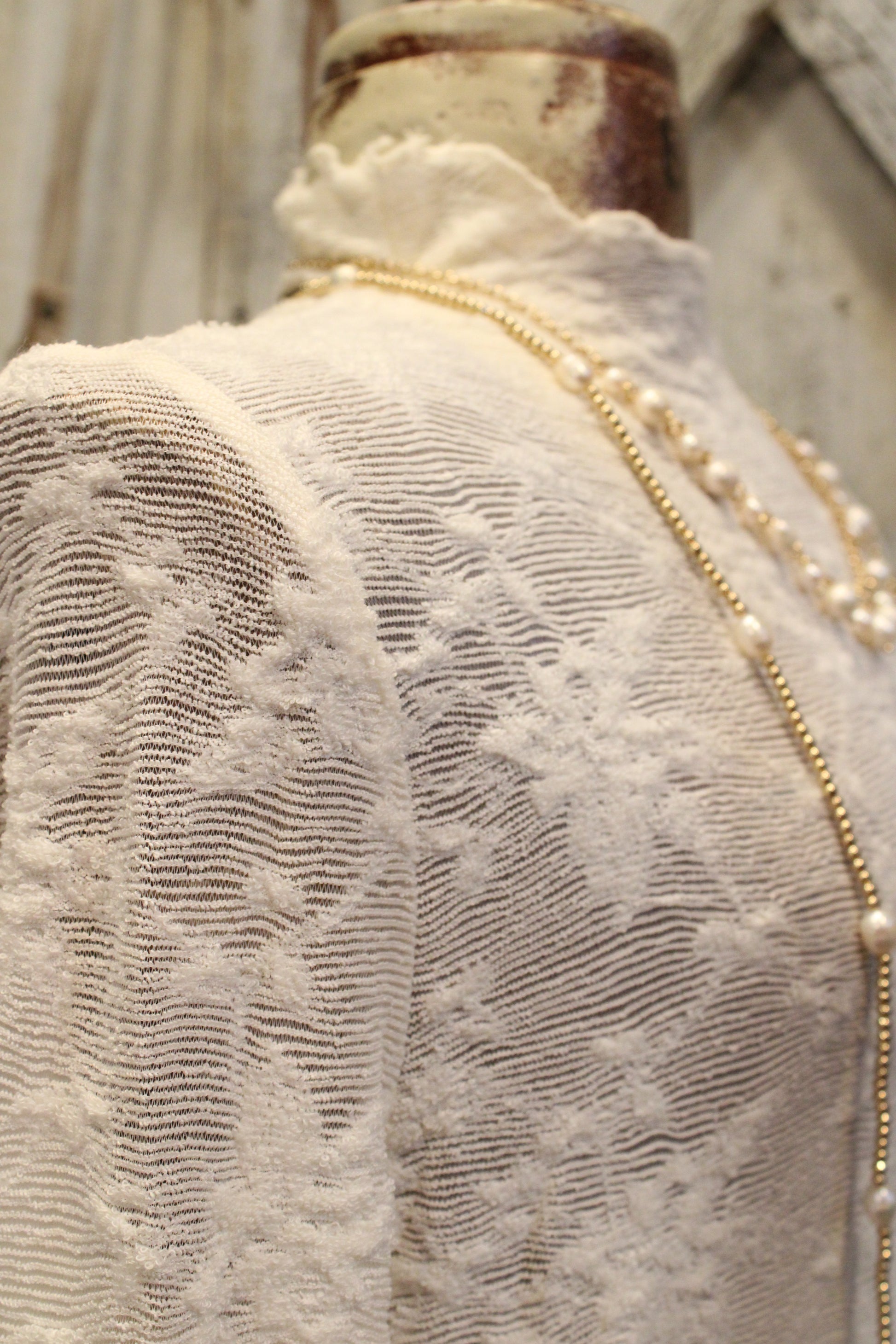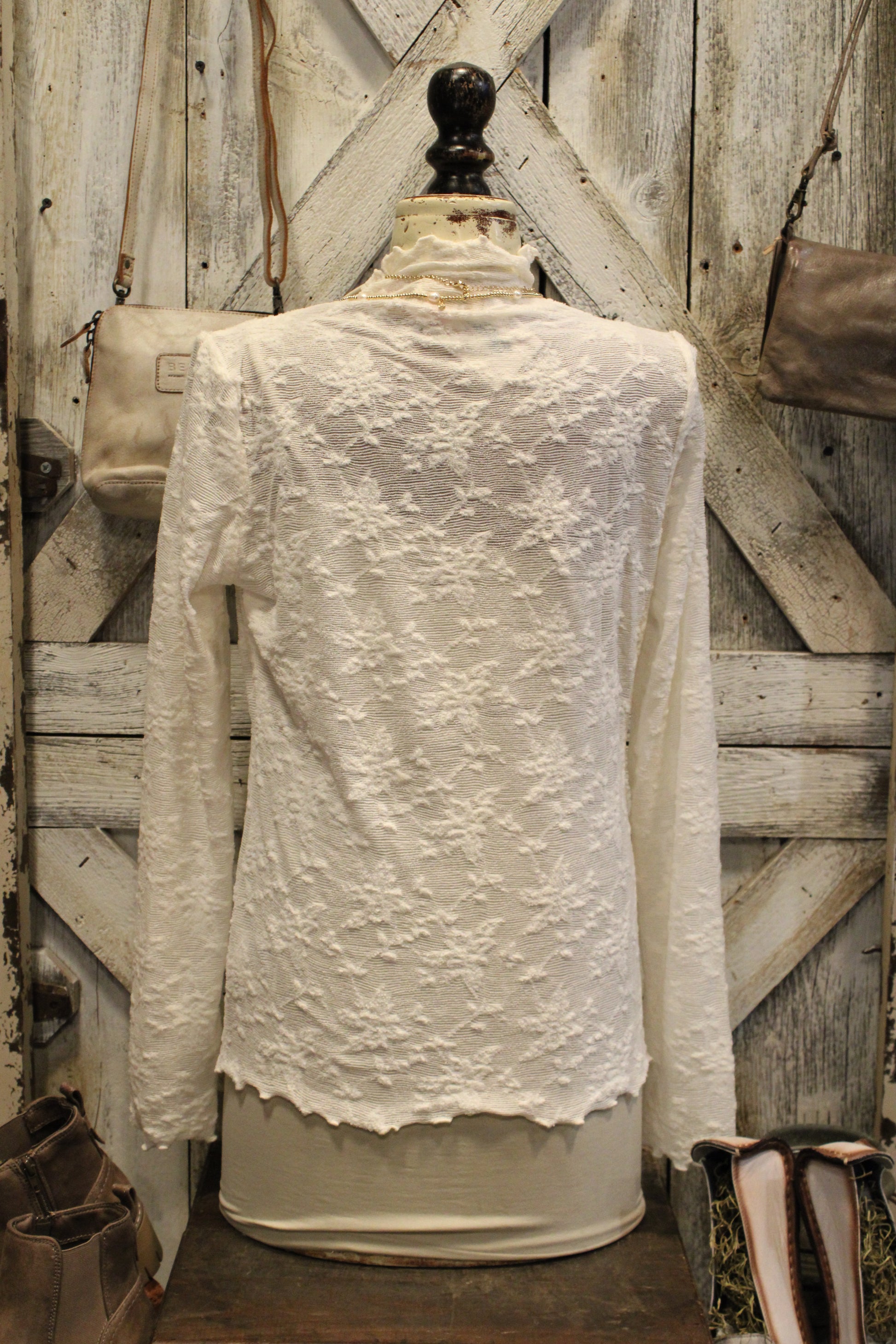 Introducing the Vanilla Kiss Mesh Top- Delicate, dreamy, and oh-so-versatile — this mesh top is the layering piece your wardrobe has been waiting for. Featuring a subtle floral pattern woven into soft, sheer fabric, it adds just the right touch of texture and romance to any outfit. The long sleeves and lightweight design make it perfect for styling year-round — wear it over a cami for everyday chic, or layer it under dresses, graphic tees, or sweaters for that effortlessly cool, farm-girly vibe.