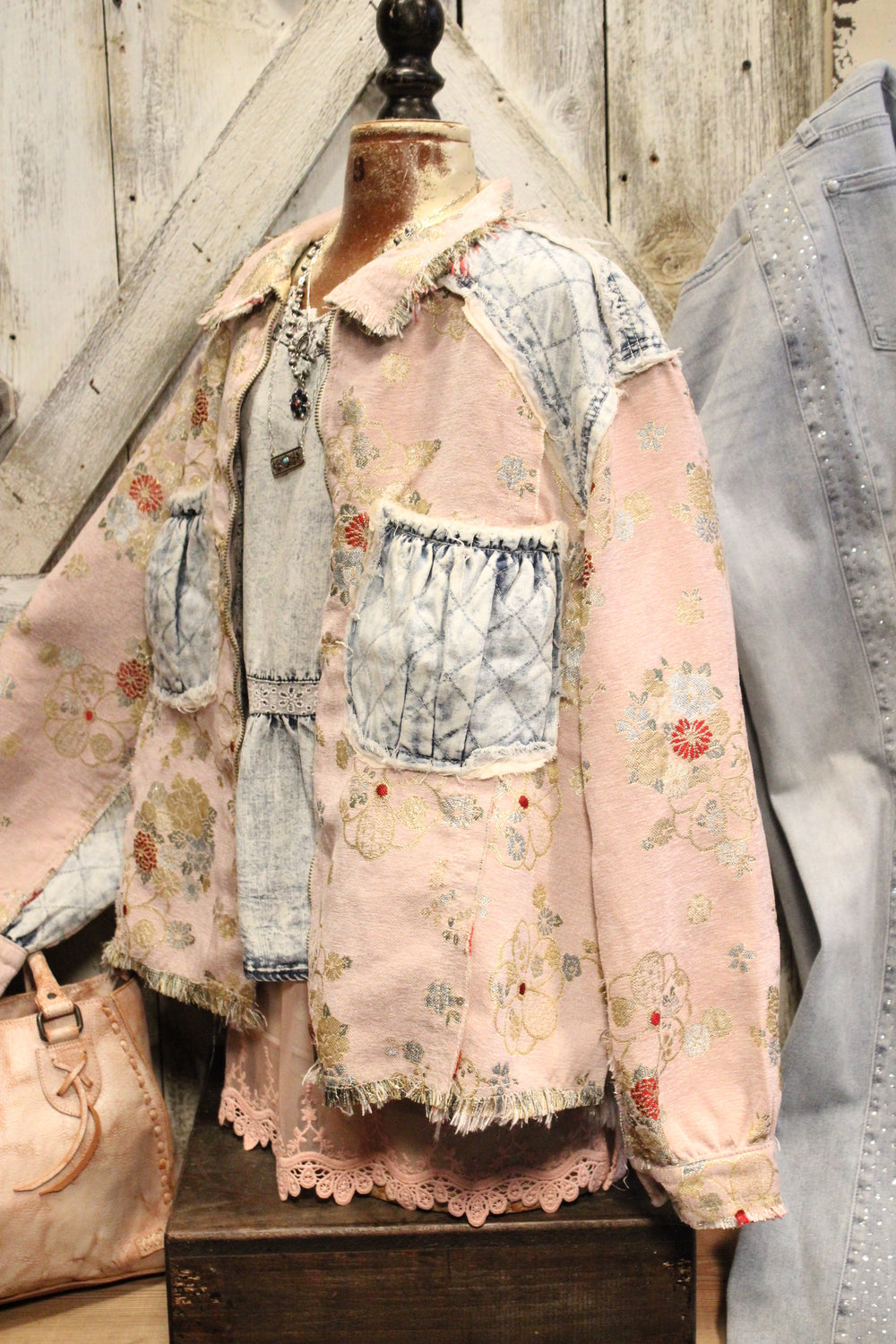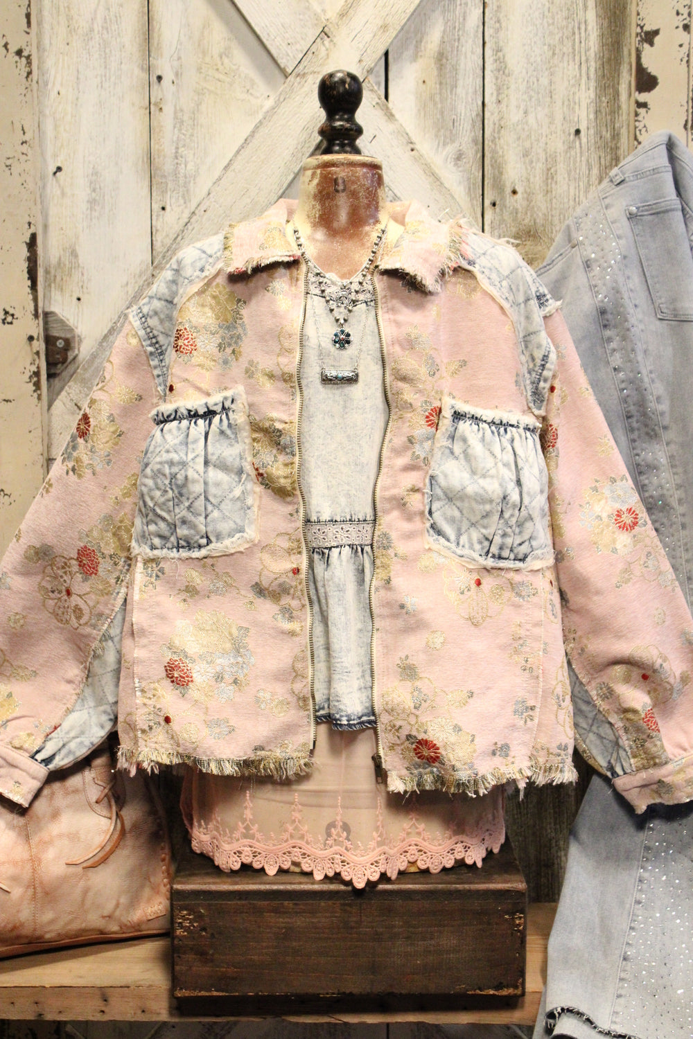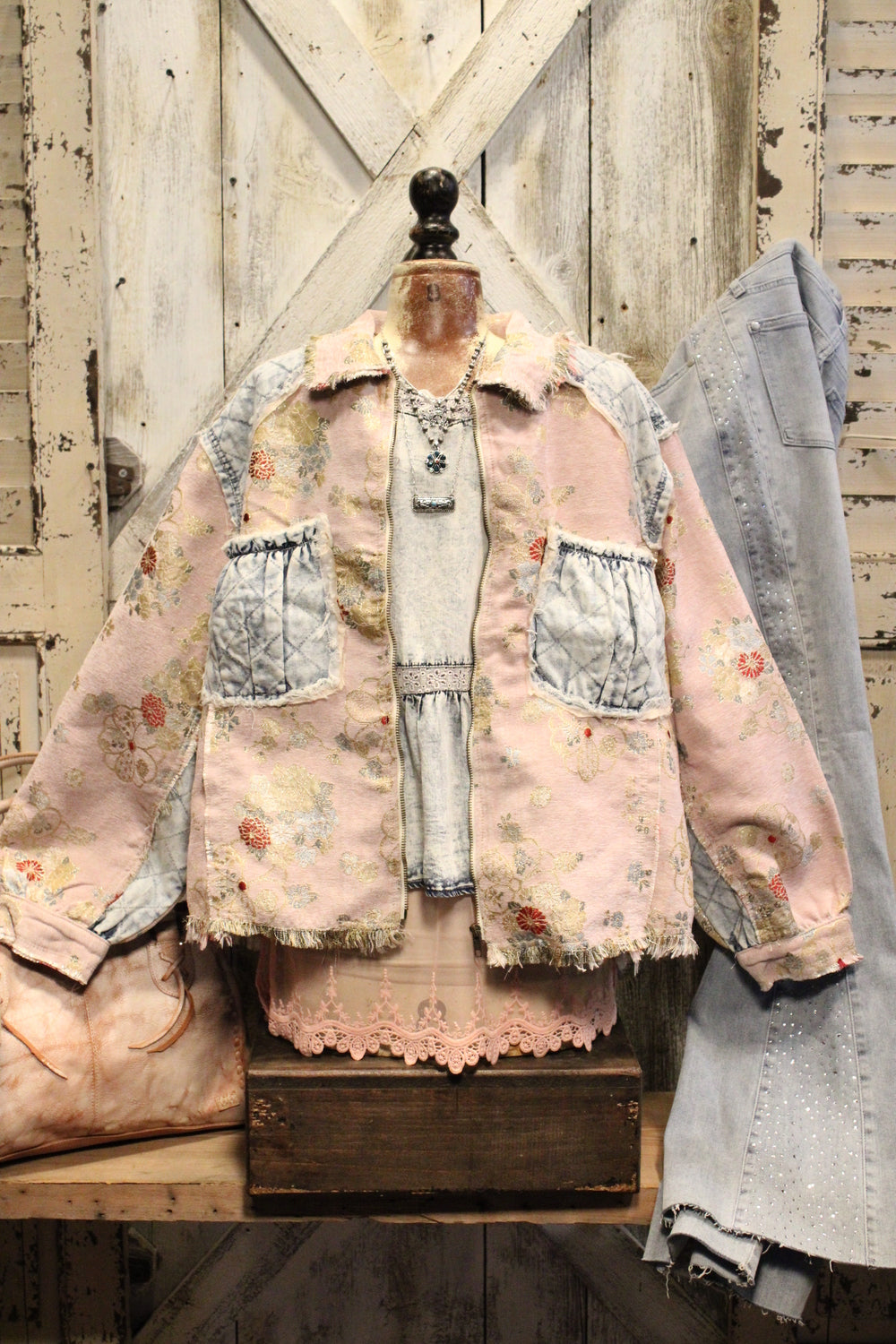 Introducing the Vintage Dream Jacket- Elevate your layering game with this embroidered patchwork floral jacket — a standout piece designed for the modern romantic with a love for vintage-inspired fashion. This artisan-crafted jacket features an elegant blend of textured floral embroidery and quilted contrast panels, offering a rich mix of pattern and dimension. Thoughtfully detailed with raw-edge hems, ruched patch pockets, and a flattering relaxed fit, this jacket brings effortless sophistication to your wardrobe.
