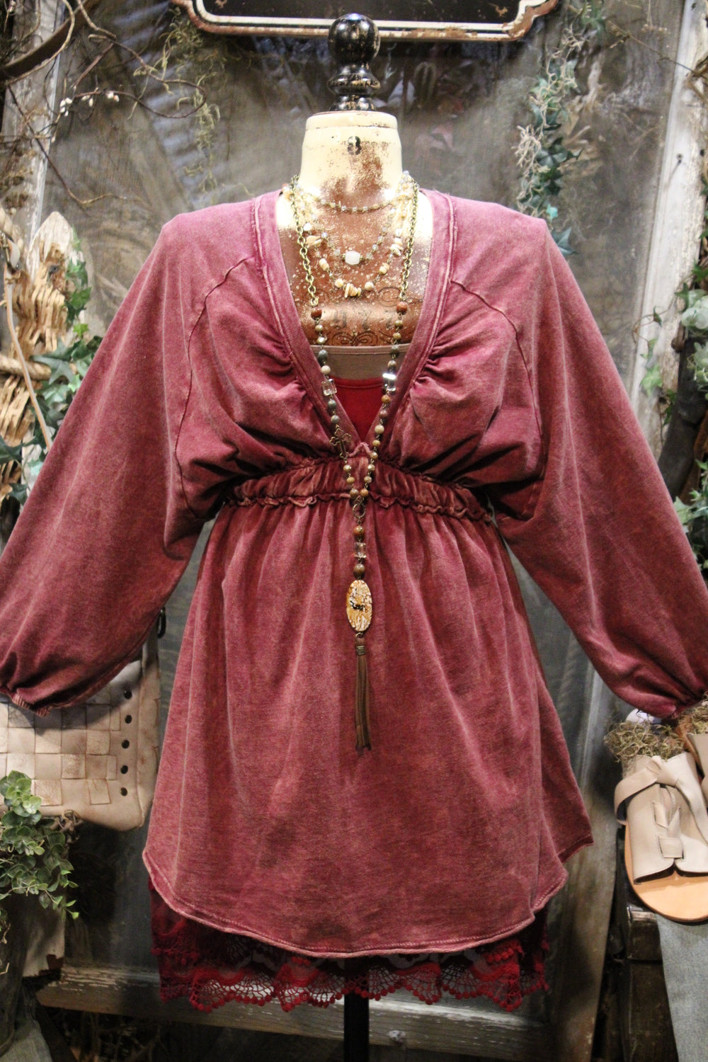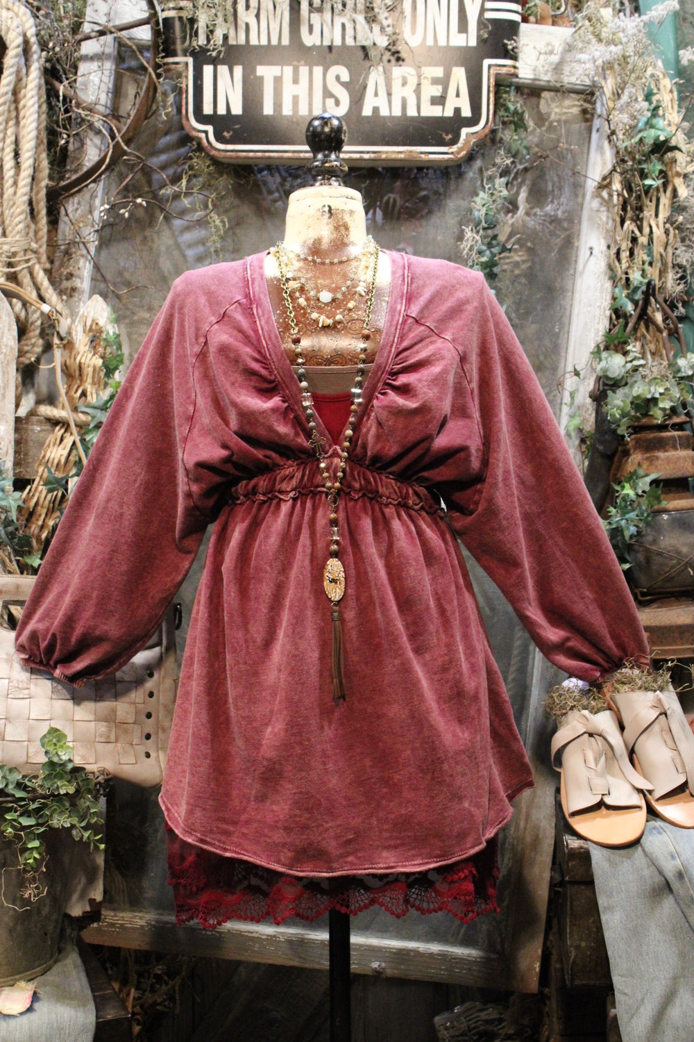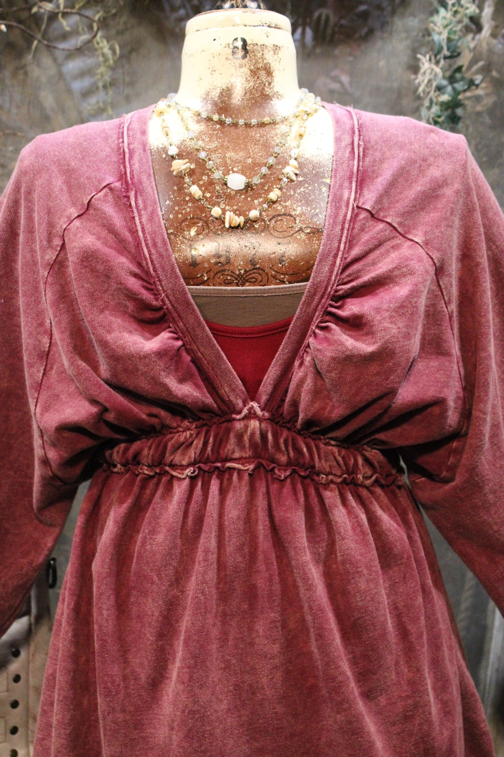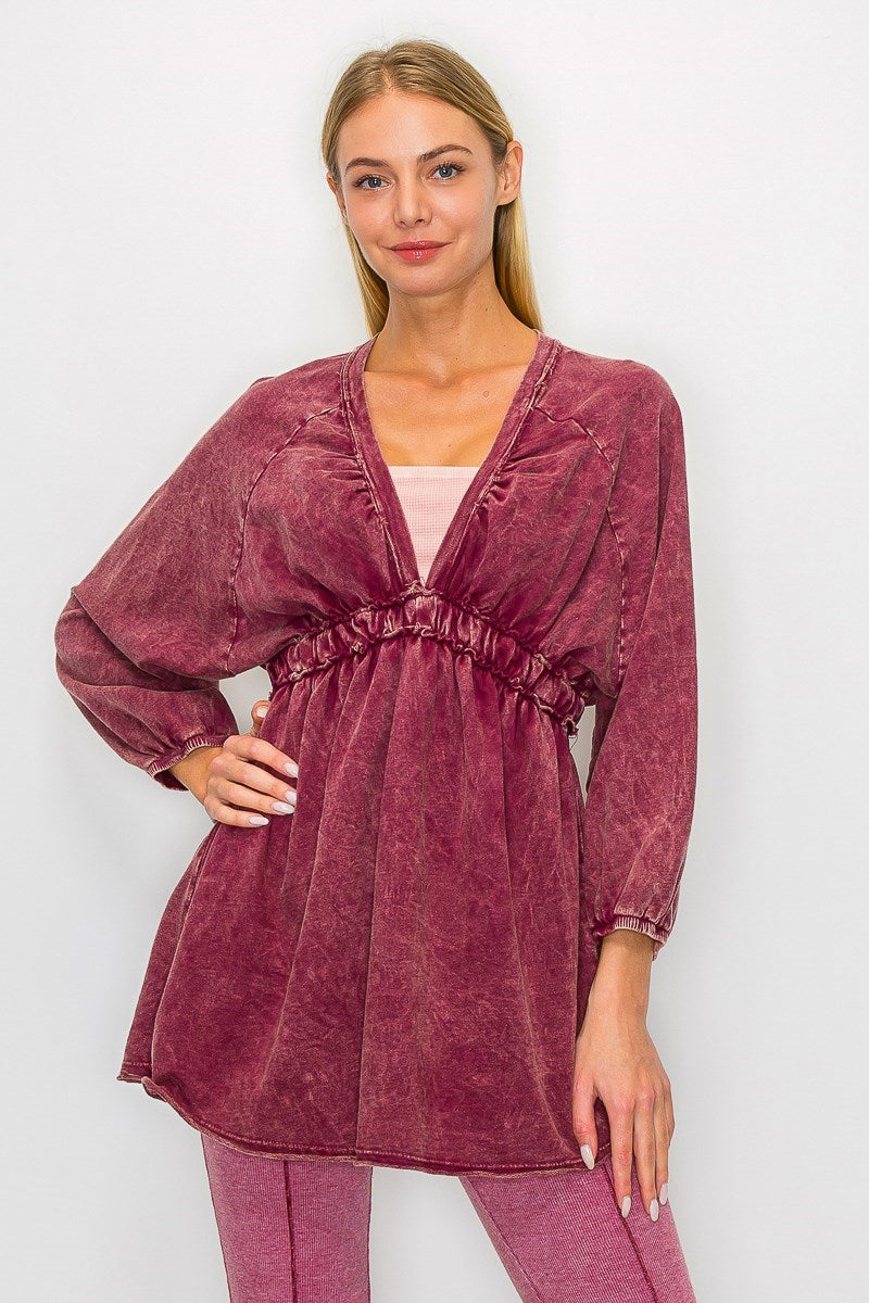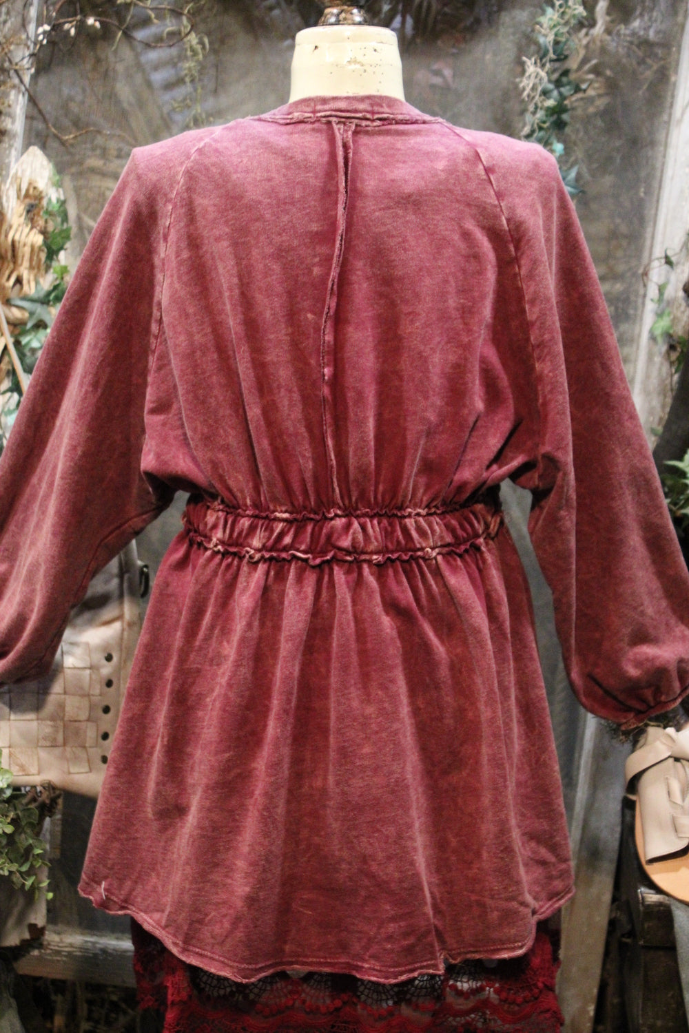 Meet the Wagon Wheel Tunic- Add a bold pop of color to your everyday wardrobe with this fabulous tunic. Designed with a relaxed fit and cinched waist detail, this long-sleeve tunic offers a flattering shape without sacrificing comfort. The soft, mineral-washed fabric delivers rich color and a smooth, comfortable feel—perfect for layering or wearing on its own.