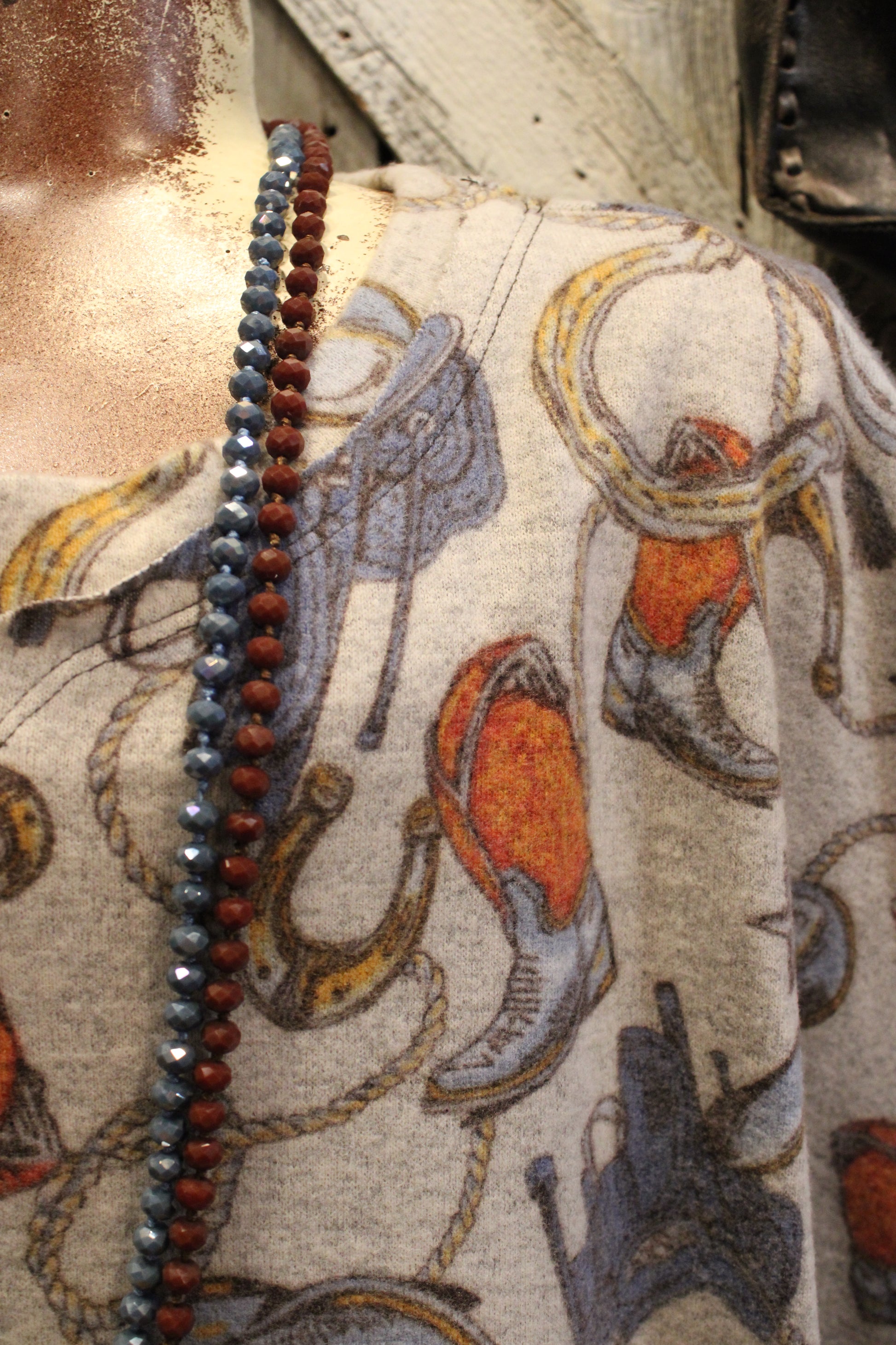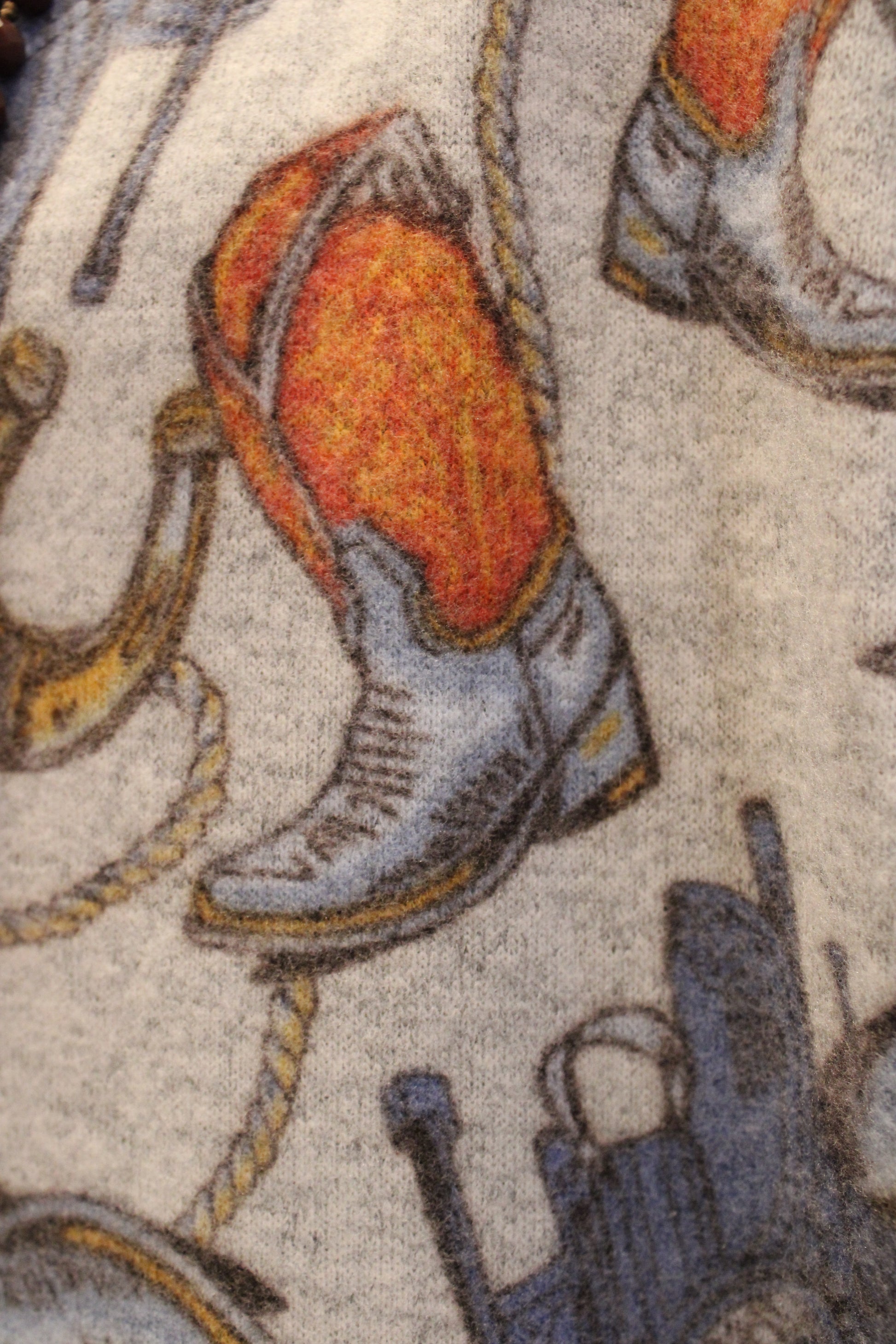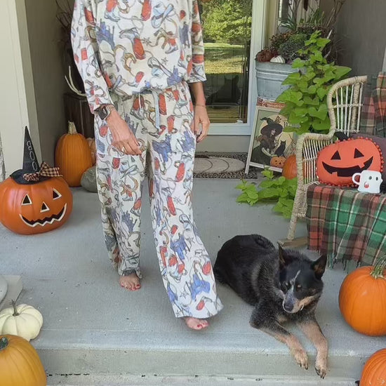 Introducing the Way Out West Top- Get cozy, cowgirl! This soft and stretchy lounge top is covered in the cutest western print — boots, hats, and stars for days! With its relaxed fit, drop shoulders, and easygoing feel, it’s made for mornings on the porch, movie nights, or sipping coffee in true farm-girl style.