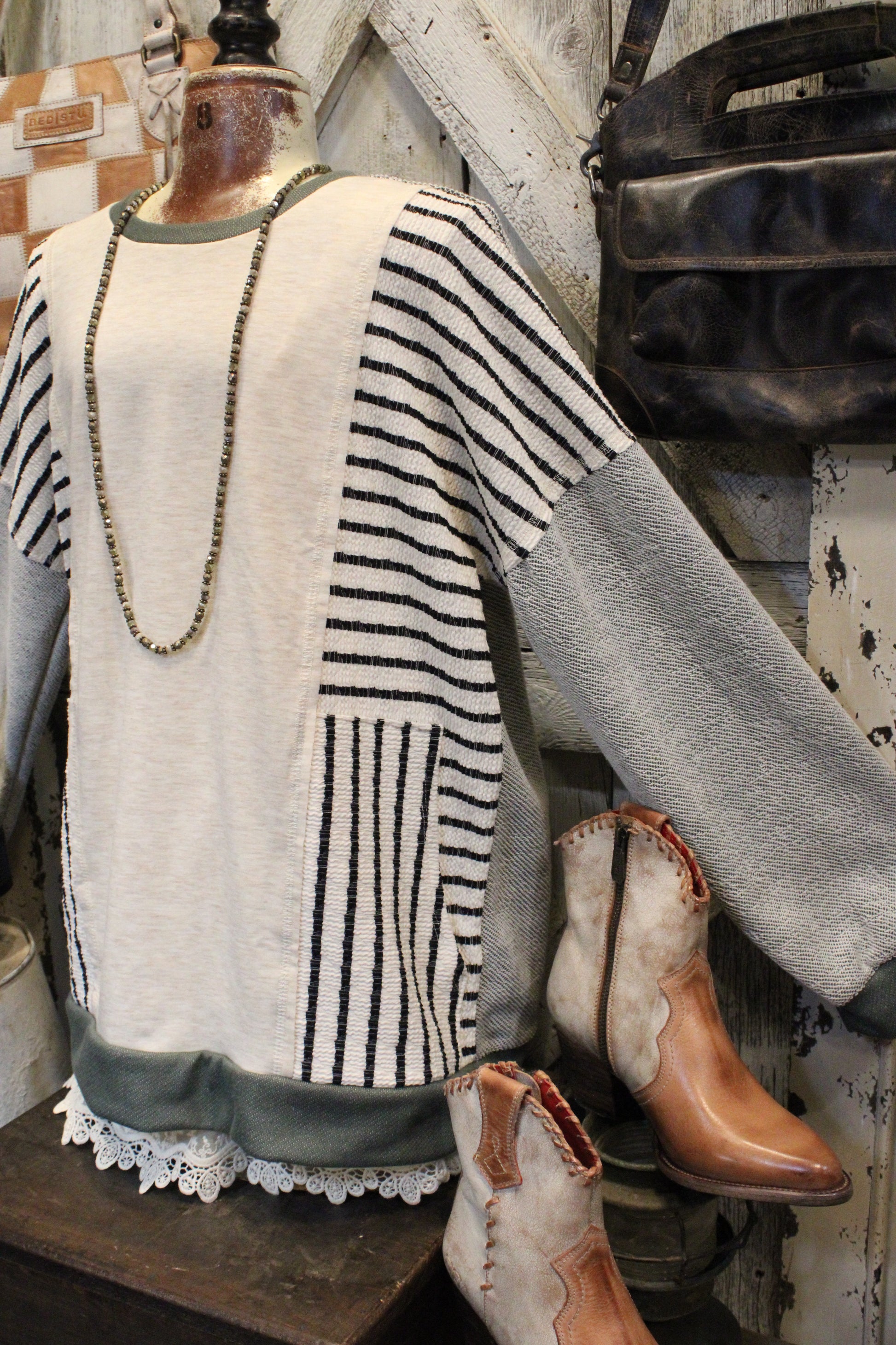 Introducing our Weekend Whimsy Olive Casual- With soft knit fabric, striped details, and a relaxed fit, this top brings that effortlessly layered look we love. The olive trim add a sweet touch—perfect for pairing with jeans, boots, or even leggings for a comfy day.