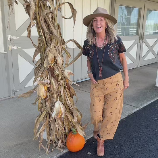 These pants are the perfect blend of comfort and cowboy charm—ready to take you from barnyard mornings to downtown strolls.
