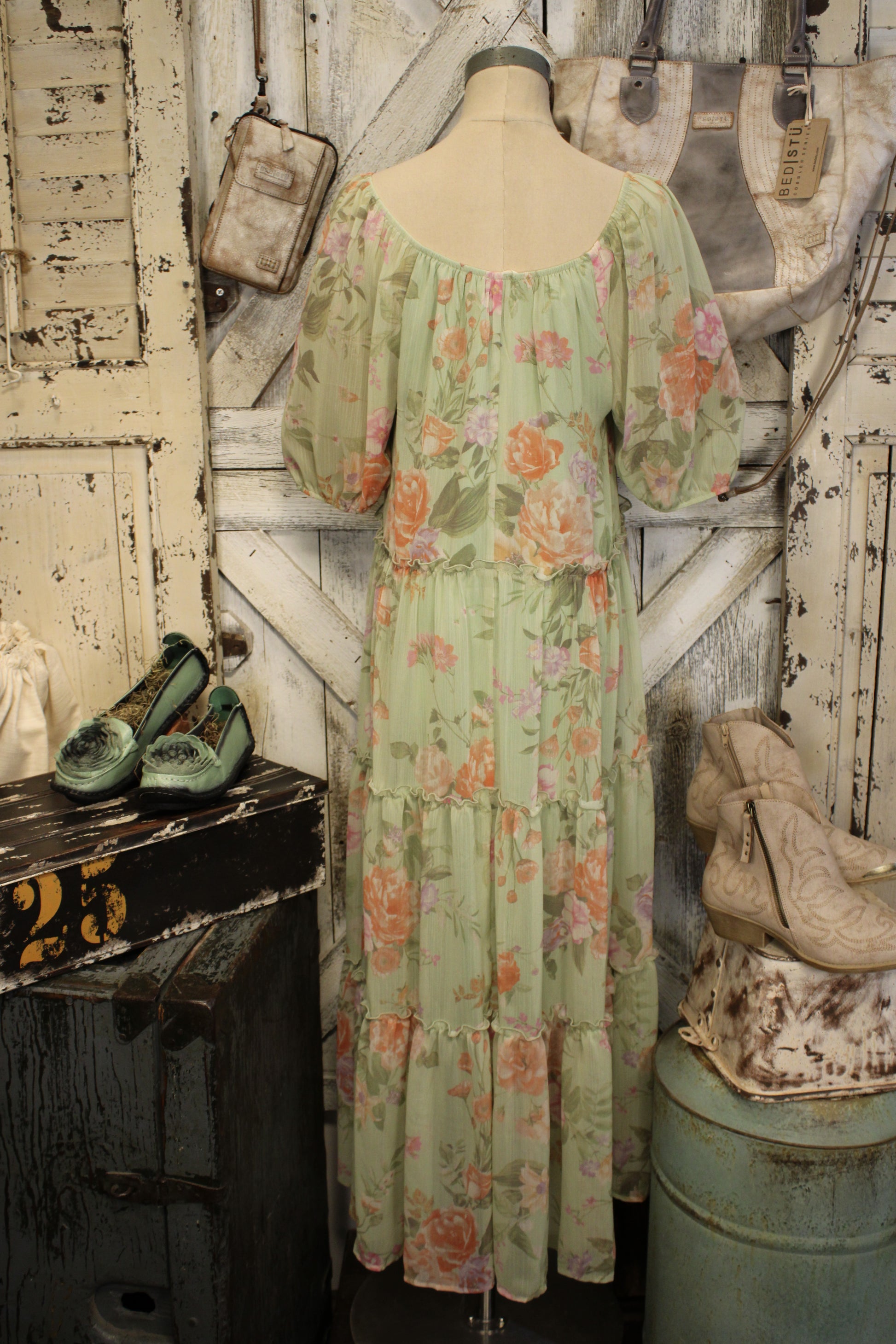 Designed with a flowy tiered silhouette, puff sleeves, and a flattering neckline, it offers an easy fit that moves beautifully with you. Lightweight and airy, it’s perfect for everything from casual days out to dressed-up moments with your favorite boots or sandals.