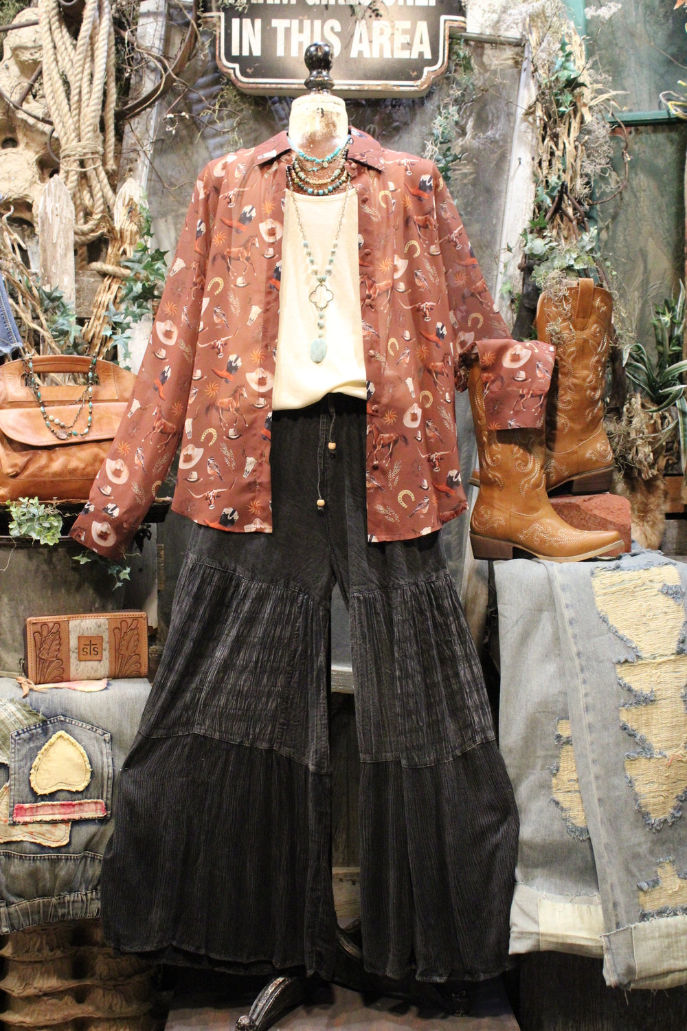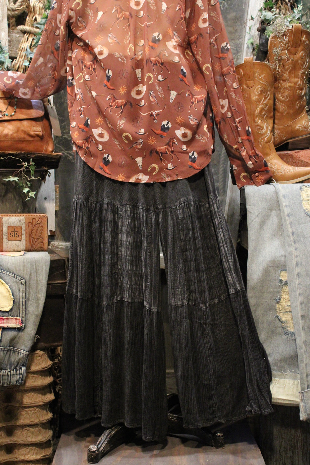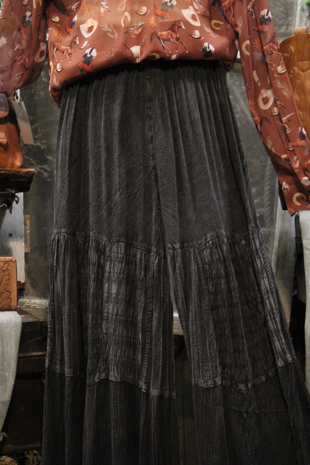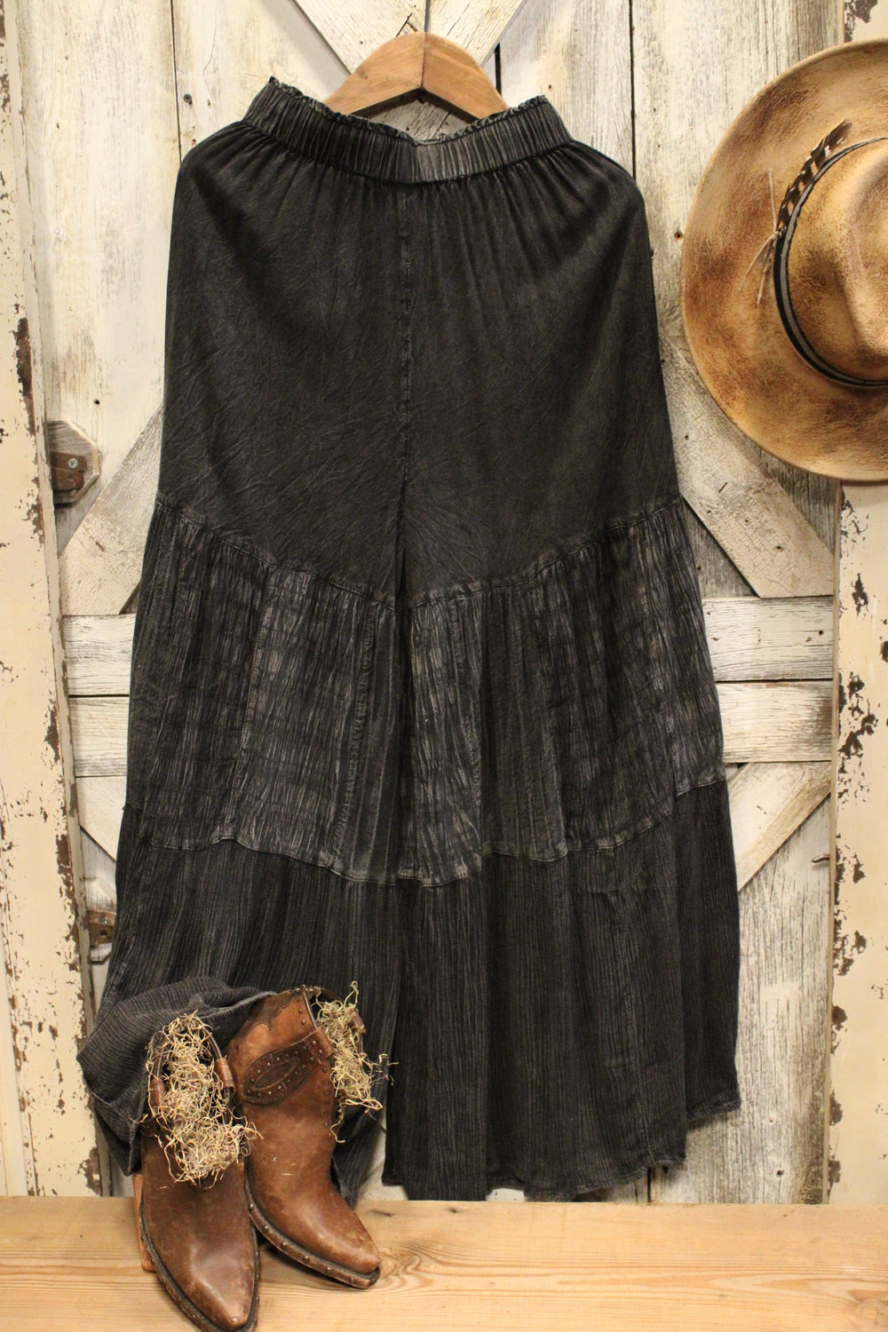 Wiggle Wagon Black Pants- Flowy, bold, with a free-spirited edge, these pants are made for movement and style. Crafted from lightweight, breathable fabric, they feature a soft crinkled texture and a wide-leg that creates a dramatic, easygoing look.