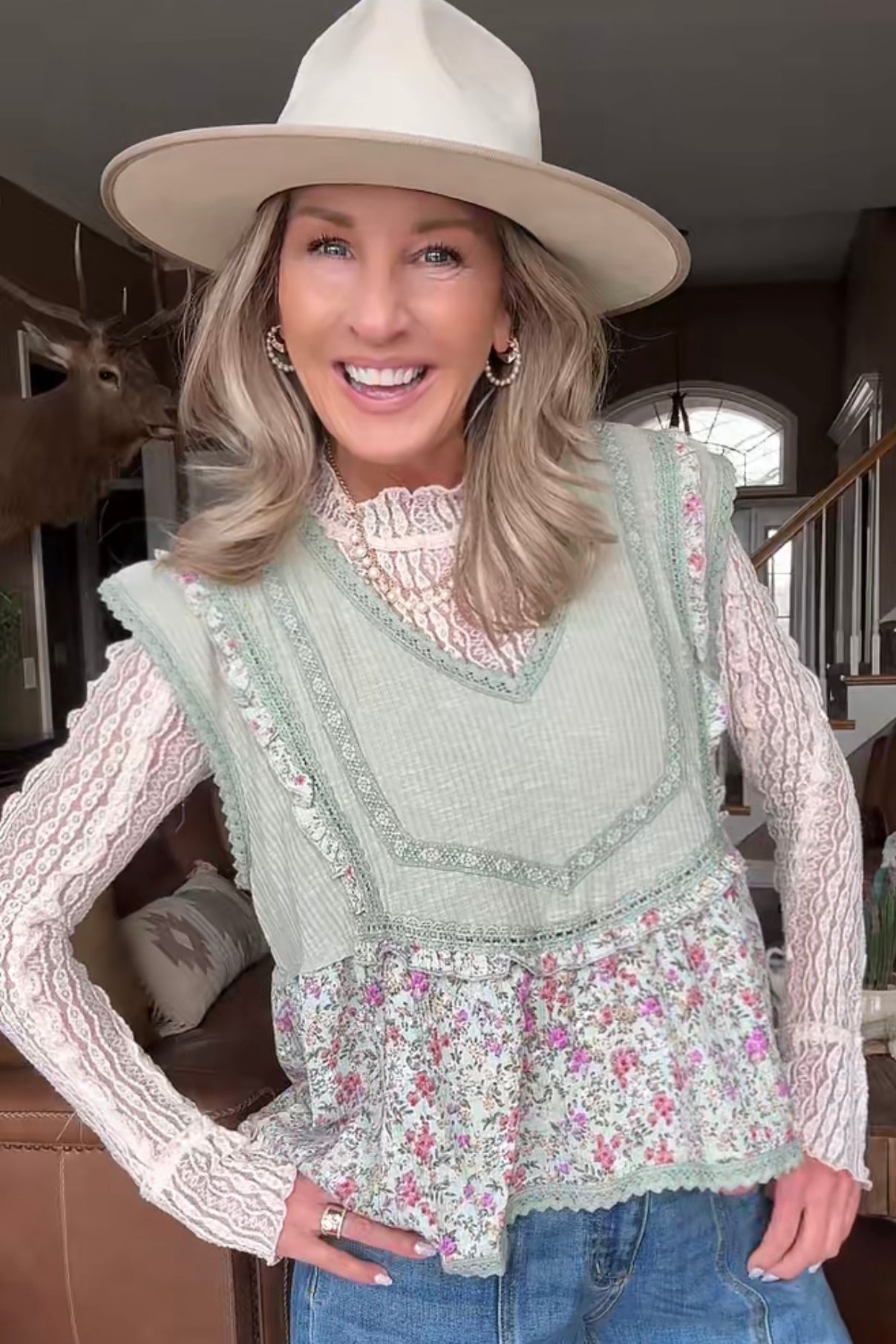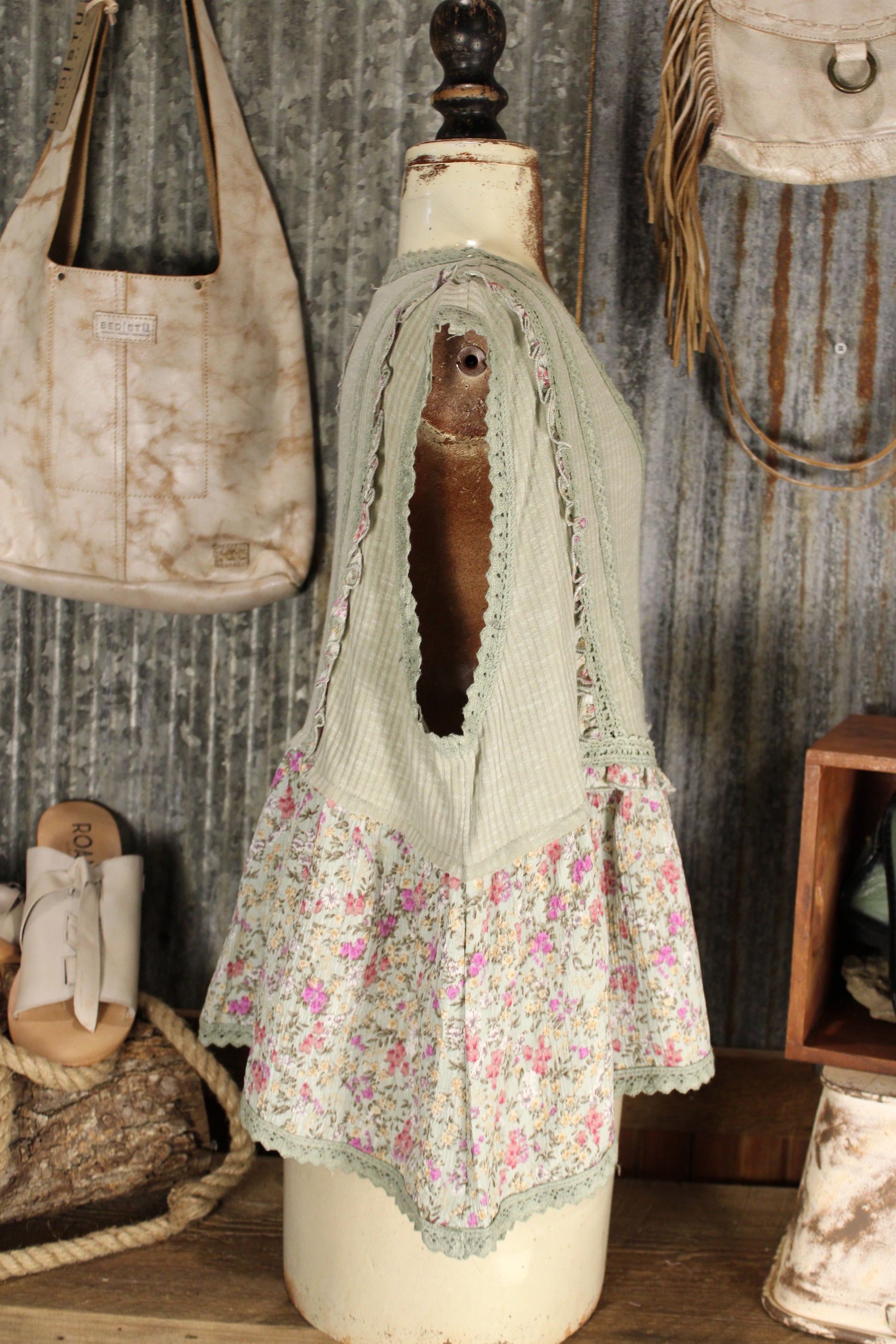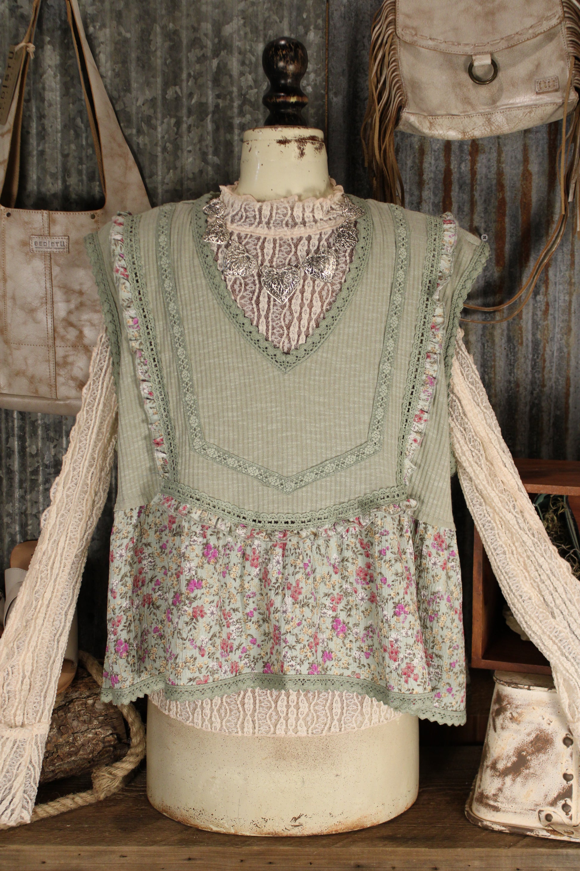 Introducing the whimsical Willow Garden Sage Tank- from POL Clothing! Embrace your bohemian spirit with this must-have top, featuring a flattering V-neck and sleeveless design. A soft mix of vintage florals and textured details gives this tank an easy, romantic feel. Designed with a flattering V neckline and delicate trim accents, it features a ribbed bodice paired with a flowy floral hem for a layered look without the bulk. The lightweight fabric drapes comfortably, making it perfect for warm days or for styling under cardigans and jackets. Feminine, airy, and full of cottage-inspired charm, this tank adds a sweet touch to any everyday outfit.