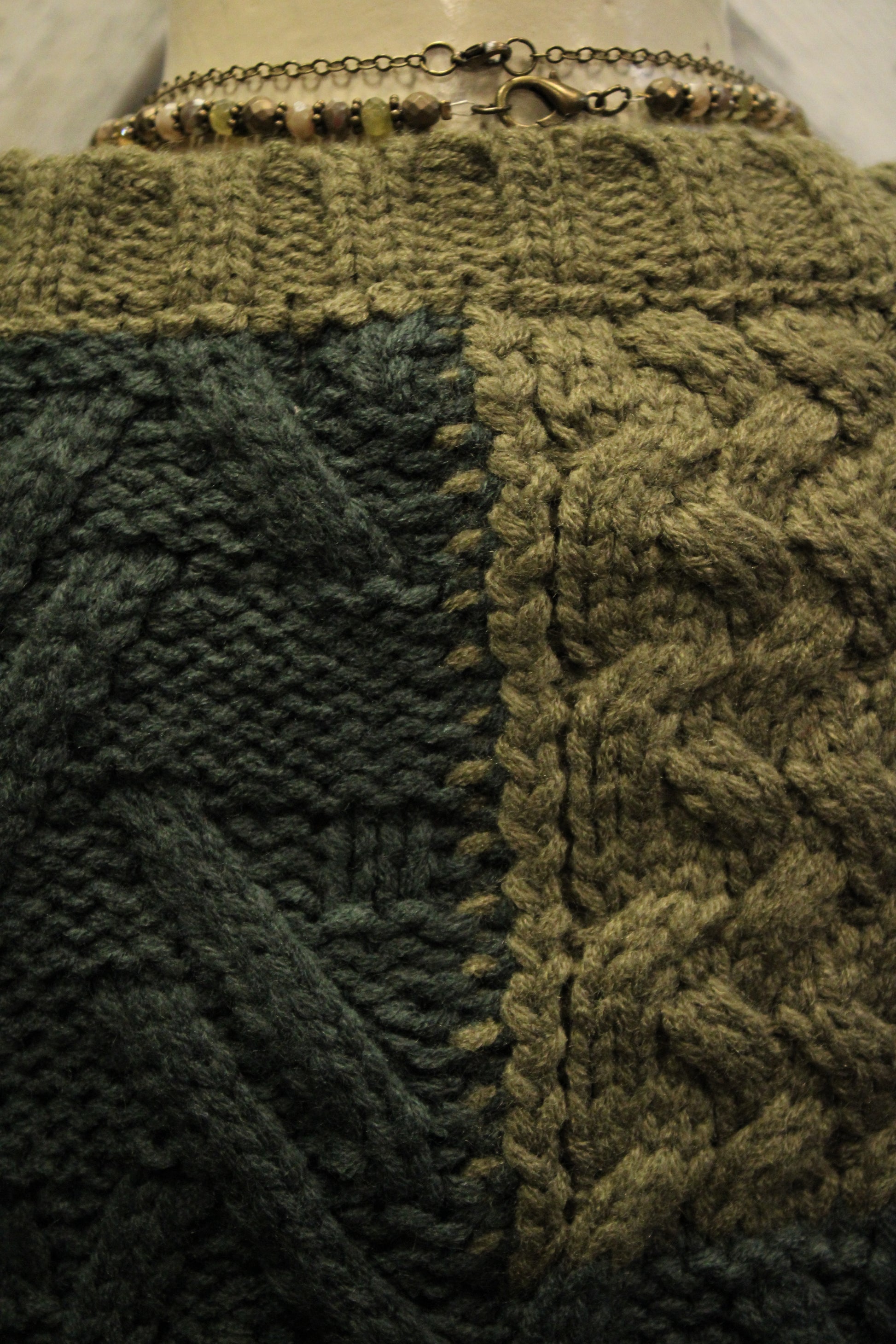 Introducing our cozy and stylish Woven Olive Sweater Vest- Layer up in cozy style with this patchwork knit sweater vest. Featuring rich shades of deep forest and olive green, its chunky cable knit design creates a rustic, homespun feel that’s perfect for the season. The boxy, sleeveless cut makes it easy to pair over lace tops, blouses, or long-sleeve tees for that effortless layered look.