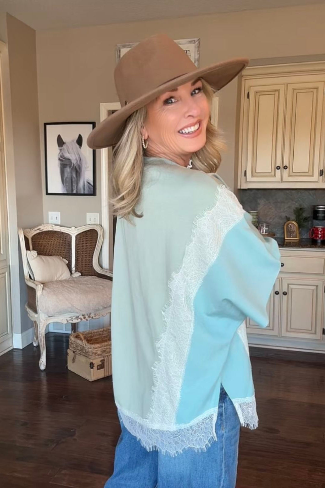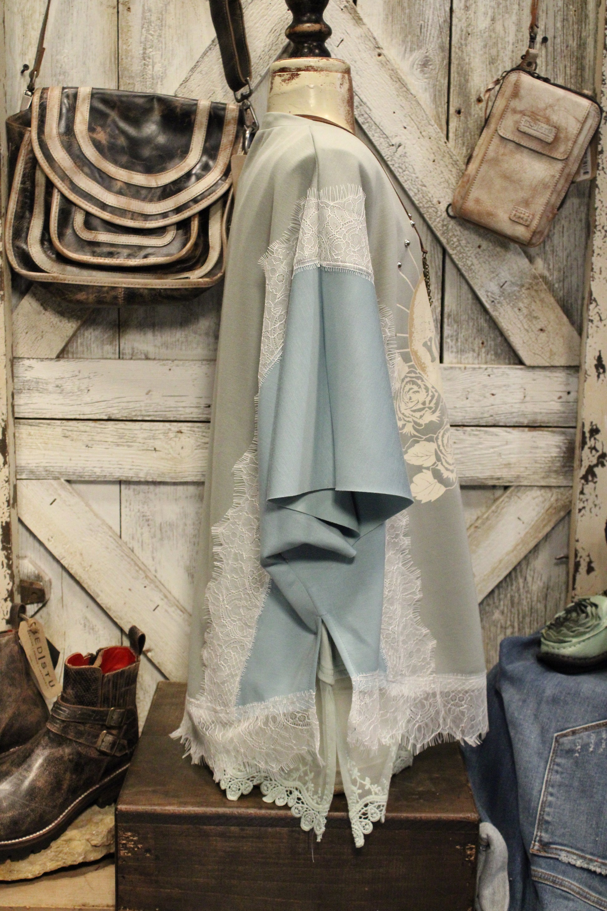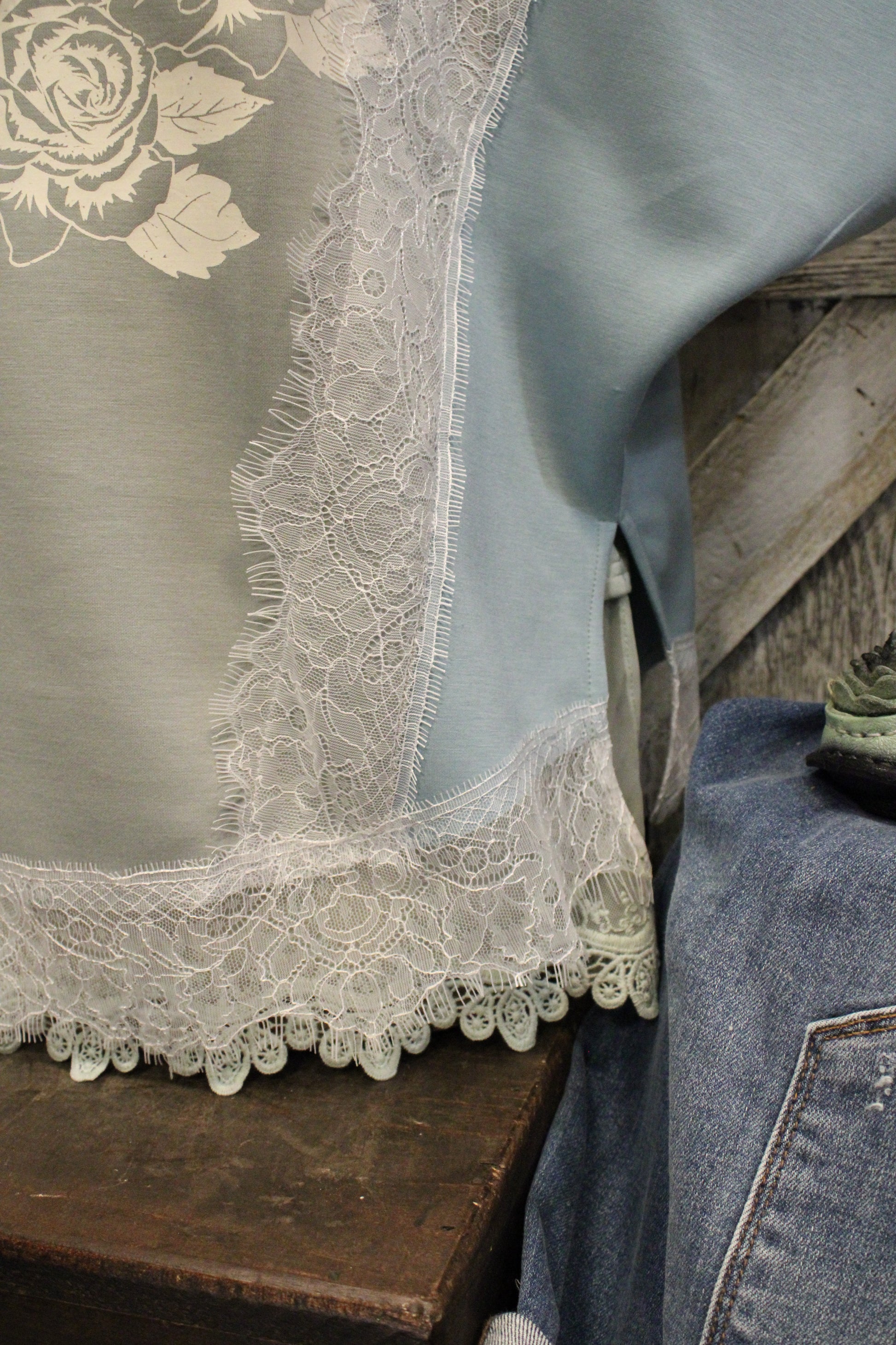 Introducing the You Are My Love Top- Sweet, dreamy, and overflowing with charm — this gorgeous top is ready to steal your heart! With its soft sage and teal color-block design, feminine lace accents, and the sweetest vintage heart graphic, this tee brings together everything we love about romantic, boho-farmgirl style.